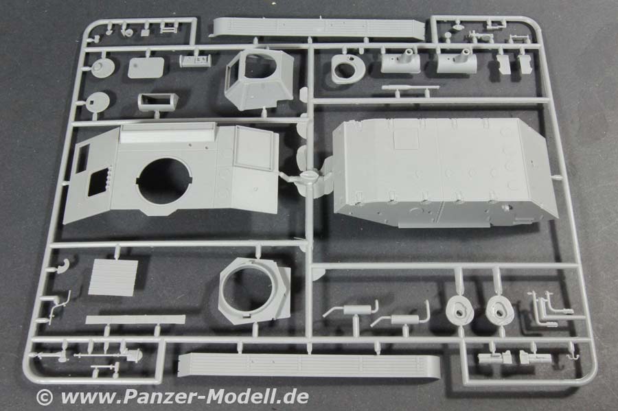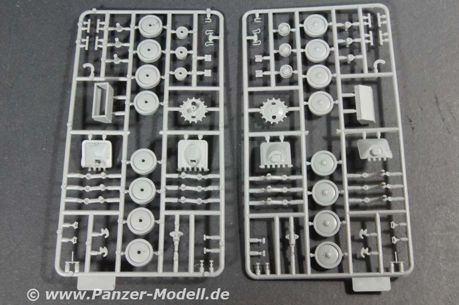 Im Bausatz enthalten sind insgesamt 4 Spritzlinge, ein kleiner Ätzteilbogen, mehrere Stränge mit den Einzelgliederketten, eine aufschlußreiche Anleitung inkl. Farbigen bemalungsvorschlägen und ein üppiger Decalbogen.