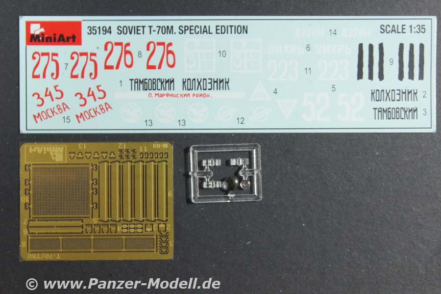 Unter der Nummer 35194 kommt hier ein alter bekannter von Mini Art daher, das heißt nicht ganz, hier haben wir die Special Version, den Panzer, baubar in früher und später Version und eine passende Sowejtische Crew in Winteruniformen.