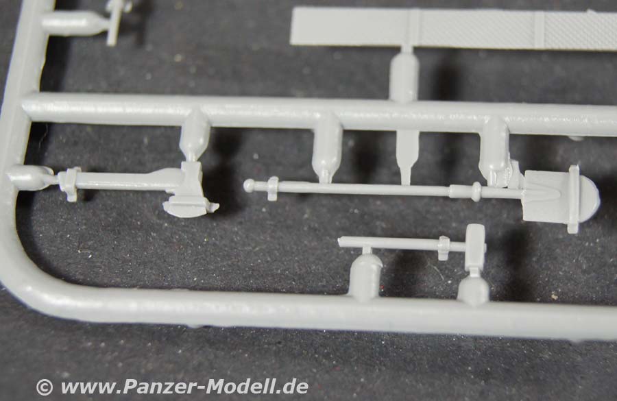 Nach gründlicher Beschau der Spritzlinge bleibt zu sagen hier hat Mini Art gute Arbeit geleistet, keine verzogenen Teile, einige wirklich kleine Fischhäute, sehr gut wiedergegebene Struktur inklusive der Schraubenköpfe. Für die Lüftergitter wurden Ätzteile beigegeben, ebenso wie für laschen bzw Halterungen.