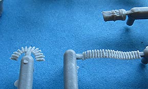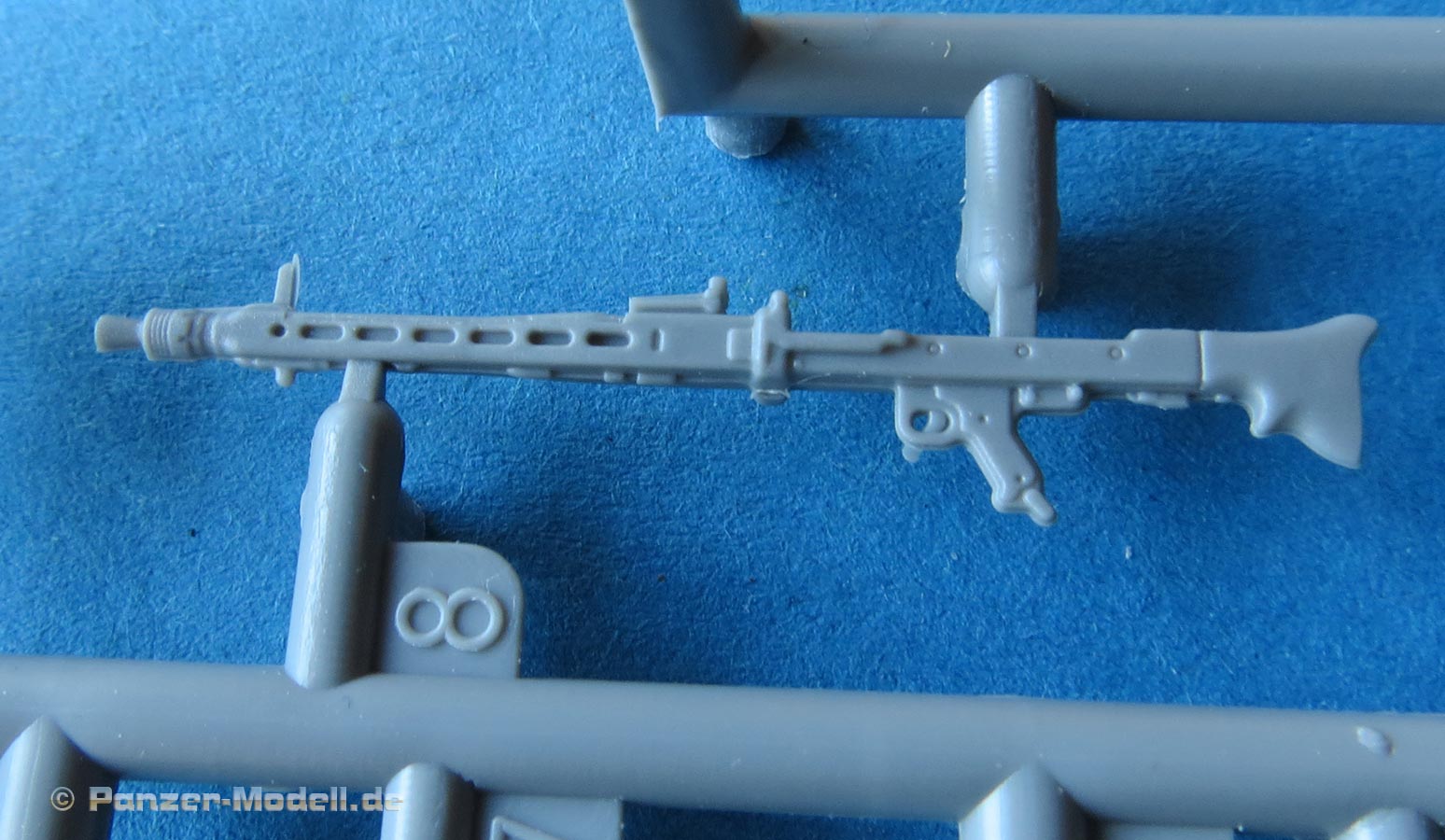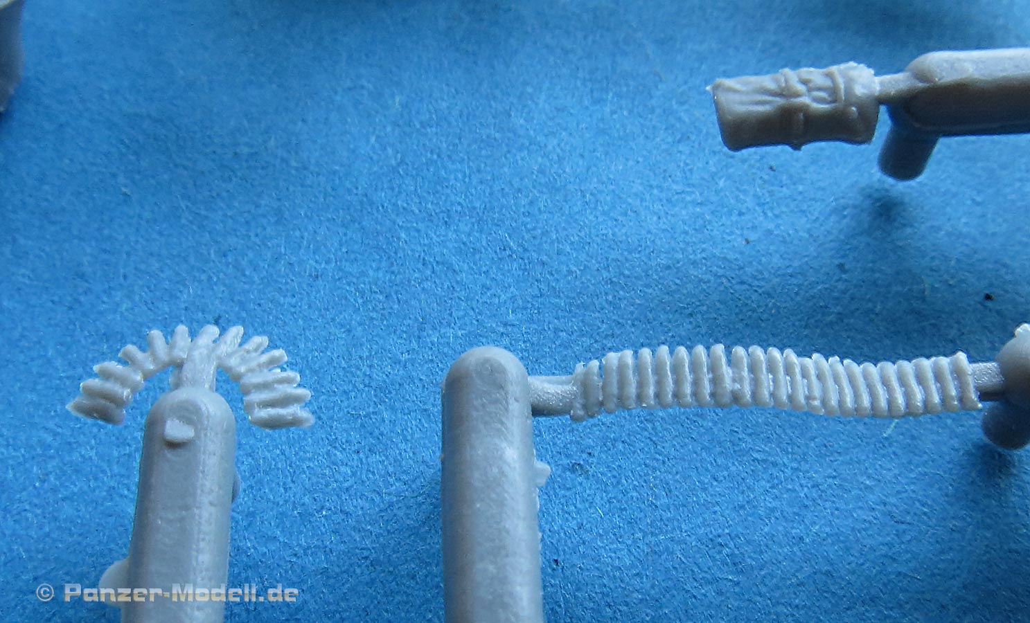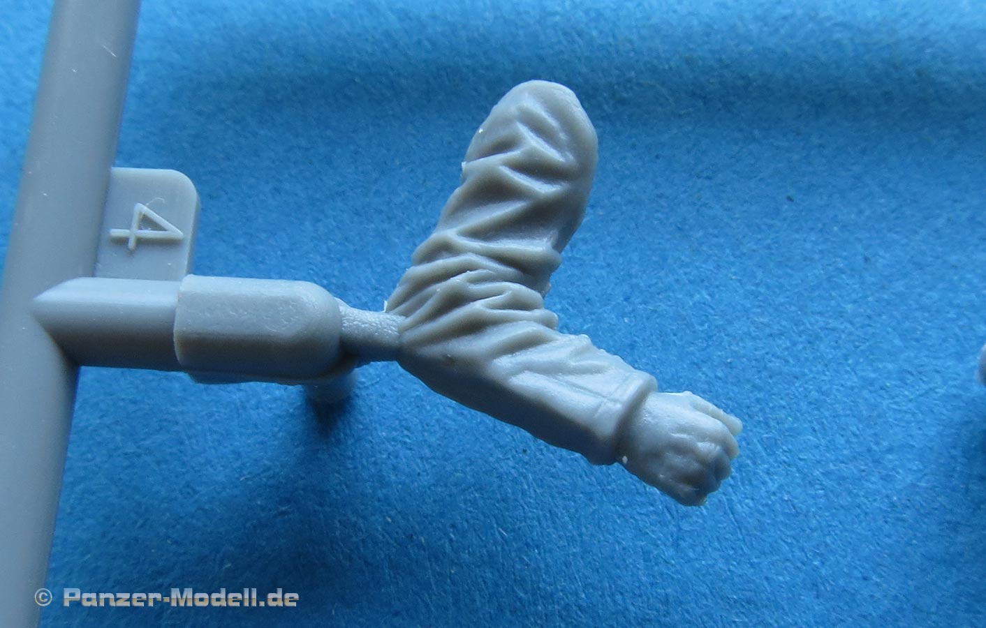 MiniArt hat uns schon mit vielen, interessanten und nützlichen Figurensets versorgt. Heute haben wir einen Satz mit 4 deutschen Infanteristen bei des Rast. Wieder tut sich Miniart hervor indem es auch abseits der ausgetretenen Pfade die Bedürfnisse bedient und somit neben den üblichen Figurenposen nun eben auch Soldaten in der Etappe zeigt. Die Teile aus grauem Plastik sind sauber gespritzt, ohne Verzug und Versatz, keine Sinkstellen. Die Angüsse sind akzeptabel und so gesetzt, dass sie beim Abtrennen vom Spritzling und beim Versäubern keine Probleme bereiten. Ja, Nahaufnahmen können brutal sein, aber der Grat an der Formtrennnaht ist sehr fein und wird sich schon beim Anblick des Bastelmessers verabschieden. Die Gesichter der Soldaten sind individuell gestaltet, mit gut gemachten Gesichtszügen, vor allem wenn man die Unzulänglichkeiten von Spritzguss dabei berücksichtigt werden. Auch schön ist die Darstellung der Haare, denn alle 4 Köpfe sind ohne Kopfbedeckung gemacht, was den lockeren Pausenchrakter der Szene unterstreicht. Insgesamt ein sehr schönes Set, das so manche Szene auflockern kann.
