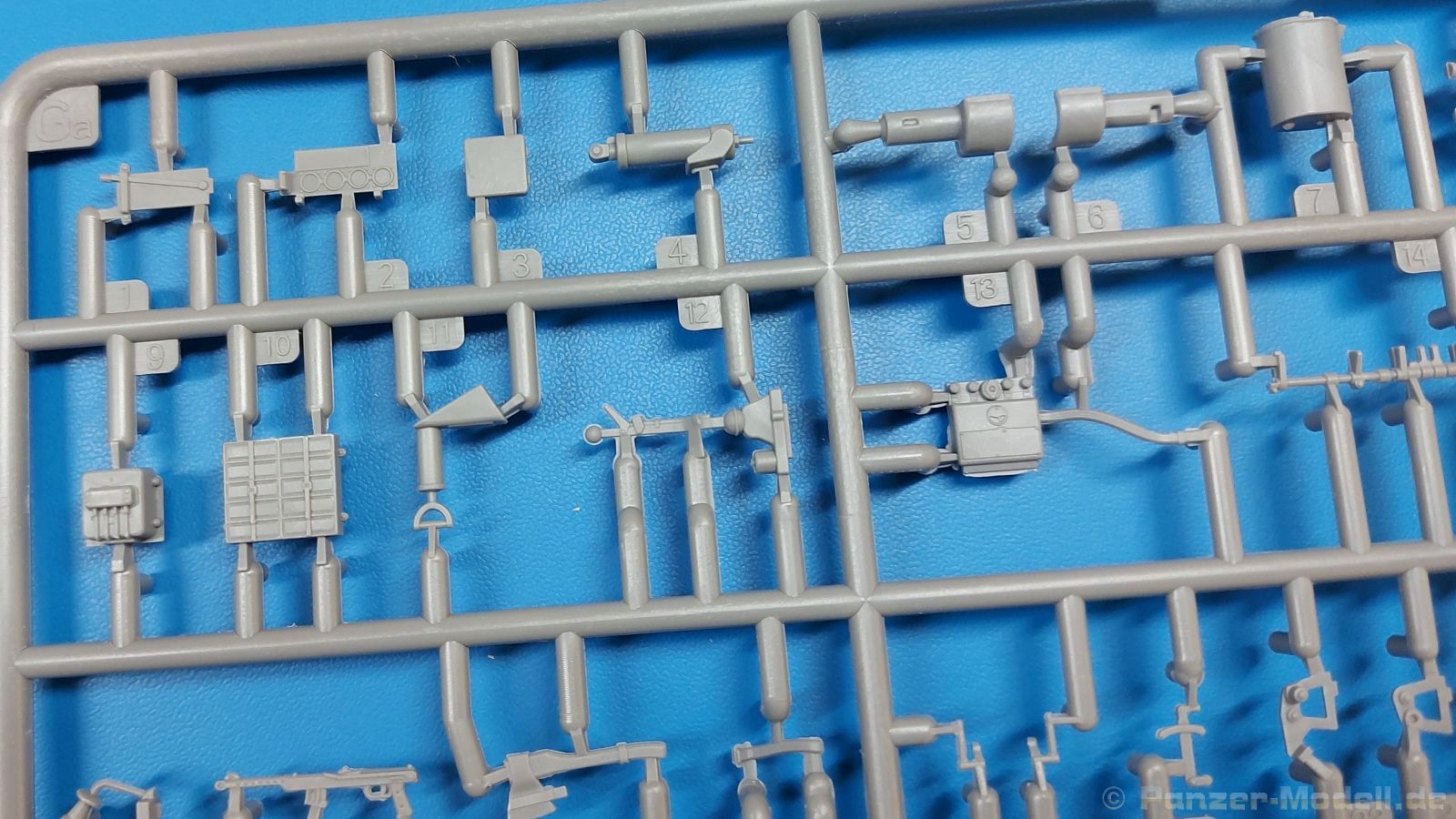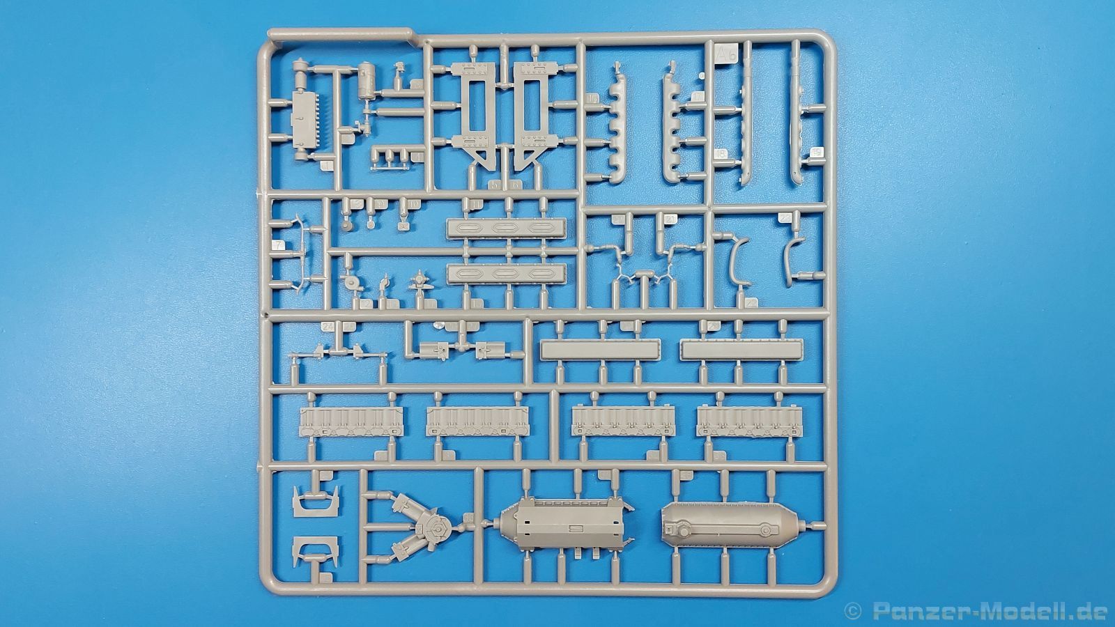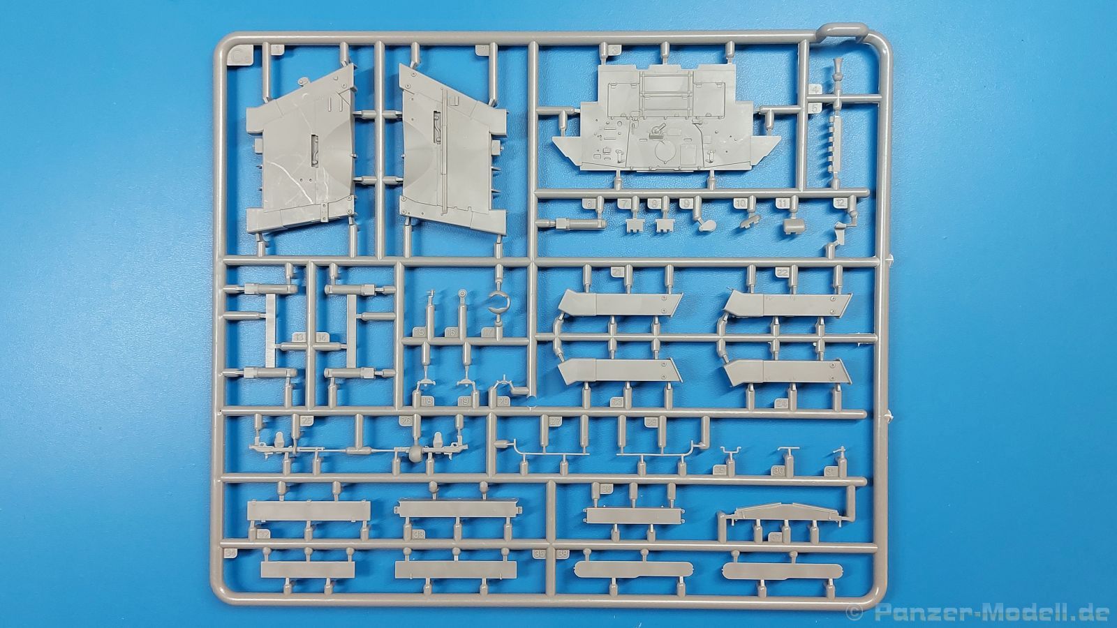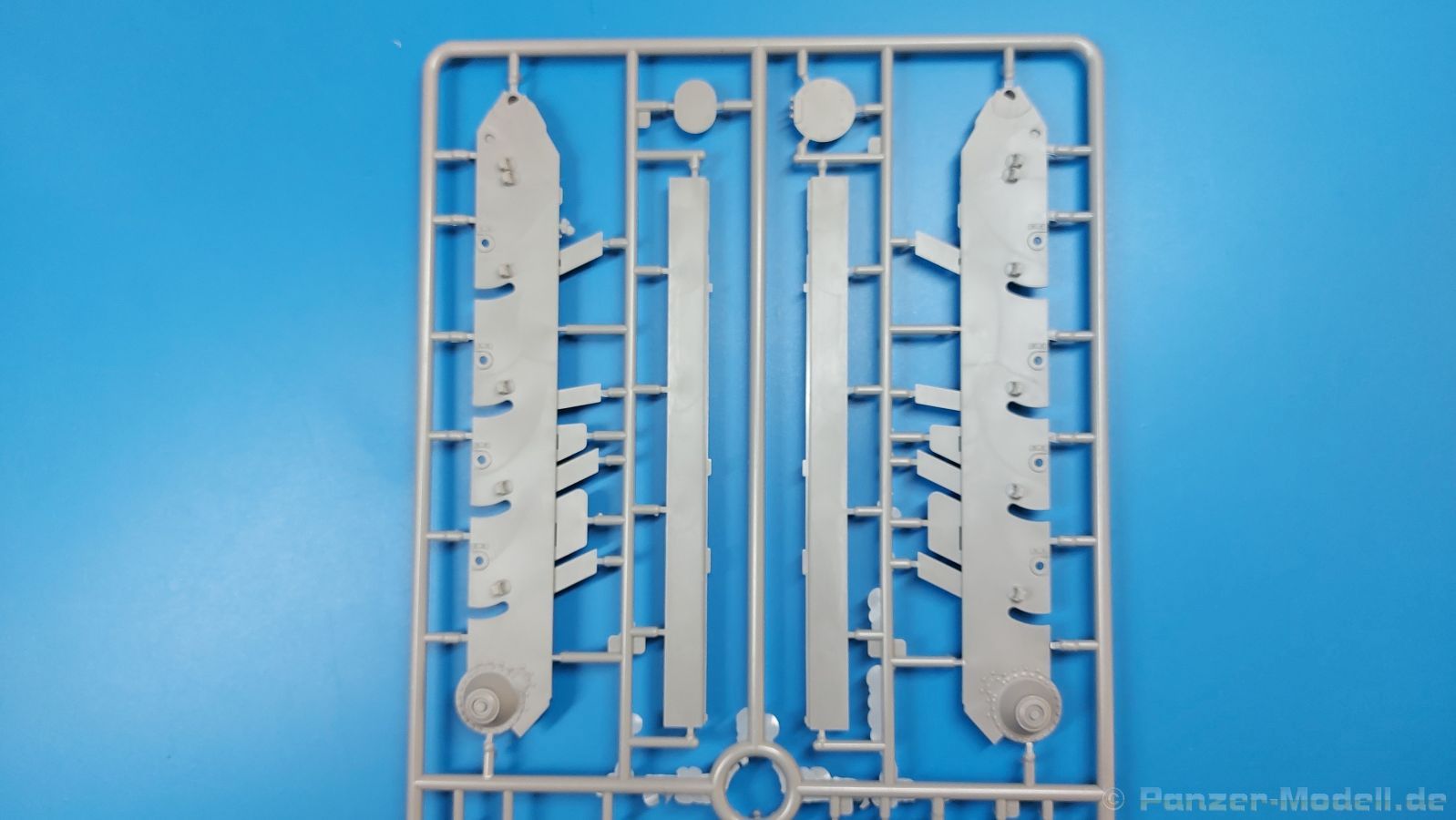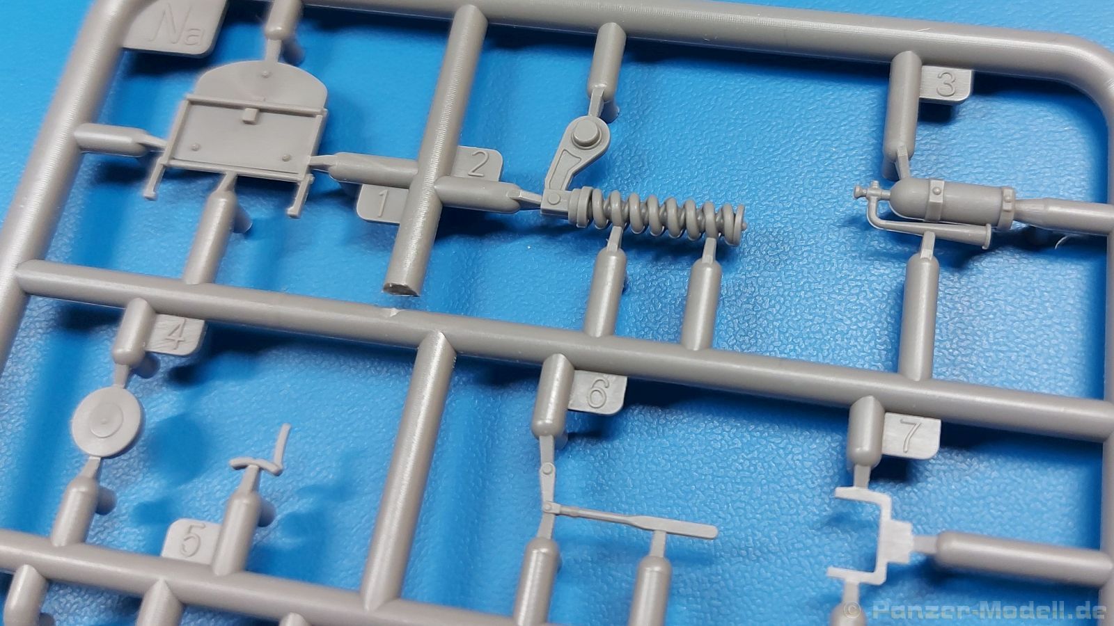 Das Original: Es gibt wohl kaum einen Militärmodellbauer, der den sowjetischen T-34 nicht kennt. Als einer der meistgebauten und am längsten im Einsatz befindlichen Panzer kann man ihn nicht übersehen. Seine Produktion zog sich von 1940 bis 1955 mit über 60.000 gebauten Exemplaren, die große Masse davon in den Jahren 1940-45. Seine schräge Panzerung war ein Novum der Zeit und bereitete den deutschen Gegnern einiges Kopfzerbrechen. Anfangs war er mit 2 MG und einer 76mm Kanone ausgerüstet, ab 1944 bekam er einen größeren Turm mit 85mm Kanone und ebenfalls 2 MG. Sein 500 PS Motor konnte ihn auf über 50 km/h beschleunigen. Der Bausatz: Die ukrainische Firma MiniArt startete mit etlichen Modellen auf Basis des T-34 Fahrgestells wie die SU-122 und SU-85 Bausätzen, Laufwerken, Ketten und dem Motor V-2-34 samt Getriebe. Mittlerweile gibt es auch vom T-34 selbst jede Menge Bausätze mit und ohne Interior (T-34/85 MiniArt). Heute beschäftigen wir uns mit dem innen und außen voll ausgestatteten Bausatz Nr. 35301, dessen Original gegen Ende des 2. Weltkrieges eingesetzt wurde. Der 385 x 240 x 90 mm groÃe Karton mit Stülpdeckel ist bis zum Rand vollgestopft mit 76(!) hellgrauen, 2 Klarsichtspritzlingen, 1 PE-Platine und einem Decalsheet. MiniArt hat sich über die Jahre einen echten Namen gemacht und ist unter den Herstellern im Plastikmodellbau nicht mehr wegzudenken. Das spiegelt sich in der Qualität wider. Sauber gespritzte und filigrane Teile sind die Norm. Verzug oder Versatz konnte ich nicht entdecken. Dennoch gibt es etwas Grat, größer zum Glück nur an Gießästen, feiner Grat nur hier und da. Ich denke mal, dass einige Formen für mehrere verschiedene Bausätze genutzt wurden und so ein paar Durchgänge mehr hinter sich haben. Die Auswerfer sind fast ausnahmslos auf die Spritzrahmen gesetzt, so dass die Teile so gut wie keine Spuren davon aufweisen, bzw. nur an Stellen, die nach dem Zusammenbau nicht mehr zu sehen sind. Die Wanne ist unterteilt in Boden, Seiten- und Trennwände, welches den Einbau der Inneneinrichtung erheblich erleichtert. Motor und Getriebe gibt es ja als Bausatz Nr. 35205 separat zu kaufen. Hier fehlt nichts! Lagerböcke, Zylinderköpfe, Zuluft-, Abgaskanäle, Auspuffrohre, Kühlschläuche, Kühler, Lichtmaschine, Einspritzpumpe, Elektromotor für Lüfterrad, Lüfterrad, Luftfilter, Steuerstangen, Lenkbremsen - aus meiner Sicht fast alles da bis auf Einspritzleitungen und Verkabelung. Die Struktur der Kühlerrippen ist sehr fein. Dies gilt auch für den Zahnkranz des Lüfterrades. Auf dem Wannenboden angegossen findet man vom Fahrerplatz bis zu den Lenkbremsen das entsprechende Gestänge. Die Tanks sind mit Einfüllschrauben versehen und auch die eingepressten Versteifungsrippen sind vorhanden. Schaut man sich die Oberwanne dann mal an, findet man so einige Schraubenlöcher, die dort zu finden sind, wo Motor-, bzw. Kühlerabdeckungen normalerweise angebracht sind. Wenn man also z.B. für eine Wartungsszene die Abdeckungen weglässt, sind die Schraubenlöcher da. Eine absolut realistische Darstellung. Die Zu- und Abluftöffnungen sind durchbrochen. Hier kann man die Windleitbleche entsprechend positioniert einbauen. Den Zuluftdeckel über dem Lüfterrad hat man durchbrochen dargestellt. In die Öffnung werden dann aus PE-Teilen der Halterahmen und das Gitter eingesetzt. Die große Heckplatte, die auch abgeklappt angebaut werden kann, enthält die Öffnungen für die Auspuffrohre und eine große Wartungsöffnung. Auch hier findet man an den entsprechenden Stellen Schraubenlöcher, wenn man diese Deckel auflassen möchte. An der Innenseite der Heckplatte sind die Verschraubungen der Auspuffpanzerungen vorhanden. Der Kampfraum unterteilt sich in den Platz für Fahrer/Bug-MG Schütze und den Turmbereich. Der Fahrerplatz ist voll ausgestattet - Sitz, Bedien- und Schalthebel, Pedale, Armaturen, Feuerlöscher, Axt, Hammer, Halterungen mit Trommelmagazinen für das Bug-MG, Pressluftflaschen und jede Menge Gestänge. Für den Armaturen sind Decals im Bausatz enthalten. Die Fahrerluke bekommt Winkelspiegel aus Klarsichtmaterial. Alle Außen- und Innendetails inkl. Verriegelungen sind vorhanden. Baut man die Klappe offen, muss man nur den entsprechenden Öffnerzylinder anbauen. Über der Fahrerluke erkennt man die Kopfpolsterung für den Fahrer. Das Bug-MG kann wohl voll beweglich mit der Kugelblende eingebaut werden. Hier wollen 8 Teile sauber zusammengefügt werden. Sehr schön die Struktur des MG-Doms. In der Wanne unter dem Turm finden große Munitionsbehälter Platz, die gleichzeitig den Laufboden der Turmbesatzung darstellen. Die Rückwand zwischen Kampf- und Motorraum ist schon mit allerlei Details versehen. Für die vier verschiedenen Munitionsarten gibt es entsprechende Halterungen sowohl in der Wanne als auch im Turm. Der Bausatz enthält 24 sichtbare Patronen. Die 16 im Turmheck sind einzeln. Man kann da also welche weglassen, um etwas Verbrauch darzustellen. Da sind wir also beim Turm, der sich von anderen Türmen unterscheidet, wenn man die untere Turmkante beachtet. Während sie normalerweise rundum gerundet ist, ist sie beim zusammengesetzten (composite)œ Turm im Heckbereich gerade heruntergezogen. Das Turmdach zeigt uns im Inneren zwei sehr schöne Lüfter, die mit PE-Gittern versehen werden. Zudem gibt es noch einige angegossene Leitungen, die zu Kampfraumleuchten aus Klarsichtmaterial führen. Ebenfalls aus kristallklarem Material sind die Winkelspiegel im Dach und der Kommandatenluke und die Sichtblöcke der Kommandantenkuppel. Sowohl Kommandantenluke als auch Ladeschützenluke können offen oder geschlossen gebaut werden. Kleines Gimmick - die Verriegelungsnase der Ladeschützenluke bei hochgestellter Luke. Die inneren Turmseitenwände werden mit Schaltkästen, Werkzeug, Munitionshalterungen ausgestattet, bevor man die Wände in den Turm einklebt. So kann man diese bereits vorher problemlos bemalen, ohne dann im Turm kämpfenœ zu müssen. Was 