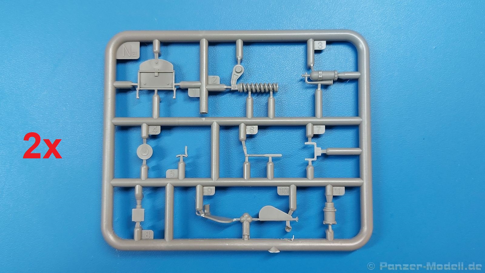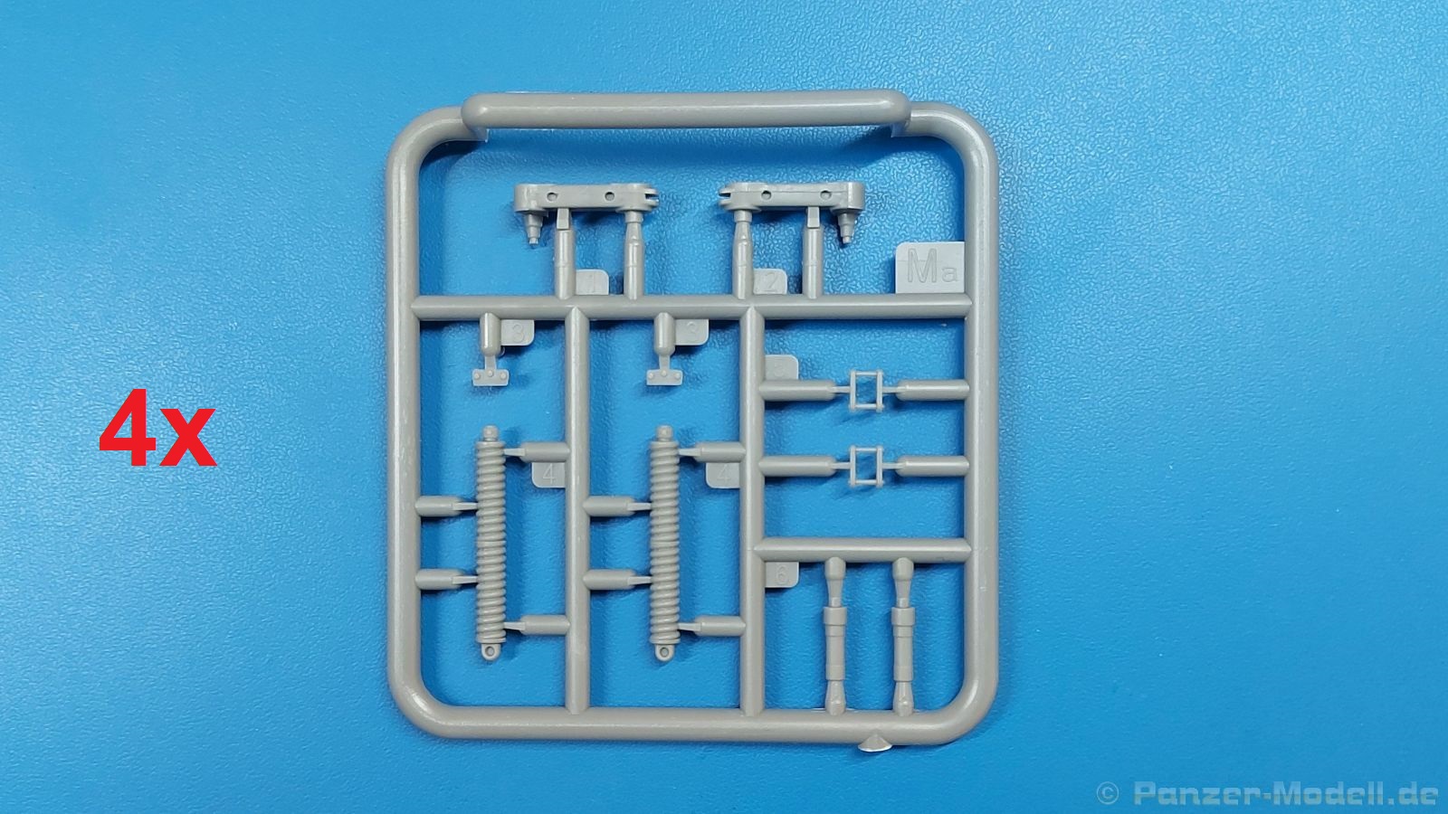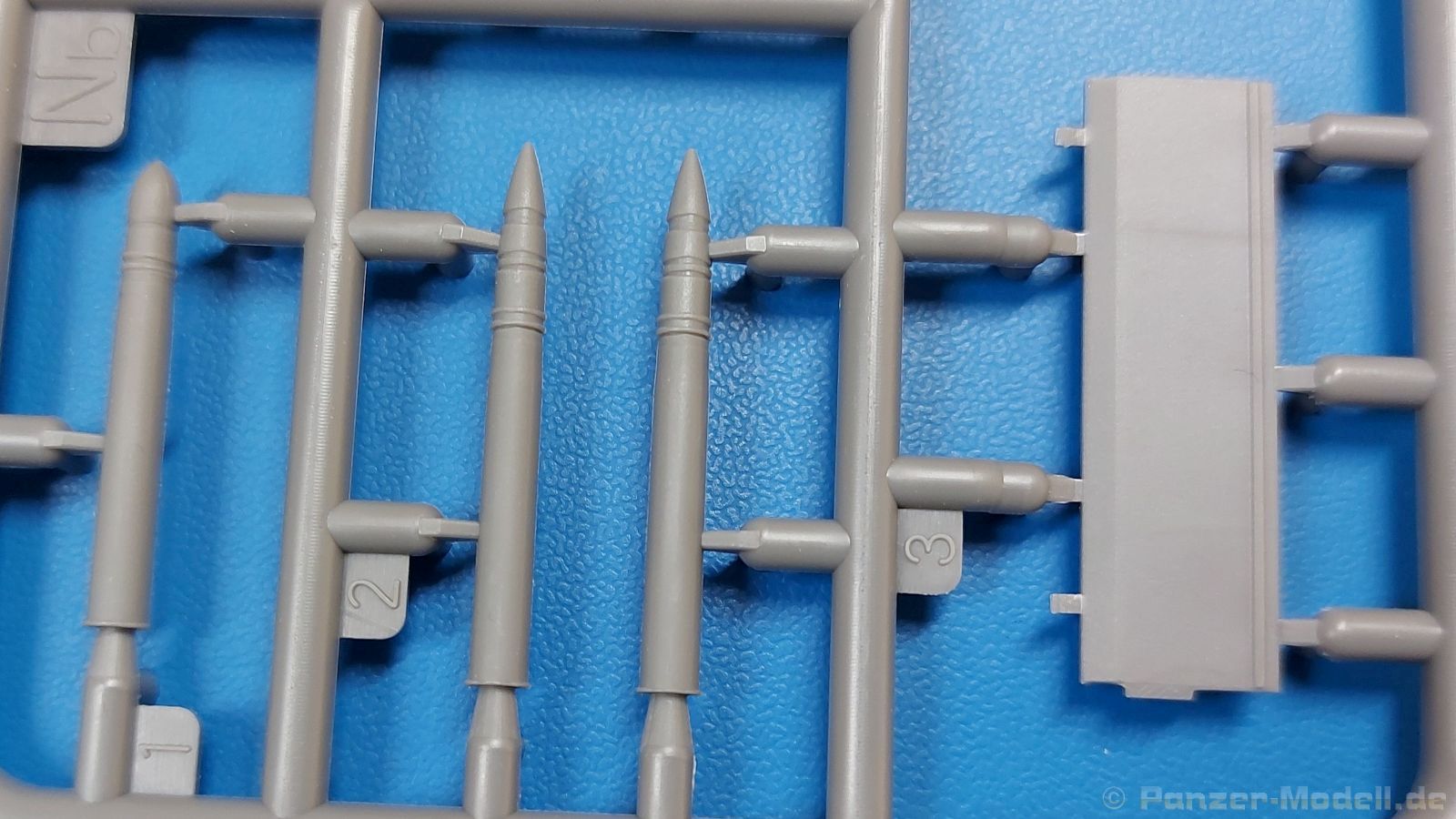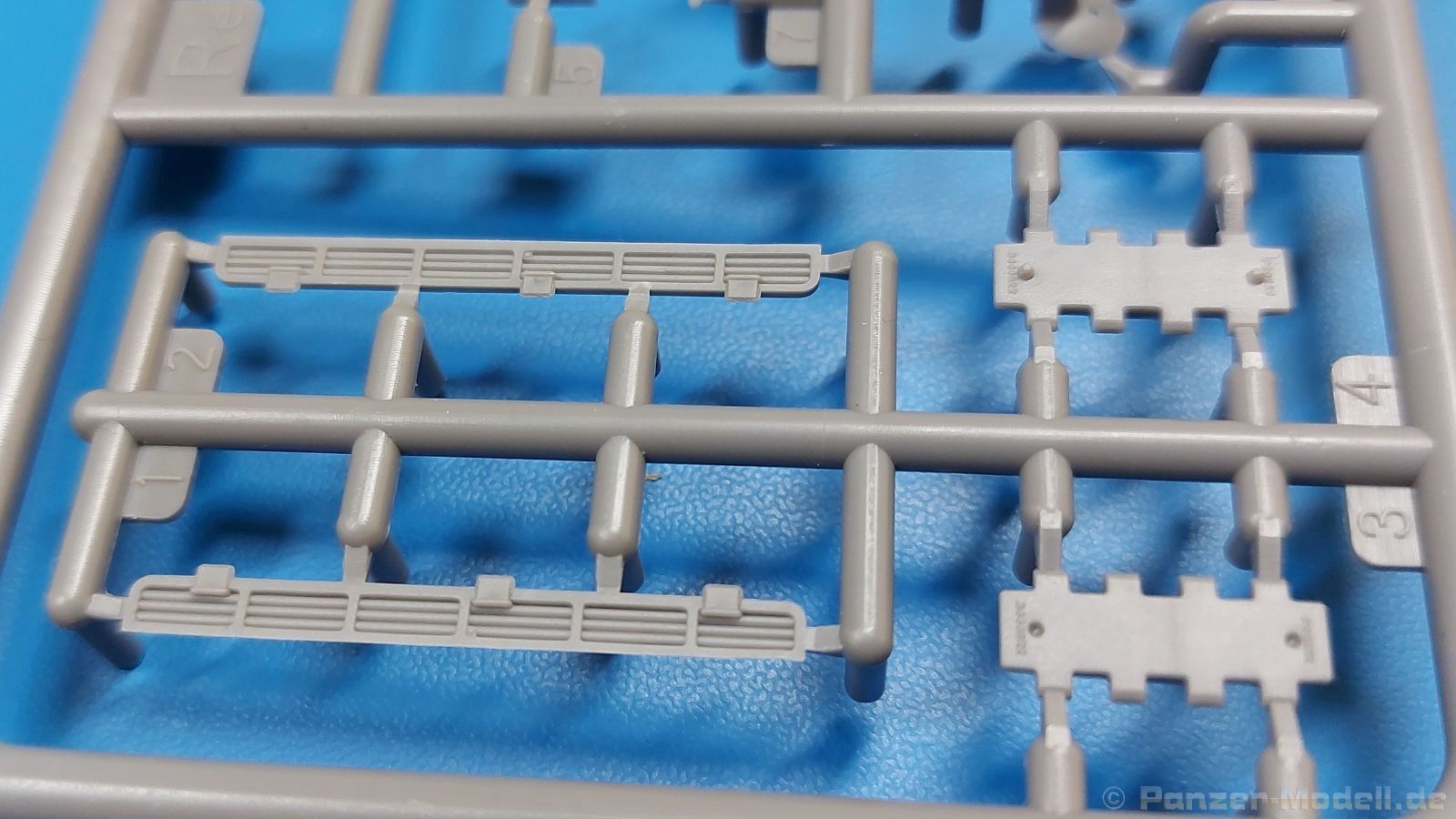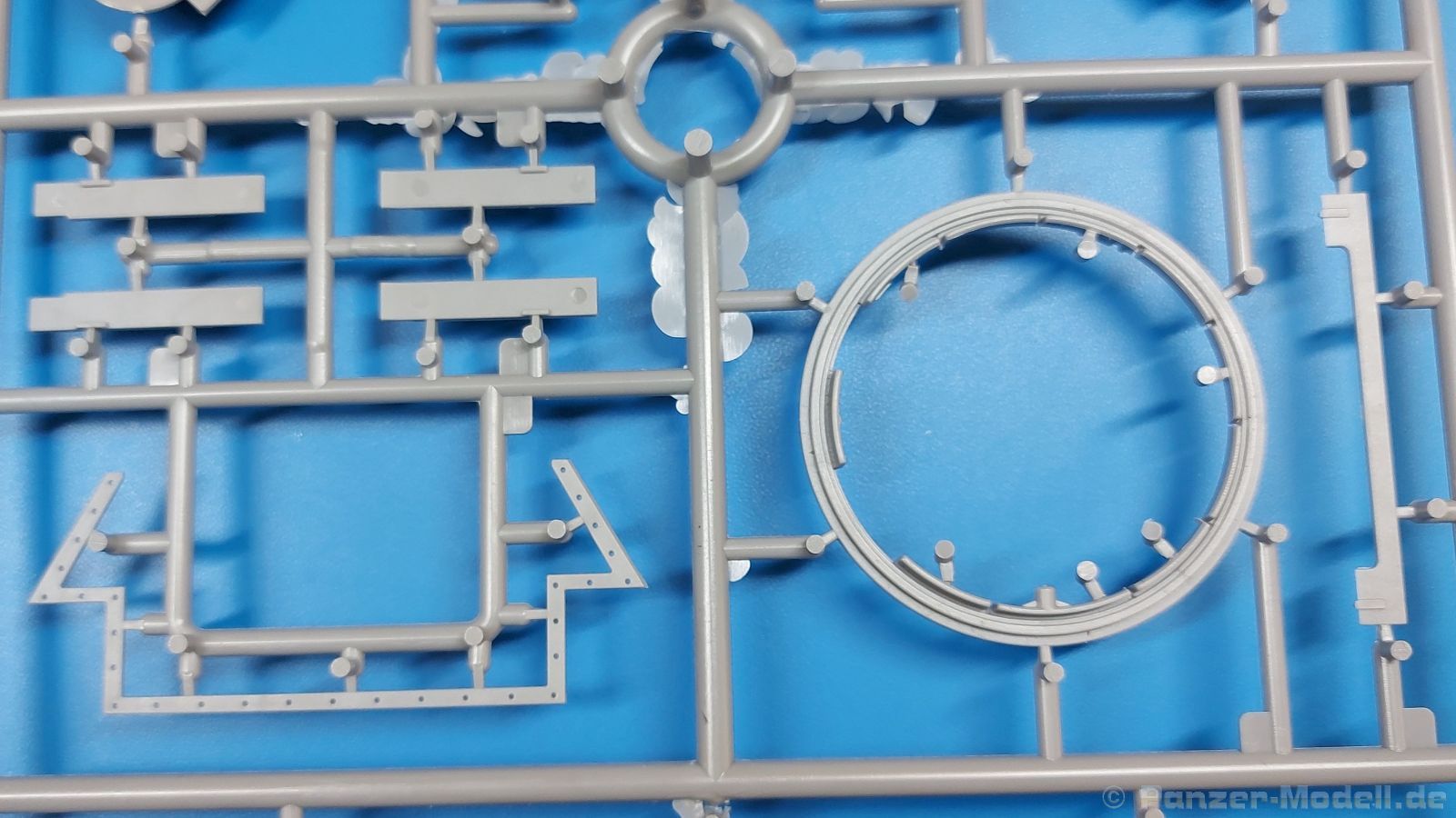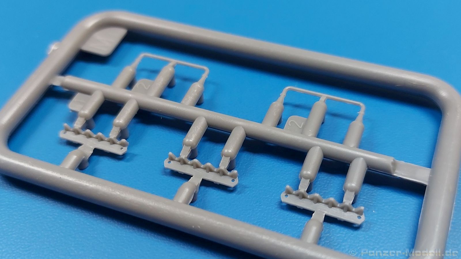Das Original: Es gibt wohl kaum einen Militärmodellbauer, der den sowjetischen T-34 nicht kennt. Als einer der meistgebauten und am längsten im Einsatz befindlichen Panzer kann man ihn nicht übersehen. Seine Produktion zog sich von 1940 bis 1955 mit über 60.000 gebauten Exemplaren, die große Masse davon in den Jahren 1940-45. Seine schräge Panzerung war ein Novum der Zeit und bereitete den deutschen Gegnern einiges Kopfzerbrechen. Anfangs war er mit 2 MG und einer 76mm Kanone ausgerüstet, ab 1944 bekam er einen größeren Turm mit 85mm Kanone und ebenfalls 2 MG. Sein 500 PS Motor konnte ihn auf über 50 km/h beschleunigen. Der Bausatz: Die ukrainische Firma MiniArt startete mit etlichen Modellen auf Basis des T-34 Fahrgestells wie die SU-122 und SU-85 Bausätzen, Laufwerken, Ketten und dem Motor V-2-34 samt Getriebe. Mittlerweile gibt es auch vom T-34 selbst jede Menge Bausätze mit und ohne Interior (T-34/85 MiniArt). Heute beschäftigen wir uns mit dem innen und außen voll ausgestatteten Bausatz Nr. 35301, dessen Original gegen Ende des 2. Weltkrieges eingesetzt wurde. Der 385 x 240 x 90 mm groÃe Karton mit Stülpdeckel ist bis zum Rand vollgestopft mit 76(!) hellgrauen, 2 Klarsichtspritzlingen, 1 PE-Platine und einem Decalsheet. MiniArt hat sich über die Jahre einen echten Namen gemacht und ist unter den Herstellern im Plastikmodellbau nicht mehr wegzudenken. Das spiegelt sich in der Qualität wider. Sauber gespritzte und filigrane Teile sind die Norm. Verzug oder Versatz konnte ich nicht entdecken. Dennoch gibt es etwas Grat, größer zum Glück nur an Gießästen, feiner Grat nur hier und da. Ich denke mal, dass einige Formen für mehrere verschiedene Bausätze genutzt wurden und so ein paar Durchgänge mehr hinter sich haben. Die Auswerfer sind fast ausnahmslos auf die Spritzrahmen gesetzt, so dass die Teile so gut wie keine Spuren davon aufweisen, bzw. nur an Stellen, die nach dem Zusammenbau nicht mehr zu sehen sind. Die Wanne ist unterteilt in Boden, Seiten- und Trennwände, welches den Einbau der Inneneinrichtung erheblich erleichtert. Motor und Getriebe gibt es ja als Bausatz Nr. 35205 separat zu kaufen. Hier fehlt nichts! Lagerböcke, Zylinderköpfe, Zuluft-, Abgaskanäle, Auspuffrohre, Kühlschläuche, Kühler, Lichtmaschine, Einspritzpumpe, Elektromotor für Lüfterrad, Lüfterrad, Luftfilter, Steuerstangen, Lenkbremsen - aus meiner Sicht fast alles da bis auf Einspritzleitungen und Verkabelung. Die Struktur der Kühlerrippen ist sehr fein. Dies gilt auch für den Zahnkranz des Lüfterrades. Auf dem Wannenboden angegossen findet man vom Fahrerplatz bis zu den Lenkbremsen das entsprechende Gestänge. Die Tanks sind mit Einfüllschrauben versehen und auch die eingepressten Versteifungsrippen sind vorhanden. Schaut man sich die Oberwanne dann mal an, findet man so einige Schraubenlöcher, die dort zu finden sind, wo Motor-, bzw. Kühlerabdeckungen normalerweise angebracht sind. Wenn man also z.B. für eine Wartungsszene die Abdeckungen weglässt, sind die Schraubenlöcher da. Eine absolut realistische Darstellung. Die Zu- und Abluftöffnungen sind durchbrochen. Hier kann man die Windleitbleche entsprechend positioniert einbauen. Den Zuluftdeckel über dem Lüfterrad hat man durchbrochen dargestellt. In die Öffnung werden dann aus PE-Teilen der Halterahmen und das Gitter eingesetzt. Die große Heckplatte, die auch abgeklappt angebaut werden kann, enthält die Öffnungen für die Auspuffrohre und eine große Wartungsöffnung. Auch hier findet man an den entsprechenden Stellen Schraubenlöcher, wenn man diese Deckel auflassen möchte. An der Innenseite der Heckplatte sind die Verschraubungen der Auspuffpanzerungen vorhanden. Der Kampfraum unterteilt sich in den Platz für Fahrer/Bug-MG Schütze und den Turmbereich. Der Fahrerplatz ist voll ausgestattet - Sitz, Bedien- und Schalthebel, Pedale, Armaturen, Feuerlöscher, Axt, Hammer, Halterungen mit Trommelmagazinen für das Bug-MG, Pressluftflaschen und jede Menge Gestänge. Für den Armaturen sind Decals im Bausatz enthalten. Die Fahrerluke bekommt Winkelspiegel aus Klarsichtmaterial. Alle Außen- und Innendetails inkl. Verriegelungen sind vorhanden. Baut man die Klappe offen, muss man nur den entsprechenden Öffnerzylinder anbauen. Über der Fahrerluke erkennt man die Kopfpolsterung für den Fahrer. Das Bug-MG kann wohl voll beweglich mit der Kugelblende eingebaut werden. Hier wollen 8 Teile sauber zusammengefügt werden. Sehr schön die Struktur des MG-Doms. In der Wanne unter dem Turm finden große Munitionsbehälter Platz, die gleichzeitig den Laufboden der Turmbesatzung darstellen. Die Rückwand zwischen Kampf- und Motorraum ist schon mit allerlei Details versehen. Für die vier verschiedenen Munitionsarten gibt es entsprechende Halterungen sowohl in der Wanne als auch im Turm. Der Bausatz enthält 24 sichtbare Patronen. Die 16 im Turmheck sind einzeln. Man kann da also welche weglassen, um etwas Verbrauch darzustellen. Da sind wir also beim Turm, der sich von anderen Türmen unterscheidet, wenn man die untere Turmkante beachtet. Während sie normalerweise rundum gerundet ist, ist sie beim zusammengesetzten (composite)œ Turm im Heckbereich gerade heruntergezogen. Das Turmdach zeigt uns im Inneren zwei sehr schöne Lüfter, die mit PE-Gittern versehen werden. Zudem gibt es noch einige angegossene Leitungen, die zu Kampfraumleuchten aus Klarsichtmaterial führen. Ebenfalls aus kristallklarem Material sind die Winkelspiegel im Dach und der Kommandatenluke und die Sichtblöcke der Kommandantenkuppel. Sowohl Kommandantenluke als auch Ladeschützenluke können offen oder geschlossen gebaut werden. Kleines Gimmick - die Verriegelungsnase der Ladeschützenluke bei hochgestellter Luke. Die inneren Turmseitenwände werden mit Schaltkästen, Werkzeug, Munitionshalterungen ausgestattet, bevor man die Wände in den Turm einklebt. So kann man diese bereits vorher problemlos bemalen, ohne dann im Turm kämpfenœ zu müssen. Was 