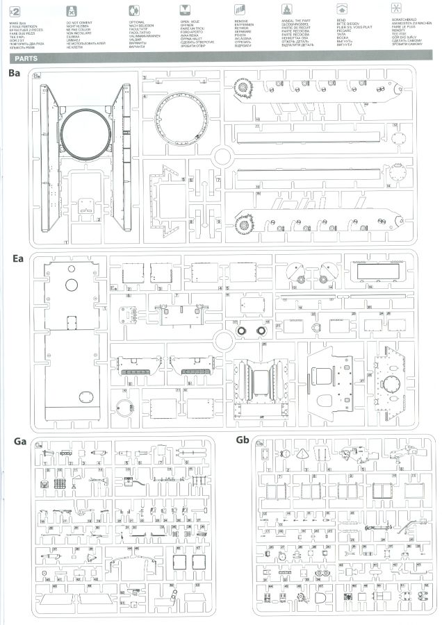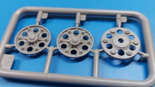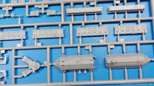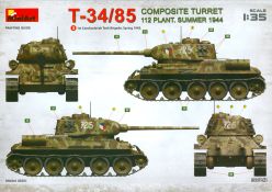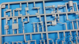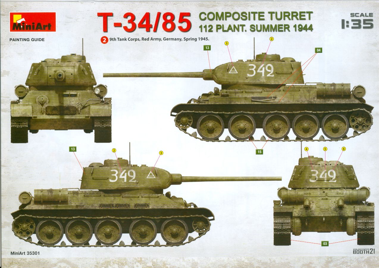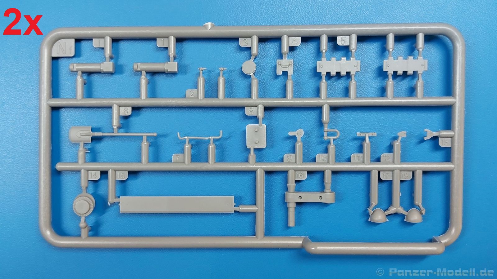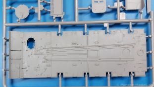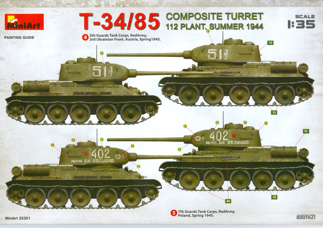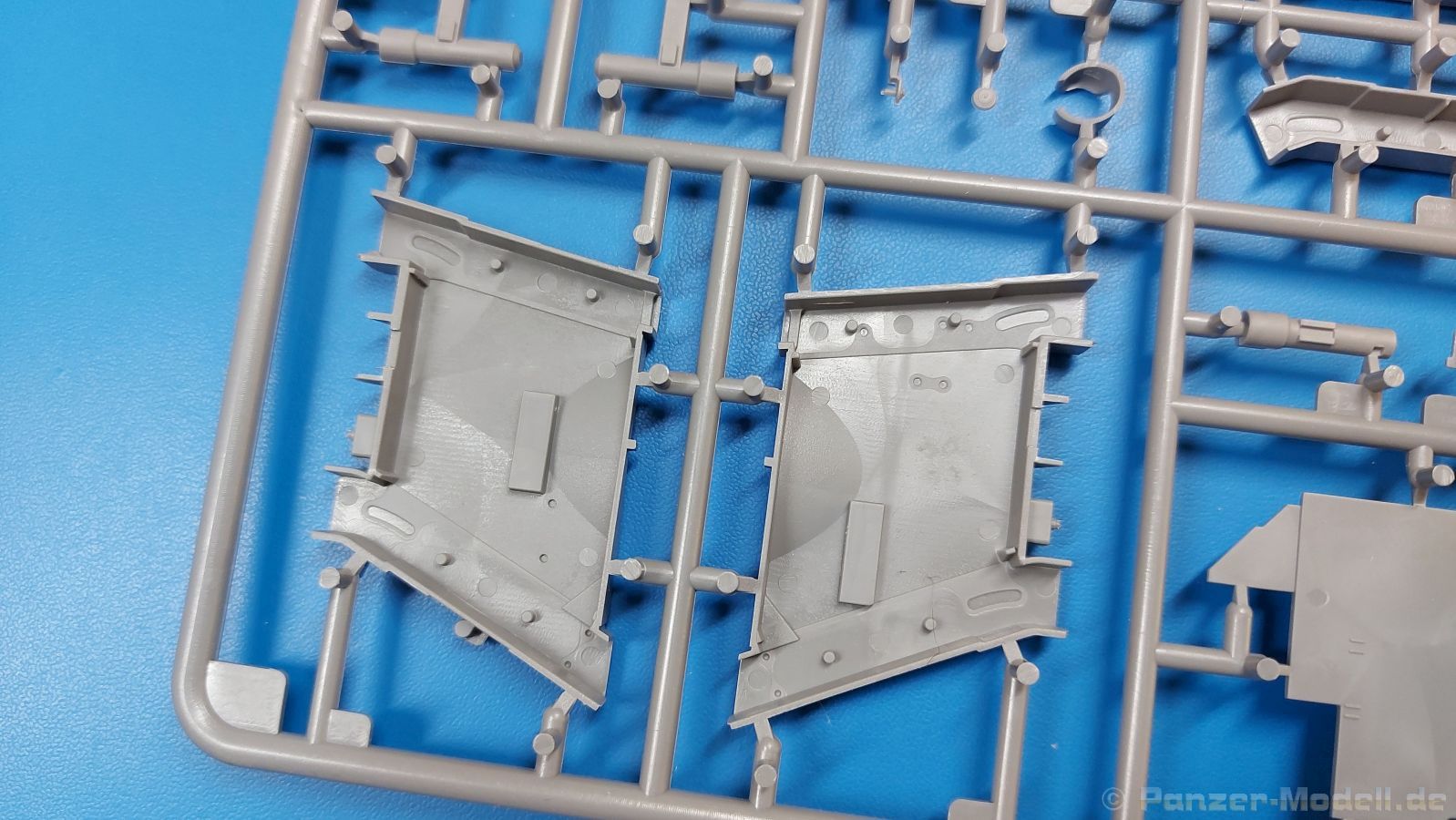 Das Original: Es gibt wohl kaum einen Militärmodellbauer, der den sowjetischen T-34 nicht kennt. Als einer der meistgebauten und am längsten im Einsatz befindlichen Panzer kann man ihn nicht übersehen. Seine Produktion zog sich von 1940 bis 1955 mit über 60.000 gebauten Exemplaren, die große Masse davon in den Jahren 1940-45. Seine schräge Panzerung war ein Novum der Zeit und bereitete den deutschen Gegnern einiges Kopfzerbrechen. Anfangs war er mit 2 MG und einer 76mm Kanone ausgerüstet, ab 1944 bekam er einen größeren Turm mit 85mm Kanone und ebenfalls 2 MG. Sein 500 PS Motor konnte ihn auf über 50 km/h beschleunigen. Der Bausatz: Die ukrainische Firma MiniArt startete mit etlichen Modellen auf Basis des T-34 Fahrgestells wie die SU-122 und SU-85 Bausätzen, Laufwerken, Ketten und dem Motor V-2-34 samt Getriebe. Mittlerweile gibt es auch vom T-34 selbst jede Menge Bausätze mit und ohne Interior (T-34/85 MiniArt). Heute beschäftigen wir uns mit dem innen und außen voll ausgestatteten Bausatz Nr. 35301, dessen Original gegen Ende des 2. Weltkrieges eingesetzt wurde. Der 385 x 240 x 90 mm groÃe Karton mit Stülpdeckel ist bis zum Rand vollgestopft mit 76(!) hellgrauen, 2 Klarsichtspritzlingen, 1 PE-Platine und einem Decalsheet. MiniArt hat sich über die Jahre einen echten Namen gemacht und ist unter den Herstellern im Plastikmodellbau nicht mehr wegzudenken. Das spiegelt sich in der Qualität wider. Sauber gespritzte und filigrane Teile sind die Norm. Verzug oder Versatz konnte ich nicht entdecken. Dennoch gibt es etwas Grat, größer zum Glück nur an Gießästen, feiner Grat nur hier und da. Ich denke mal, dass einige Formen für mehrere verschiedene Bausätze genutzt wurden und so ein paar Durchgänge mehr hinter sich haben. Die Auswerfer sind fast ausnahmslos auf die Spritzrahmen gesetzt, so dass die Teile so gut wie keine Spuren davon aufweisen, bzw. nur an Stellen, die nach dem Zusammenbau nicht mehr zu sehen sind. Die Wanne ist unterteilt in Boden, Seiten- und Trennwände, welches den Einbau der Inneneinrichtung erheblich erleichtert. Motor und Getriebe gibt es ja als Bausatz Nr. 35205 separat zu kaufen. Hier fehlt nichts! Lagerböcke, Zylinderköpfe, Zuluft-, Abgaskanäle, Auspuffrohre, Kühlschläuche, Kühler, Lichtmaschine, Einspritzpumpe, Elektromotor für Lüfterrad, Lüfterrad, Luftfilter, Steuerstangen, Lenkbremsen - aus meiner Sicht fast alles da bis auf Einspritzleitungen und Verkabelung. Die Struktur der Kühlerrippen ist sehr fein. Dies gilt auch für den Zahnkranz des Lüfterrades. Auf dem Wannenboden angegossen findet man vom Fahrerplatz bis zu den Lenkbremsen das entsprechende Gestänge. Die Tanks sind mit Einfüllschrauben versehen und auch die eingepressten Versteifungsrippen sind vorhanden. Schaut man sich die Oberwanne dann mal an, findet man so einige Schraubenlöcher, die dort zu finden sind, wo Motor-, bzw. Kühlerabdeckungen normalerweise angebracht sind. Wenn man also z.B. für eine Wartungsszene die Abdeckungen weglässt, sind die Schraubenlöcher da. Eine absolut realistische Darstellung. Die Zu- und Abluftöffnungen sind durchbrochen. Hier kann man die Windleitbleche entsprechend positioniert einbauen. Den Zuluftdeckel über dem Lüfterrad hat man durchbrochen dargestellt. In die Öffnung werden dann aus PE-Teilen der Halterahmen und das Gitter eingesetzt. Die große Heckplatte, die auch abgeklappt angebaut werden kann, enthält die Öffnungen für die Auspuffrohre und eine große Wartungsöffnung. Auch hier findet man an den entsprechenden Stellen Schraubenlöcher, wenn man diese Deckel auflassen möchte. An der Innenseite der Heckplatte sind die Verschraubungen der Auspuffpanzerungen vorhanden. Der Kampfraum unterteilt sich in den Platz für Fahrer/Bug-MG Schütze und den Turmbereich. Der Fahrerplatz ist voll ausgestattet - Sitz, Bedien- und Schalthebel, Pedale, Armaturen, Feuerlöscher, Axt, Hammer, Halterungen mit Trommelmagazinen für das Bug-MG, Pressluftflaschen und jede Menge Gestänge. Für den Armaturen sind Decals im Bausatz enthalten. Die Fahrerluke bekommt Winkelspiegel aus Klarsichtmaterial. Alle Außen- und Innendetails inkl. Verriegelungen sind vorhanden. Baut man die Klappe offen, muss man nur den entsprechenden Öffnerzylinder anbauen. Über der Fahrerluke erkennt man die Kopfpolsterung für den Fahrer. Das Bug-MG kann wohl voll beweglich mit der Kugelblende eingebaut werden. Hier wollen 8 Teile sauber zusammengefügt werden. Sehr schön die Struktur des MG-Doms. In der Wanne unter dem Turm finden große Munitionsbehälter Platz, die gleichzeitig den Laufboden der Turmbesatzung darstellen. Die Rückwand zwischen Kampf- und Motorraum ist schon mit allerlei Details versehen. Für die vier verschiedenen Munitionsarten gibt es entsprechende Halterungen sowohl in der Wanne als auch im Turm. Der Bausatz enthält 24 sichtbare Patronen. Die 16 im Turmheck sind einzeln. Man kann da also welche weglassen, um etwas Verbrauch darzustellen. Da sind wir also beim Turm, der sich von anderen Türmen unterscheidet, wenn man die untere Turmkante beachtet. Während sie normalerweise rundum gerundet ist, ist sie beim zusammengesetzten (composite)œ Turm im Heckbereich gerade heruntergezogen. Das Turmdach zeigt uns im Inneren zwei sehr schöne Lüfter, die mit PE-Gittern versehen werden. Zudem gibt es noch einige angegossene Leitungen, die zu Kampfraumleuchten aus Klarsichtmaterial führen. Ebenfalls aus kristallklarem Material sind die Winkelspiegel im Dach und der Kommandatenluke und die Sichtblöcke der Kommandantenkuppel. Sowohl Kommandantenluke als auch Ladeschützenluke können offen oder geschlossen gebaut werden. Kleines Gimmick - die Verriegelungsnase der Ladeschützenluke bei hochgestellter Luke. Die inneren Turmseitenwände werden mit Schaltkästen, Werkzeug, Munitionshalterungen ausgestattet, bevor man die Wände in den Turm einklebt. So kann man diese bereits vorher problemlos bemalen, ohne dann im Turm kämpfenœ zu müssen. Was 