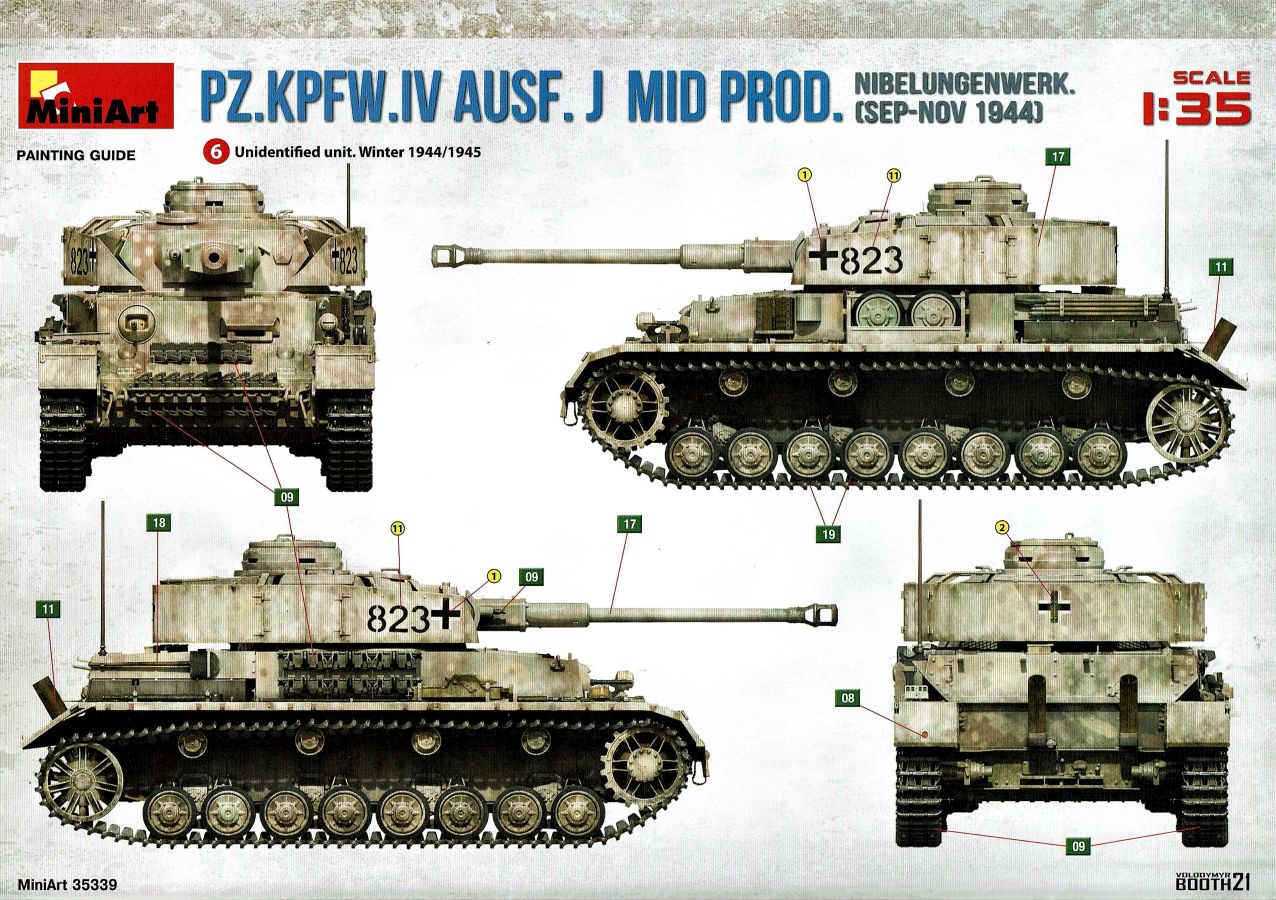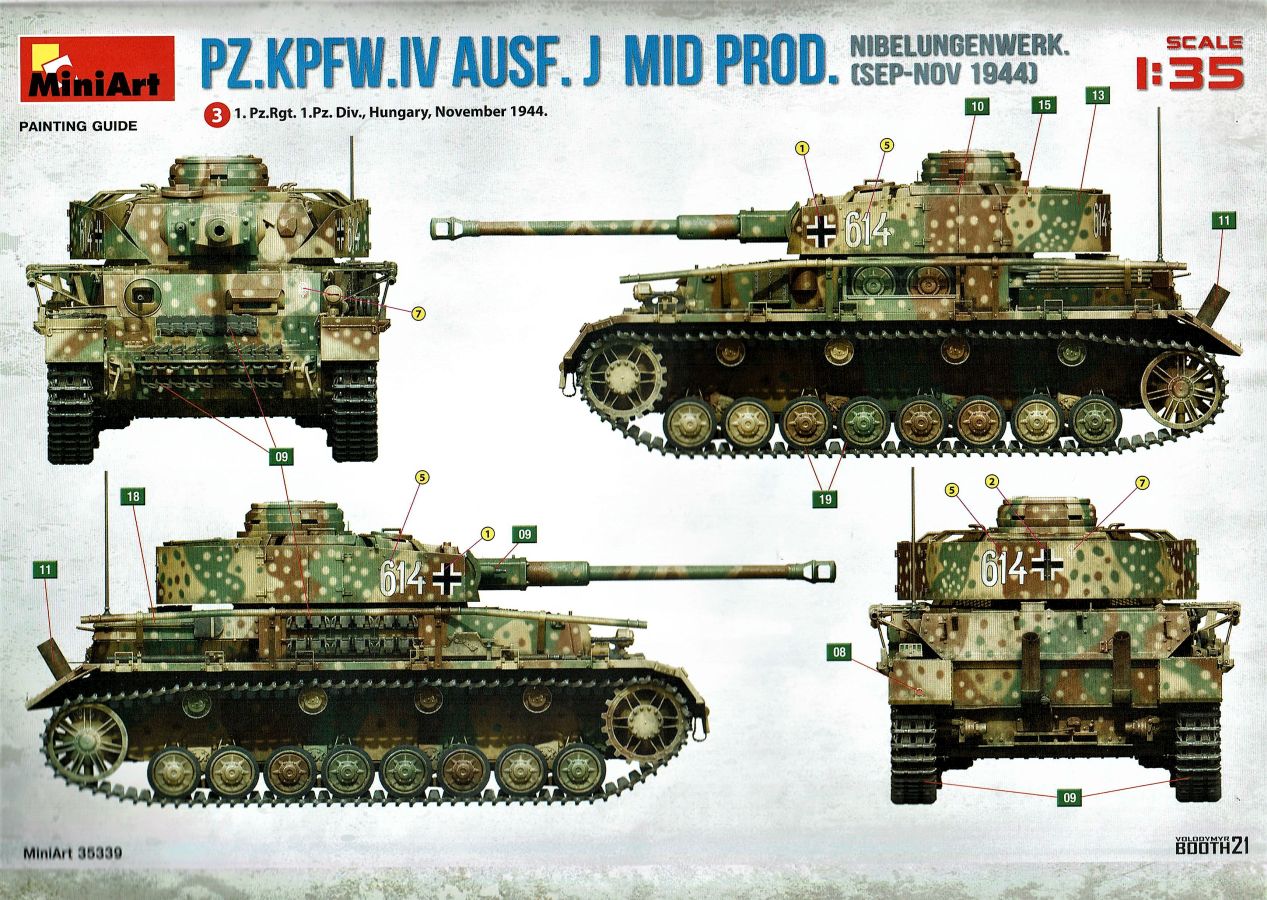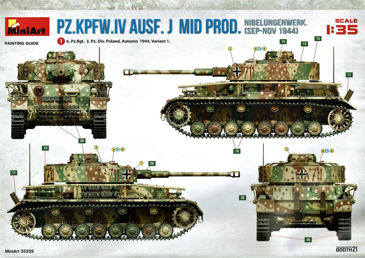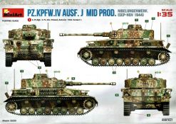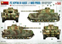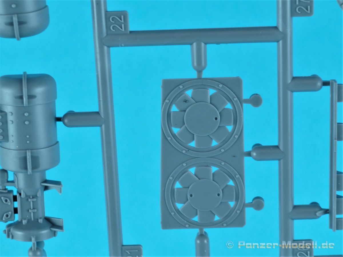 Unter der o.g. Nummer gibt es von MiniArt einen weiteren Panzer IV mit Inneneinrichtung. Diesmal eine mittlere „J“ Ausführung. Wenn ich mich nicht vertan habe offenbart sich der Inhalt der Bausatzschachtel (mit einer attraktiven Boxart versehen) mit 42 grauen und einem transparenten Spritzling. Dazu 22 Reihen mit den Kettengliedern und vier Rahmen Verbindungsbolzen. Eine Lehre für die Kettenmontage ist ebenfalls vorhanden. Alles wird abgerundet durch zwei PE-Platinen, einem umfangreichen Decalbogen und selbstmurmelnd der Bauanleitung. Bei der ersten Durchsicht der Bauteile zeigt sich eine sehr gute und hohe Qualität. Absolut auf der Höhe der Zeit! Keine Auswerfermarken in sichtbaren Bereichen, keine Formenversatz und auch keine Fischhäute… Was will man mehr? Die Unterwanne setzt sich aus mehreren Teilen zusammen. Das macht aber auch Sinn, denn so kann auf der toll strukturierten Bodenplatte vieles der Inneneinrichtung gut verbaut werden. Bei der Montage der Seitenteile würde es schon eng werden… Die Inneneinrichtung ist absolut top umgesetzt. Alles in hervorragendem Guß und mit einer sehr schönen Detailfülle. MiniArt scheint seine Hausaufgaben gemacht zu haben. Augenscheinlich fehlt hier nichts… Der Boden des Kampfraums mit den Tanks, die Munitionshalterungen, die teilweise offen oder geschlossen darstellbar sind und auch die einzelnen Granaten (inklusiv der passenden Decals!) die in verschiedenen Varianten vorliegen. Eine wahre Freude. Die Stellagen für die Bereitschaftsmunition wurden auch nicht vergessen. Weitere Pluspunkte holt sich der Kit mit den Antriebskomponenten. Vom Kardan über den reich detaillierten Getriebeblock mit den entsprechenden Wellen zu den Seitenvorgelegen und den Lenkbremsen. Alles mehrteilig und extrem detailliert in der Ausführung. Sehr gut im Spritzguß umgesetzt sind auch die Funkgeräte. Die Ausstattung des Fahrer- und Funkerplatzes ist ebenfalls auf hohem Niveau und sieht auch vollständig aus. Die Pedalerie, die Lenkhebel, die Sitze, die verschiedenen Instrumente (Decals!) und weitere Anbauteile hinterlassen einen weiteren positiven Gesamteindruck. Doch das ist nur der Anfang. Hinter dem Brandschott zum Motorraum finden wir einen mehrteiligen Motor von Maybach. Sehr detailliert und mit allen weiteren Anbau- und Anschlußteilen versehen. Für sich genommen ein richtiges Schmuckstück. Kühler, Lüfterelemente und weiter Kleinteile vervollständigen das Ensemble. Rund 40 Baustufen sind abzuarbeiten bis die Bodenplatte mit den Seitenteilen der Panzerwanne verbunden werden kann. Alle aufgeprägten Details, z.B. die Nieten, überzeugen auch hier. Korrekte Details gibt es auch an der Heckwand. Die Auspuffrohre/Flammenvernichter, erfreulicherweise in einem Stück und hohl gegossen, machen ebenfalls einen ausgezeichneten Eindruck. Die Glacisplatte liegt einzeln bei. Drei Öffnungen können optional offen oder geschlossen gebaut werden. Alle Luken sind auf der Innenseite ebenfalls detailliert dargestellt. Das gilt im kommenden Zusammenbau auch für alle weiteren Platten und Luken. So hat der Modellbauer so ziemlich alle Optionen zur Verfügung. Die Deckplatte des Panzerkastenaufbaus ist einteilig. Auch in diesem Fall können alle Luken offen (die Inneneinrichtung dankt es dir!) oder geschlossen gebaut werden. Mit dem Laufwerk kommt ein weiteres Highlight auf uns zu. Eine ganze Reihe von Optionsteilen (Z.B. verschiedene Leiträder und unterschiedliche Versionen an Stützrollen) stehen zur Auswahl. Alle Komponenten weisen wiederum scharfe Details auf. Auf den Rollenwagen, die man auch beweglich bauen kann, sind Produktionsnummern und Herstelleraufdrucke zu finden. Die Laufrollen überzeugen ebenfalls mit der Darstellung der Details. Zwei Optionen hat der Modellbauer bei den Nabenabdeckungen. Ohne Fehl auch der Schriftzug „Continental“ und Größenangaben auf den Gummibandagen. Ganz toll. Keine Abstriche sind auch bei den Ketten zu finden. Recht human in der Versäuberung, top umgesetzt, ohne Auswerferstellen mit aufgeprägten Produktionsziffern. Die Kette kann beweglich gebaut werden. Dazu werden von jeder Seite zwei Bolzen eingeschoben. Wenig Klebstoff ist das Gebot der Stunde. Zum einfacheren Bau liegt dem Kit eine Lehre bei. Die Front-, Seiten- und Heckbleche des Panzerkastenaufbaus werden einzeln angeklebt; hier muss man natürlich aufpassen und sehr sauber arbeiten damit dieser abschließend verzugs- und spaltenfrei aufgesetzt werden kann. Punkten können auch die Kettenabdeckbleche mit der sehr schönen Riffelblechstruktur. Optionen für die Werkzeuge und anzubringenden Ausrüstungsgegenstände gibt es auch in diesem Bereich. Thomaschürzen und Handgranatenschutzgitter liegen dem Bausatz als fein geätzte PE-Gitter bei und machen einen hervorragenden Eindruck. Die Schürzenelemente sind einzeln und lassen so dem Modellbauer gestalterische Möglichkeiten ob alle oder fehlende Elemente am Modell dargestellt werden. Die Halterungen setzen sich angenehmerweise aus relativ wenigen Plastikteilen inklusive der einteiligen Haltestange zusammen. Eine komplette und bis ins Detail überzeugende Inneneinrichtung zeichnet ebenfalls den Turm aus. Der Turm an sich baut sich aus dem Turmunterteil und dem mehrteiligen Oberteil sowie der Kanonenblende zusammen. Turmbühne, fein geriffelte Bodenplatte, Richt- und Sichtmittel, Sitze und auch die im Turm verborgenen Teile für die 7,5cm KwK L/48 finden sich im Inneren. Auch im Außenbereich kann der Turm überzeugen, z.B. mit den versenkten Schraubenköpfen… Für den optionalen Anbau auf dem Turmdach liefert MiniArt sogar einen Orterkompass mit dazugehörigem Decal. Tolle Sache! Die Öffnung der Nahverteidigungswaffe wurde auch nicht vergessen. Die zweiteiligen Seitenluken und natürlich auch die Luke der Kommandantenkuppel lassen sich offen darstellen - sei es um Figuren zu platzieren oder weitere Blicke auf das schöne Innenleben zu ermöglichen. Für die Turmbewaffnung stehen zwei verschiedene Blenden 