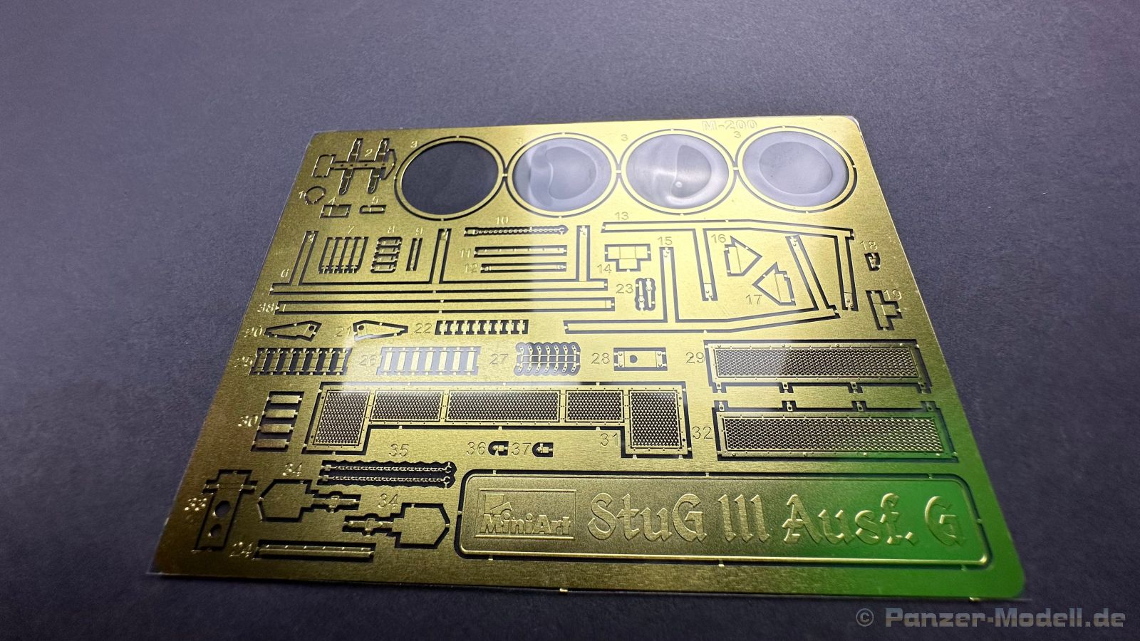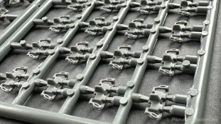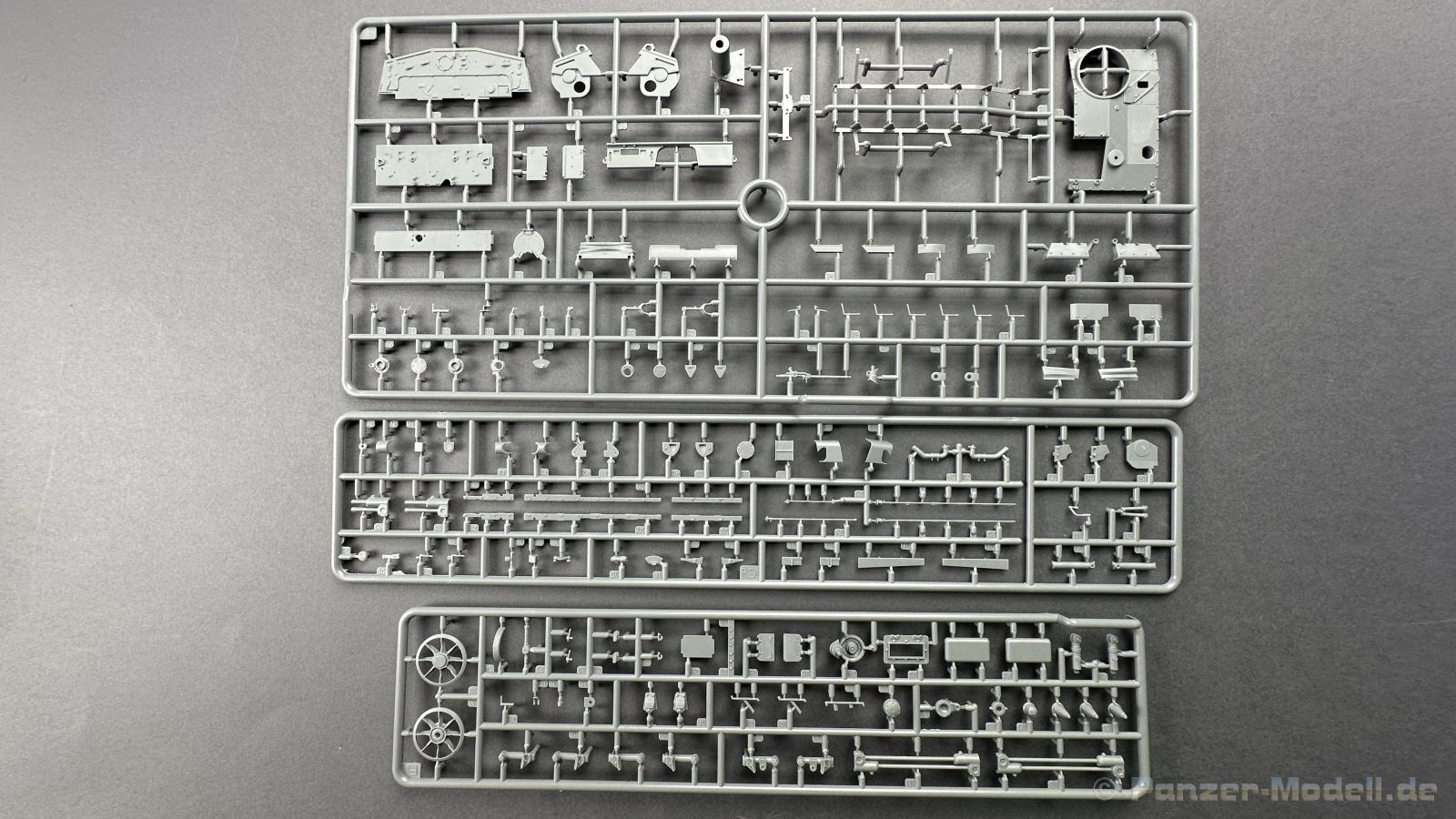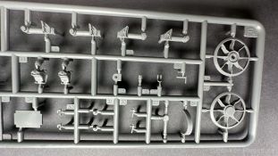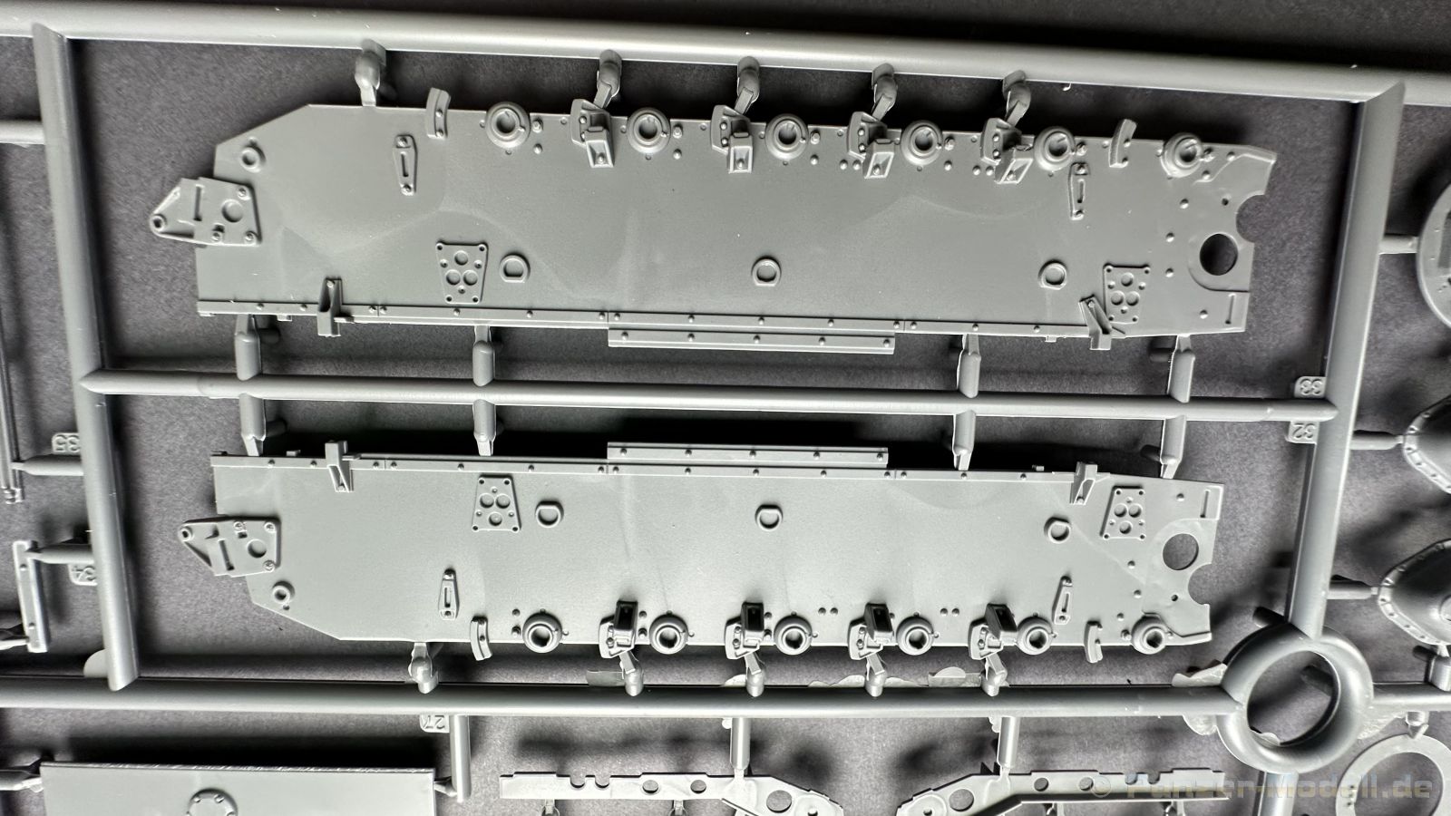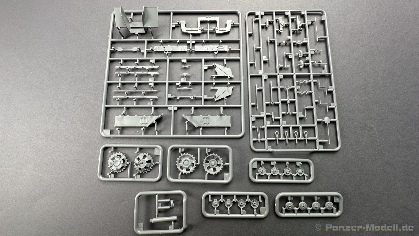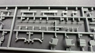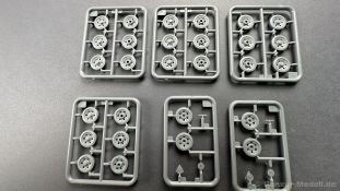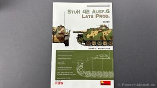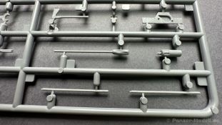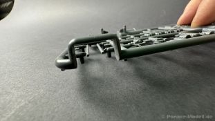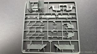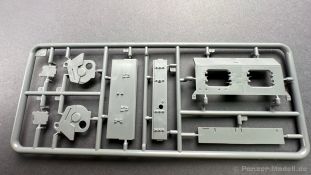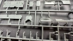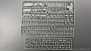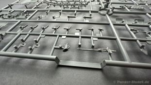 76 Baustufen gibt es zu vervollständigen, die Anleitung ist klar und leicht zu verstehen. Wo man sehr gut auspassen sollte, ist die Bezeichnung der einzelnen Spritzlinge, durch die Verwandtschaft mit den Bausätzen inkl. Inneneinrichtung haben wir sehr viele Buchstabenkombinationen mit Groß und Kleinbuchstaben. Die Farbangaben für die 5 verschiedenen Decalvarianten reichen von Vallejo, Mr Color C Farben, AK Real Colors, Mission Models, Ammo of Mig bis zu Tamiya. Pro Decalvariante finden wir mindestens 4 Ansichten + Besonderheiten zur Bemalung bzw. Anbringung der Naßschiebebilder, die übrigends aus dem Hause Cartograf stammen und für eine hohe Qualität sorgen Die Wanne besteht aus mehreren Teilen, die zusammengefügt werden müssen, auch hier ist Vorsicht geboten da, wenn die Wanne nicht konsequent gerade ausgerichtet wird es später zu Problem kommen wird bzgl. der Passgenauigkeit der weiteren Aufbauten. Man kann gut sehen das Mini-Art aus seinem Füllhorn an bereits vorhanden Bausätzen geschöpft hat, auch an Bausätzen mit Inneneinrichtung. An vielen innen liegenden Bauteilen sind die Aufnahmen zu erkennen die benötigt werden, um eine Inneneinrichtung zu bauen, die Teile liegen aber nicht mit dabei. Ein wenig schade ist das die Luken und Motorraumklappen alle offen dargestellt werden können aber keinerlei Inhalt zum Füllen beiliegt, da lobe ich mir immer noch Dragon die eine rudimentäre Inneneinrichtung beigelegt haben. Da bleiben nur die Optionen, Luken zu oder Luken auf und mit Figuren bemannen. Leider weisen doch viele Bauteile Fischhaut auf, was z.b. an den Einzelgliederketten, die noch dazu 3 Angüsse haben, ziemlich ärgerlich ist, da hier dem Modellbauer eine fiese Sisyphusarbeit an die Hand gegeben wird. Die späten Merkmale der StuH, sind nach meinem Wissen gut eingefangen worden, neben dem fehlenden Narbendeckel auf den Antriebsrädern, dem von innen zu bedienenden MG zur Selbstverteidigung finden wir noch gummisparende Rücklaufrollen und andere Kleinigkeiten, die eine späte StuH ausmachen. Im allgemeinen sin die Bausätze von Mini Art Hyperdetaliert , um mal ein paar Beispiele zu nennen wir finden auf den Laufrollen endlich mal einen anderen Hersteller, nämlich Vorwerk , dann sind Nieten, Gravuren und Schweißnähte hervorragend dargestellt. Die Kettenbleche sind von oben und unten mit Gravuren versehen und wie es aussieht auch der korrekten Wiedergabe des Riefelbleches, alleine das wäre schon ein Grund zum Kaufen ïwas sich leider auch in den immensen Spritzlingen bzw. Bauteilen niederschlägt bzw. Bauteilen. Die Kettenglieder müssen geklebt werden, ähnlich wie bei den Magic Tracks von Dragon, es empfiehlt sich also, erst alles Glieder zu versäubern, das Laufwerk zusammen zu bauen und dann die Kette zu montieren damit alles passt, wenn der Kleber angezogen ist. Werkzeuge sollen laut Anleitung mit Halterungen aus Ätzteilen befestigt werden. Die Schürzen und die Umrandung für Gepäck liegen als Ätzteile dabei, etwas frickelig sieht die Montage der Schürzenhalterung aus, hier ist viel sorgsam geboten. Interessanterweise liegt dem Bausatz kein Abschleppseil dabei, die Kauschen ja, ein Seil jedoch nicht. Erfreulicherweise liegt ein einteiliges Kanonenrohr dabei für die 10,5 Haubitze, leider sind die Züge ein wenig in den oberen Kunststoff eingeschnitten, hier hilft ein wenig Schmirgeln. Richtig ist, dass die Mündungsbremse nicht dabei ist, diese entfiel im Laufe des Jahre 1944. Zusammenfassend würde ich sagen, hier bekommt der geneigte Modellbauer einen Bausatz der die bisher erscheinen Bausätzen anderer Hersteller überlegen ist, jedoch ein wenig Liebe benötigt um ein tolles Modell zu bauen, ich würde sogar soweit gehen und sagen das der Bausatz aufgrund seiner kleinen und filigranen Bauteile, den Ätzteilen nicht Anfängerfreundlich ist und einen etwas erfahrenen Modellauer benötigt. Für mich persönlich schließt sich ein lang gehegter Traum, ich baue mit dieser StuH 42 den Panzer nach, der in den Farbaufnahmen bei den Seelower Höhen mit Schwingschürzen zu sehen ist.
