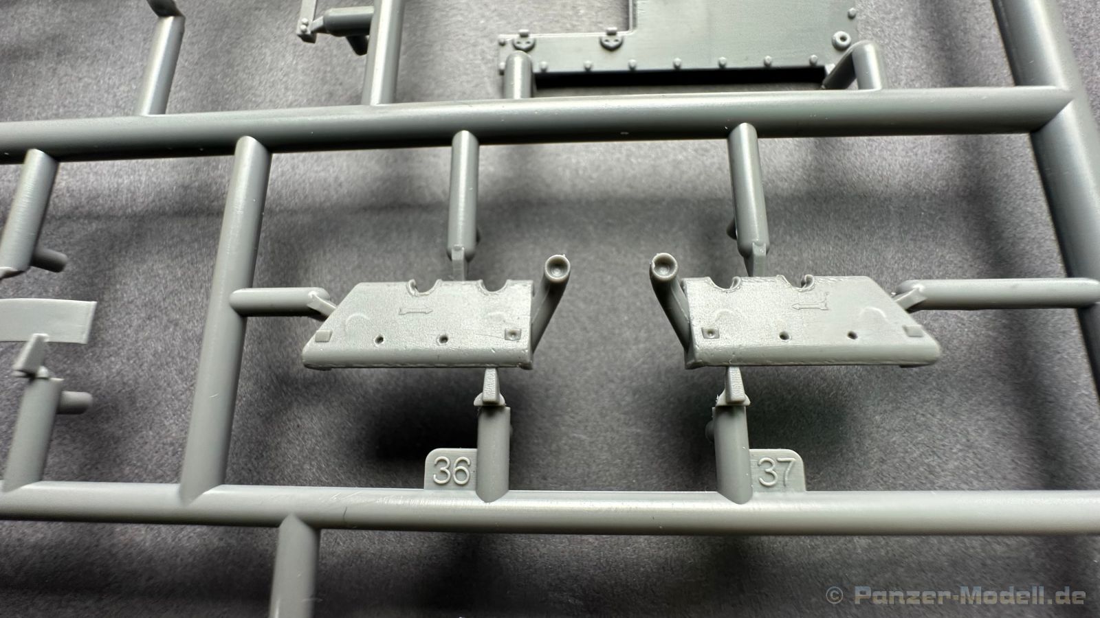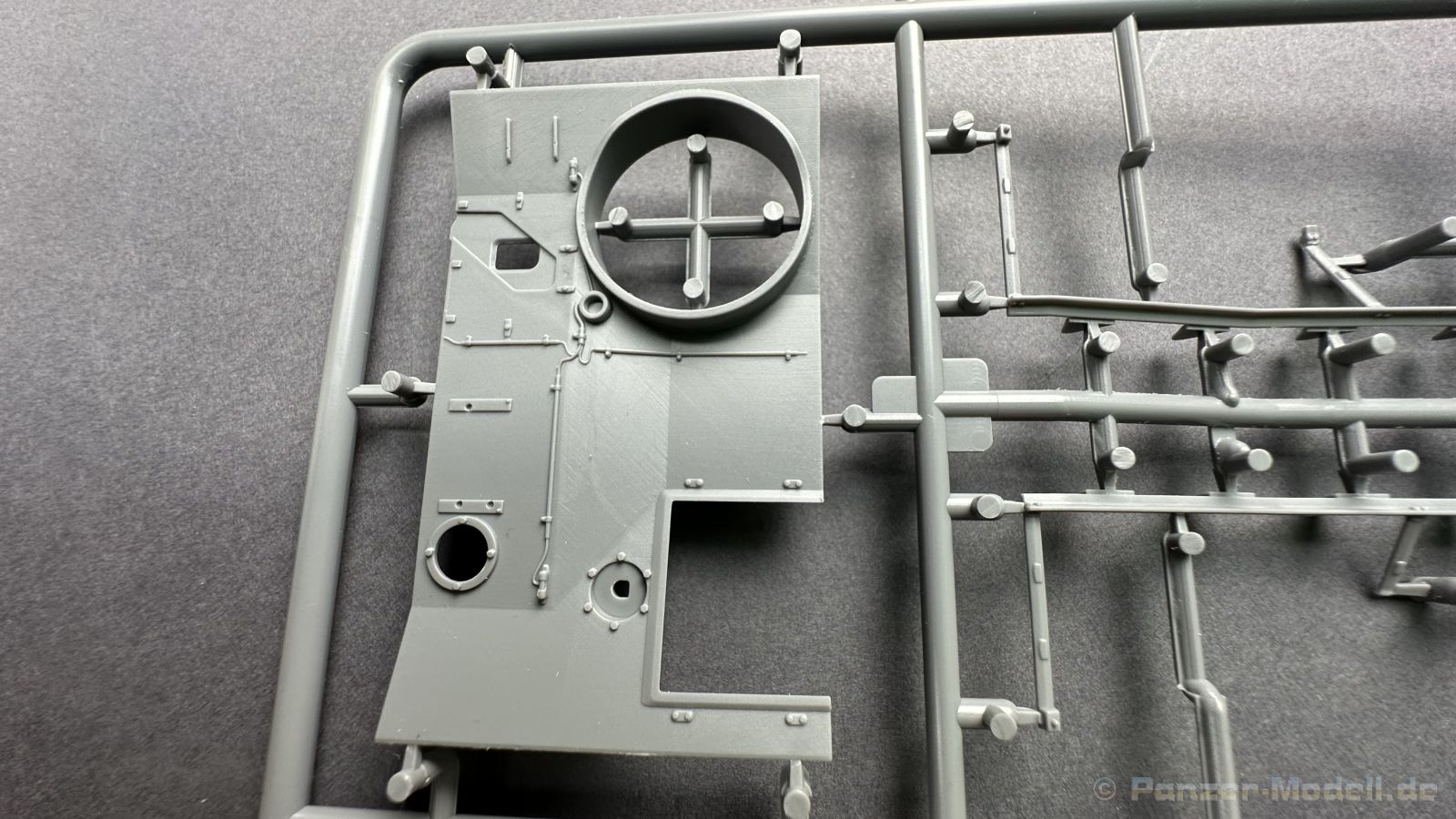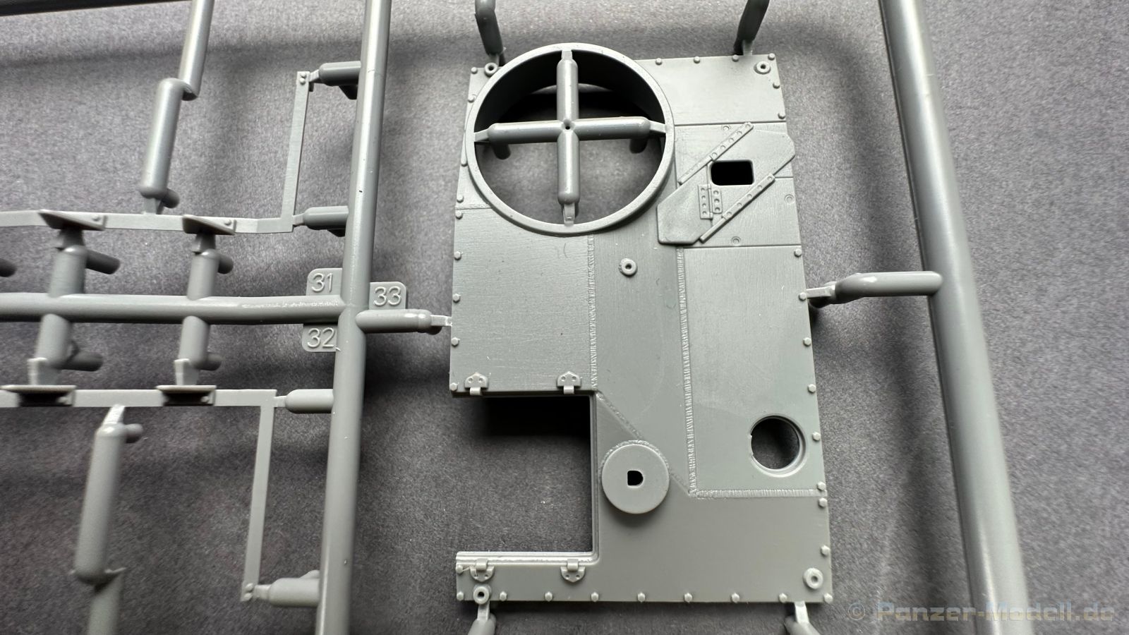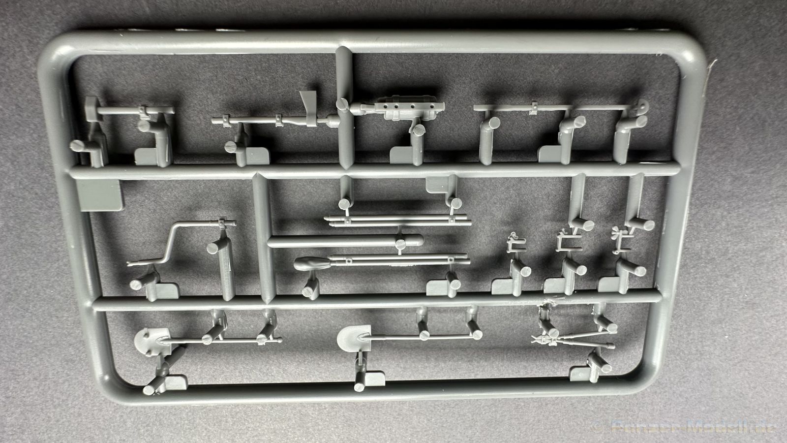76 Baustufen gibt es zu vervollständigen, die Anleitung ist klar und leicht zu verstehen. Wo man sehr gut auspassen sollte, ist die Bezeichnung der einzelnen Spritzlinge, durch die Verwandtschaft mit den Bausätzen inkl. Inneneinrichtung haben wir sehr viele Buchstabenkombinationen mit Groß und Kleinbuchstaben. Die Farbangaben für die 5 verschiedenen Decalvarianten reichen von Vallejo, Mr Color C Farben, AK Real Colors, Mission Models, Ammo of Mig bis zu Tamiya. Pro Decalvariante finden wir mindestens 4 Ansichten + Besonderheiten zur Bemalung bzw. Anbringung der Naßschiebebilder, die übrigends aus dem Hause Cartograf stammen und für eine hohe Qualität sorgen Die Wanne besteht aus mehreren Teilen, die zusammengefügt werden müssen, auch hier ist Vorsicht geboten da, wenn die Wanne nicht konsequent gerade ausgerichtet wird es später zu Problem kommen wird bzgl. der Passgenauigkeit der weiteren Aufbauten. Man kann gut sehen das Mini-Art aus seinem Füllhorn an bereits vorhanden Bausätzen geschöpft hat, auch an Bausätzen mit Inneneinrichtung. An vielen innen liegenden Bauteilen sind die Aufnahmen zu erkennen die benötigt werden, um eine Inneneinrichtung zu bauen, die Teile liegen aber nicht mit dabei. Ein wenig schade ist das die Luken und Motorraumklappen alle offen dargestellt werden können aber keinerlei Inhalt zum Füllen beiliegt, da lobe ich mir immer noch Dragon die eine rudimentäre Inneneinrichtung beigelegt haben. Da bleiben nur die Optionen, Luken zu oder Luken auf und mit Figuren bemannen. Leider weisen doch viele Bauteile Fischhaut auf, was z.b. an den Einzelgliederketten, die noch dazu 3 Angüsse haben, ziemlich ärgerlich ist, da hier dem Modellbauer eine fiese Sisyphusarbeit an die Hand gegeben wird. Die späten Merkmale der StuH, sind nach meinem Wissen gut eingefangen worden, neben dem fehlenden Narbendeckel auf den Antriebsrädern, dem von innen zu bedienenden MG zur Selbstverteidigung finden wir noch gummisparende Rücklaufrollen und andere Kleinigkeiten, die eine späte StuH ausmachen. Im allgemeinen sin die Bausätze von Mini Art Hyperdetaliert , um mal ein paar Beispiele zu nennen wir finden auf den Laufrollen endlich mal einen anderen Hersteller, nämlich Vorwerk , dann sind Nieten, Gravuren und Schweißnähte hervorragend dargestellt. Die Kettenbleche sind von oben und unten mit Gravuren versehen und wie es aussieht auch der korrekten Wiedergabe des Riefelbleches, alleine das wäre schon ein Grund zum Kaufen ïwas sich leider auch in den immensen Spritzlingen bzw. Bauteilen niederschlägt bzw. Bauteilen. Die Kettenglieder müssen geklebt werden, ähnlich wie bei den Magic Tracks von Dragon, es empfiehlt sich also, erst alles Glieder zu versäubern, das Laufwerk zusammen zu bauen und dann die Kette zu montieren damit alles passt, wenn der Kleber angezogen ist. Werkzeuge sollen laut Anleitung mit Halterungen aus Ätzteilen befestigt werden. Die Schürzen und die Umrandung für Gepäck liegen als Ätzteile dabei, etwas frickelig sieht die Montage der Schürzenhalterung aus, hier ist viel sorgsam geboten. Interessanterweise liegt dem Bausatz kein Abschleppseil dabei, die Kauschen ja, ein Seil jedoch nicht. Erfreulicherweise liegt ein einteiliges Kanonenrohr dabei für die 10,5 Haubitze, leider sind die Züge ein wenig in den oberen Kunststoff eingeschnitten, hier hilft ein wenig Schmirgeln. Richtig ist, dass die Mündungsbremse nicht dabei ist, diese entfiel im Laufe des Jahre 1944. Zusammenfassend würde ich sagen, hier bekommt der geneigte Modellbauer einen Bausatz der die bisher erscheinen Bausätzen anderer Hersteller überlegen ist, jedoch ein wenig Liebe benötigt um ein tolles Modell zu bauen, ich würde sogar soweit gehen und sagen das der Bausatz aufgrund seiner kleinen und filigranen Bauteile, den Ätzteilen nicht Anfängerfreundlich ist und einen etwas erfahrenen Modellauer benötigt. Für mich persönlich schließt sich ein lang gehegter Traum, ich baue mit dieser StuH 42 den Panzer nach, der in den Farbaufnahmen bei den Seelower Höhen mit Schwingschürzen zu sehen ist.