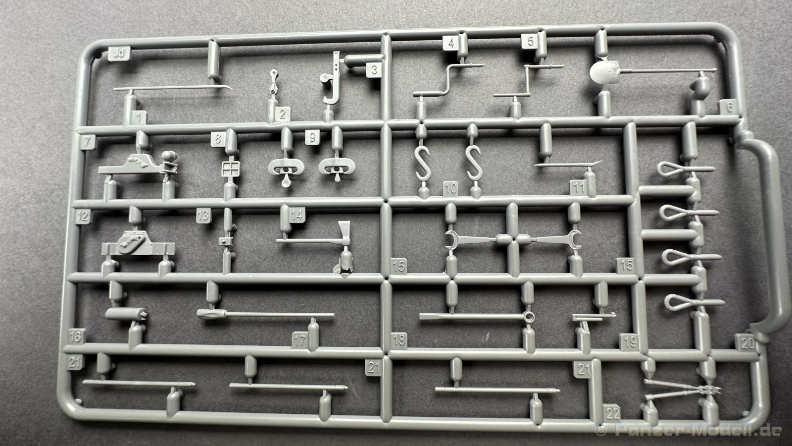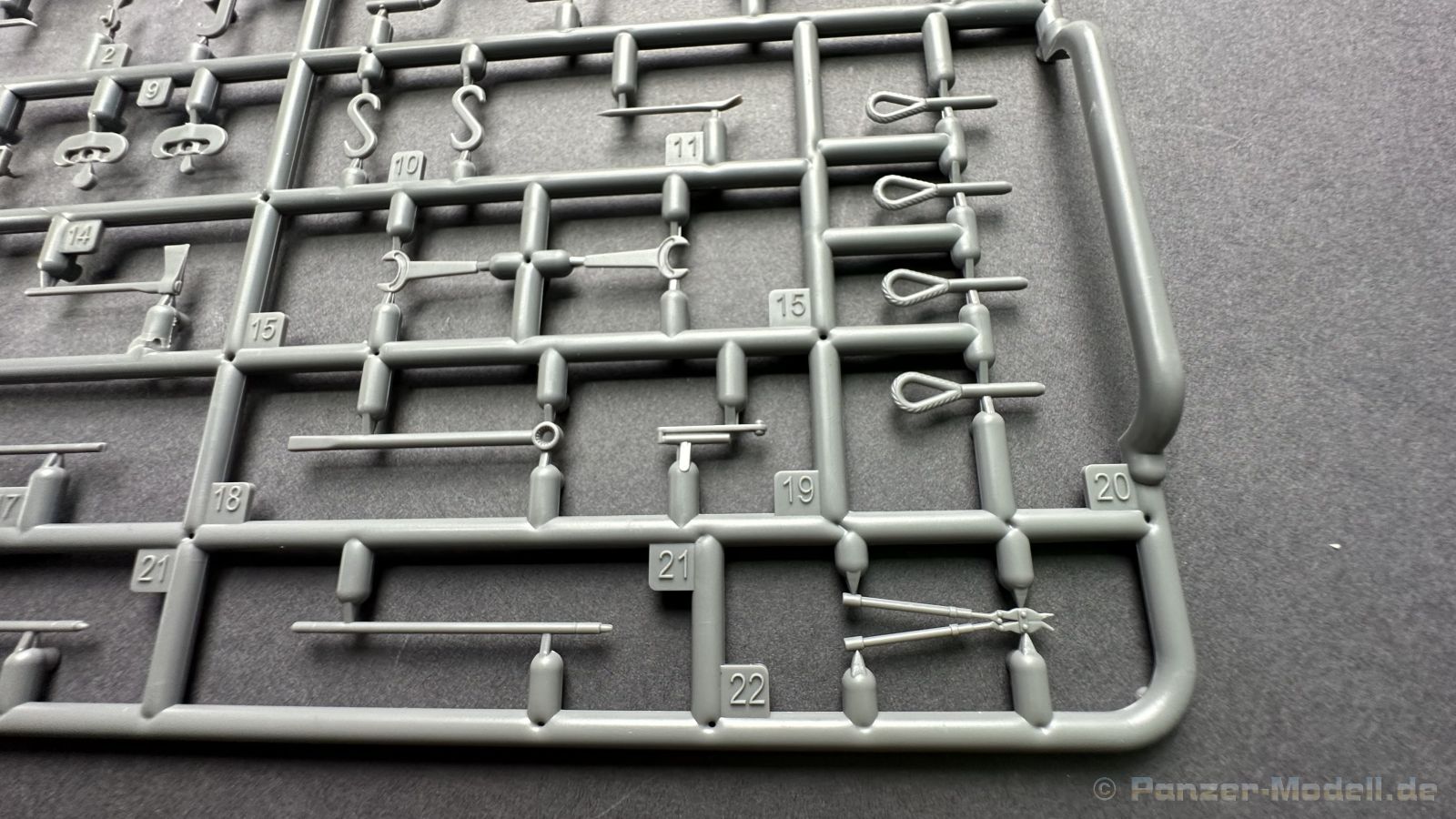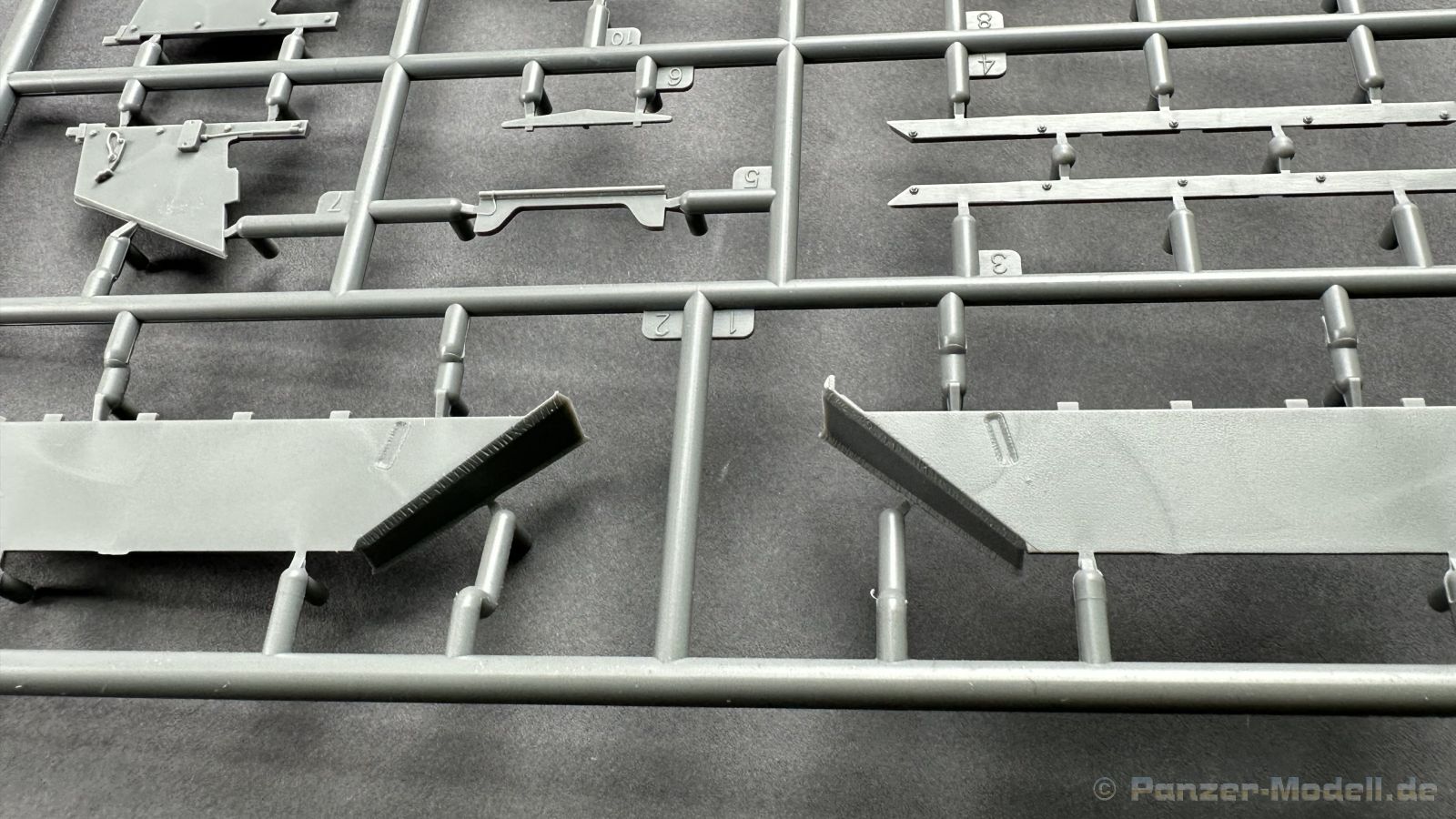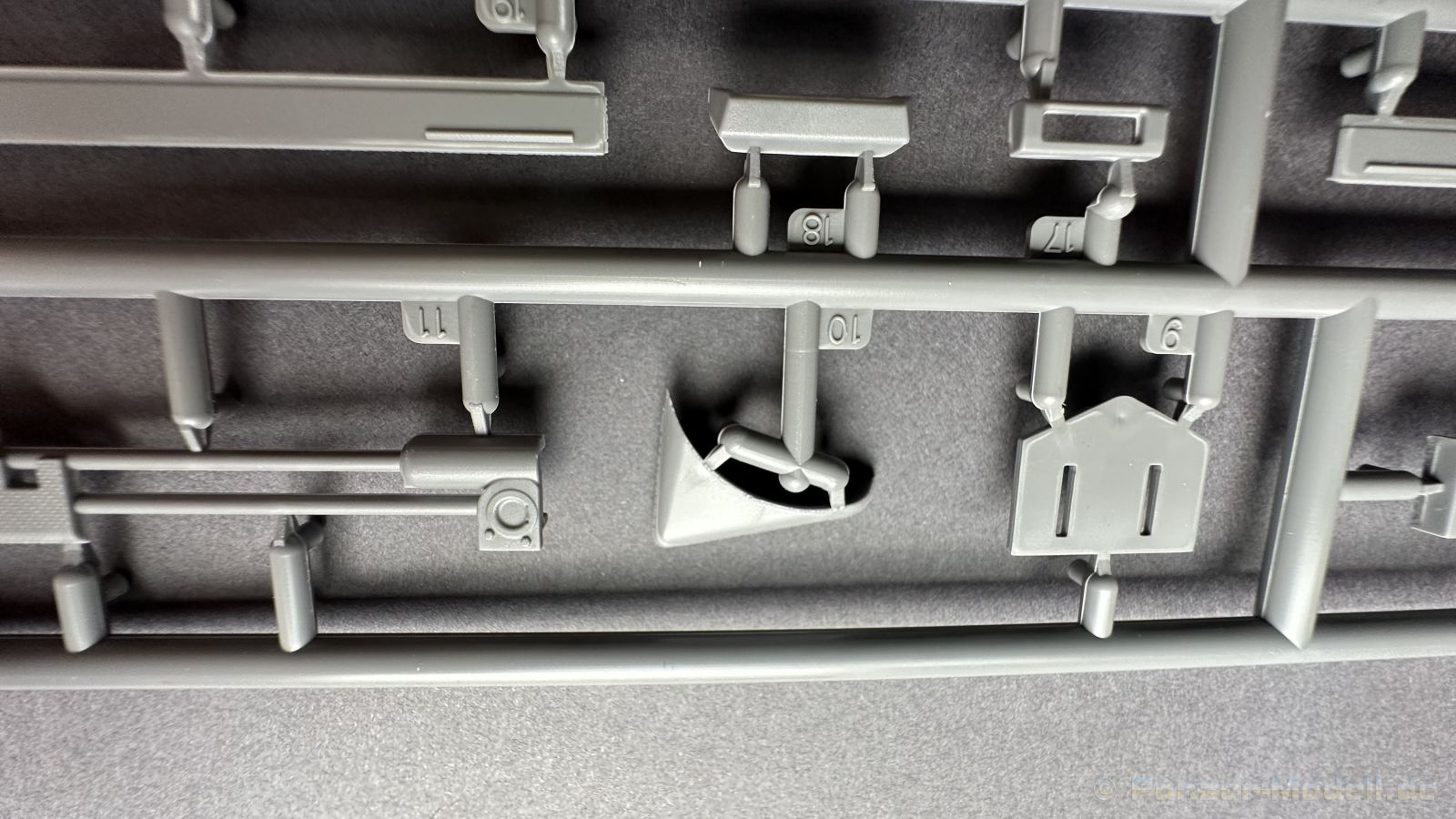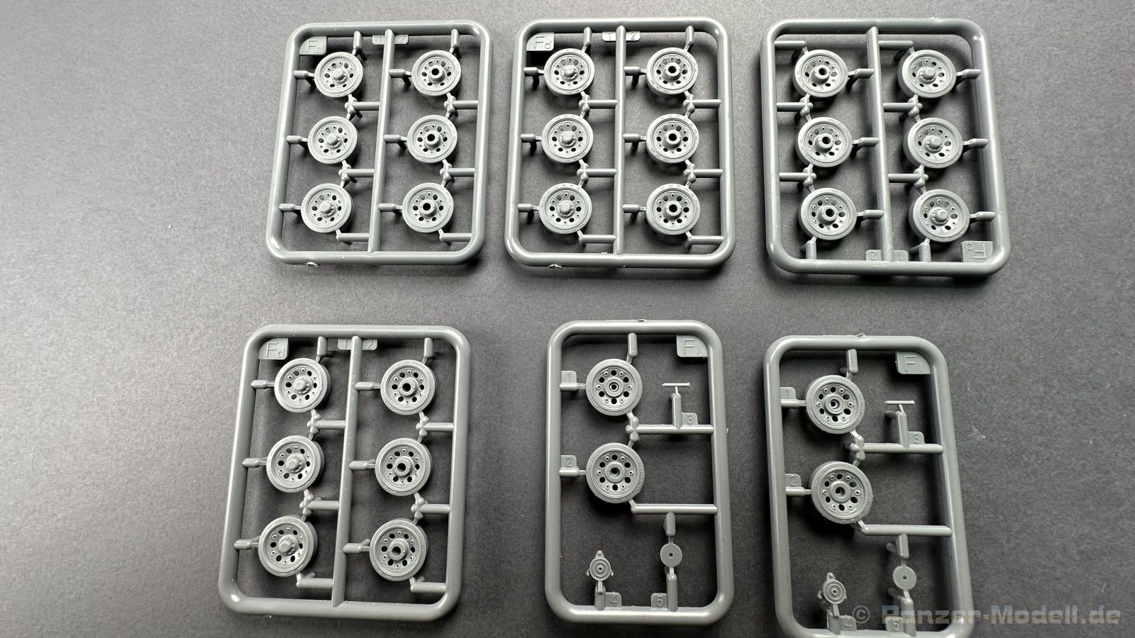 76 Baustufen gibt es zu vervollständigen, die Anleitung ist klar und leicht zu verstehen. Wo man sehr gut auspassen sollte, ist die Bezeichnung der einzelnen Spritzlinge, durch die Verwandtschaft mit den Bausätzen inkl. Inneneinrichtung haben wir sehr viele Buchstabenkombinationen mit Groß und Kleinbuchstaben. Die Farbangaben für die 5 verschiedenen Decalvarianten reichen von Vallejo, Mr Color C Farben, AK Real Colors, Mission Models, Ammo of Mig bis zu Tamiya. Pro Decalvariante finden wir mindestens 4 Ansichten + Besonderheiten zur Bemalung bzw. Anbringung der Naßschiebebilder, die übrigends aus dem Hause Cartograf stammen und für eine hohe Qualität sorgen Die Wanne besteht aus mehreren Teilen, die zusammengefügt werden müssen, auch hier ist Vorsicht geboten da, wenn die Wanne nicht konsequent gerade ausgerichtet wird es später zu Problem kommen wird bzgl. der Passgenauigkeit der weiteren Aufbauten. Man kann gut sehen das Mini-Art aus seinem Füllhorn an bereits vorhanden Bausätzen geschöpft hat, auch an Bausätzen mit Inneneinrichtung. An vielen innen liegenden Bauteilen sind die Aufnahmen zu erkennen die benötigt werden, um eine Inneneinrichtung zu bauen, die Teile liegen aber nicht mit dabei. Ein wenig schade ist das die Luken und Motorraumklappen alle offen dargestellt werden können aber keinerlei Inhalt zum Füllen beiliegt, da lobe ich mir immer noch Dragon die eine rudimentäre Inneneinrichtung beigelegt haben. Da bleiben nur die Optionen, Luken zu oder Luken auf und mit Figuren bemannen. Leider weisen doch viele Bauteile Fischhaut auf, was z.b. an den Einzelgliederketten, die noch dazu 3 Angüsse haben, ziemlich ärgerlich ist, da hier dem Modellbauer eine fiese Sisyphusarbeit an die Hand gegeben wird. Die späten Merkmale der StuH, sind nach meinem Wissen gut eingefangen worden, neben dem fehlenden Narbendeckel auf den Antriebsrädern, dem von innen zu bedienenden MG zur Selbstverteidigung finden wir noch gummisparende Rücklaufrollen und andere Kleinigkeiten, die eine späte StuH ausmachen. Im allgemeinen sin die Bausätze von Mini Art Hyperdetaliert , um mal ein paar Beispiele zu nennen wir finden auf den Laufrollen endlich mal einen anderen Hersteller, nämlich Vorwerk , dann sind Nieten, Gravuren und Schweißnähte hervorragend dargestellt. Die Kettenbleche sind von oben und unten mit Gravuren versehen und wie es aussieht auch der korrekten Wiedergabe des Riefelbleches, alleine das wäre schon ein Grund zum Kaufen ïwas sich leider auch in den immensen Spritzlingen bzw. Bauteilen niederschlägt bzw. Bauteilen. Die Kettenglieder müssen geklebt werden, ähnlich wie bei den Magic Tracks von Dragon, es empfiehlt sich also, erst alles Glieder zu versäubern, das Laufwerk zusammen zu bauen und dann die Kette zu montieren damit alles passt, wenn der Kleber angezogen ist. Werkzeuge sollen laut Anleitung mit Halterungen aus Ätzteilen befestigt werden. Die Schürzen und die Umrandung für Gepäck liegen als Ätzteile dabei, etwas frickelig sieht die Montage der Schürzenhalterung aus, hier ist viel sorgsam geboten. Interessanterweise liegt dem Bausatz kein Abschleppseil dabei, die Kauschen ja, ein Seil jedoch nicht. Erfreulicherweise liegt ein einteiliges Kanonenrohr dabei für die 10,5 Haubitze, leider sind die Züge ein wenig in den oberen Kunststoff eingeschnitten, hier hilft ein wenig Schmirgeln. Richtig ist, dass die Mündungsbremse nicht dabei ist, diese entfiel im Laufe des Jahre 1944. Zusammenfassend würde ich sagen, hier bekommt der geneigte Modellbauer einen Bausatz der die bisher erscheinen Bausätzen anderer Hersteller überlegen ist, jedoch ein wenig Liebe benötigt um ein tolles Modell zu bauen, ich würde sogar soweit gehen und sagen das der Bausatz aufgrund seiner kleinen und filigranen Bauteile, den Ätzteilen nicht Anfängerfreundlich ist und einen etwas erfahrenen Modellauer benötigt. Für mich persönlich schließt sich ein lang gehegter Traum, ich baue mit dieser StuH 42 den Panzer nach, der in den Farbaufnahmen bei den Seelower Höhen mit Schwingschürzen zu sehen ist.