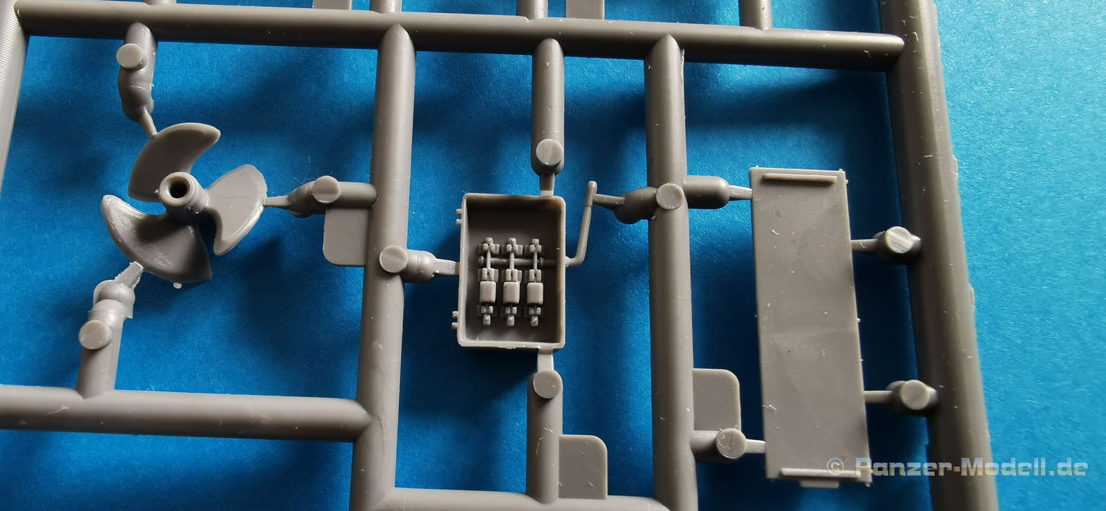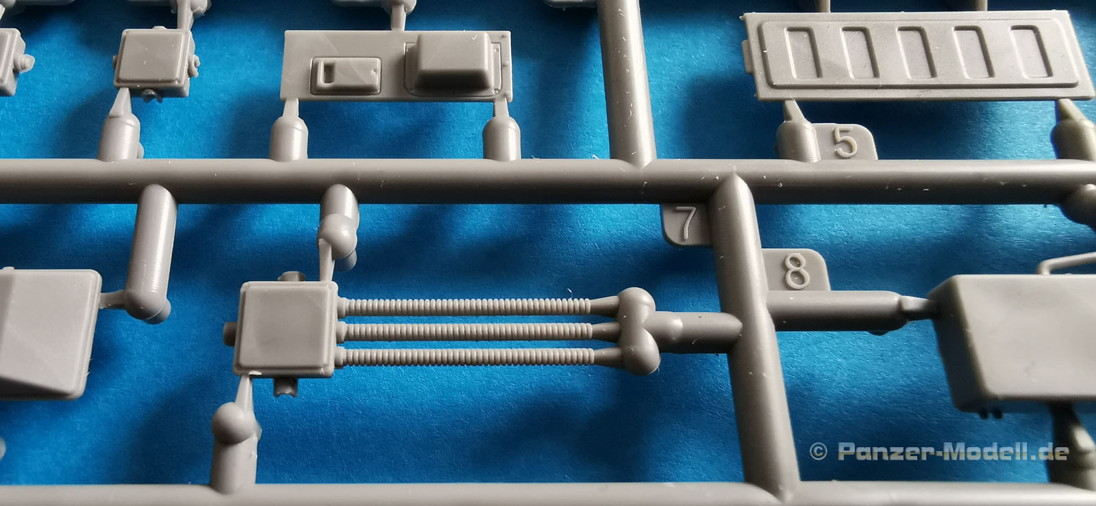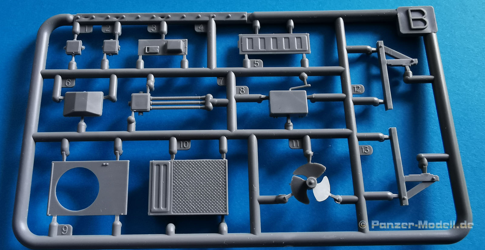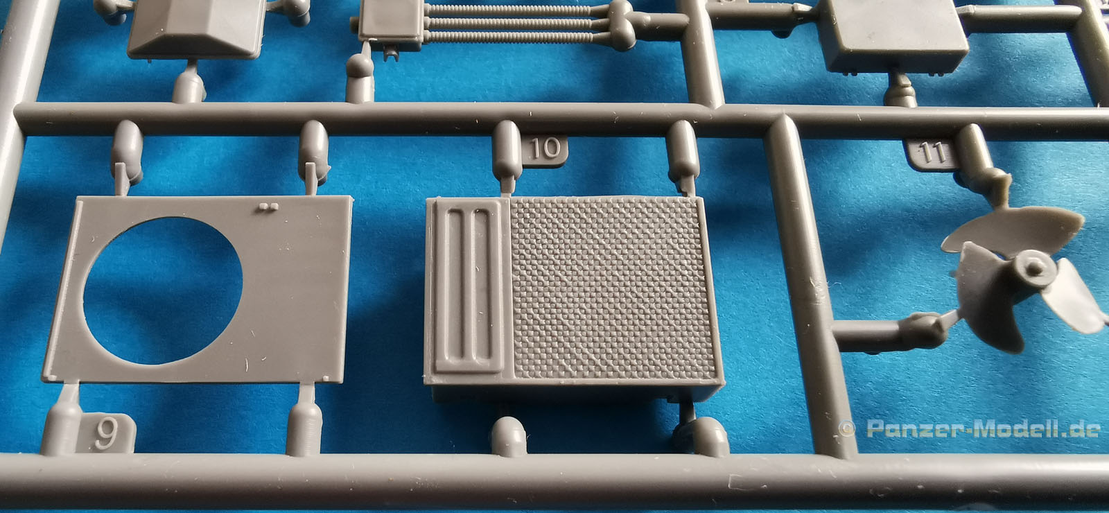 MiniArt bietet mit der Art. Nr. 35638 ein kleines aber feines Zubehörset an. Im Set enthalten sind drei Rahmen mit dunkelgrauen Spritzgussbauteilen, ein Decal Sheet sowie eine kleine Platine mit Photoätzteilen. Mit dem Bausatzinhalt können zwei Satellitenschüsseln mit Anbauteilen, zwei extern an Gebäuden montierten Klimageräte, zwei elektrische Schaltkästen sowie sechs elektrische Anschluss- / Verteilerdosen gebaut werden. Das Decal Sheet beinhaltet die nötige Beschriftung für die Elektronikbauteile, für die Satellitenschüsseln sowie zwei Graffittis in englischer Sprache. Einmal den Schriftzug DANGER und einmal den Schriftzug STAY WILD. Während der Spritzrahmen Bf zwei unterschiedliche Satellitenschüsseln mit unterschiedlichen Wandhalterungen bietet so sind die beiden Spritzrahmen B für die Klimageräte exakt gleich. Dennenoch bietet der Bausatz die Möglichkeit auch die Klimageräte optisch unterschiedlich darzustellen. Das geschieht durch die Verwendung der Photoätzteile. Hier liegen nämlich als Optionsteile (PE1 & PE2) unterschiedliche Gitterabdeckungen für die Lüfter bei. Auch die seitlichen Gitterabdeckungen (PE3 & PE4) sind optisch unterschiedlich dargestellt und bieten so Variationsmöglichkeiten. Eine Bauanleitung befindet sich auf der Rückseite der Bausatzpackung. Sie zeigt sehr übersichtlich die Montage, die Bemalung sowie die Platzierung der Decals. Farbangaben sind vorhanden für Vallejo, Mr. Color, AK Real Color, Mission Models, Ammo by Mig und Tamiya. Die Fertigungsqualität der Spritzgussbauteile ist absolut Top! Feinste scharfkantige Details, fast keine Gussgrate vorhanden und relativ kleine Angüsse sind hier zu nennen.Und wenn man dann noch sieht dass bei den beiden Schaltkästen sogar das Innenleben dargestellt ist und man die Kästen wahlweise offen oder geschlossen darstellen kann... Was will man mehr? Dieser Bausatz richtet sich an die Dioramenbauer, durch die zwangsweise Verwendung der Photoätzteile und Filigranität der Bauteile sollte schon eine gewisse Modellbauerfahrung vorhanden sein.