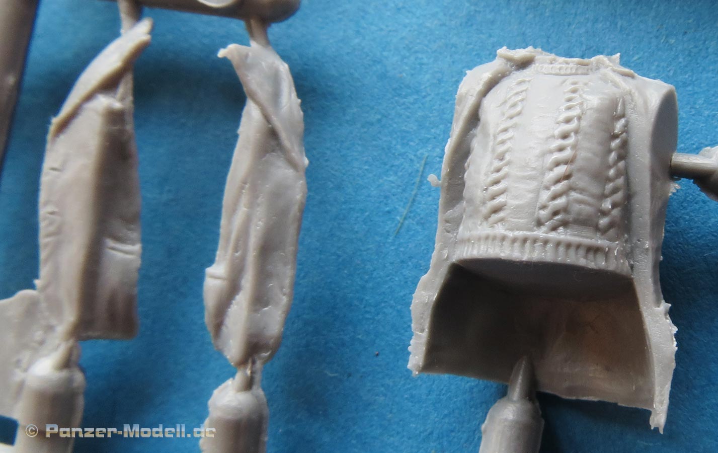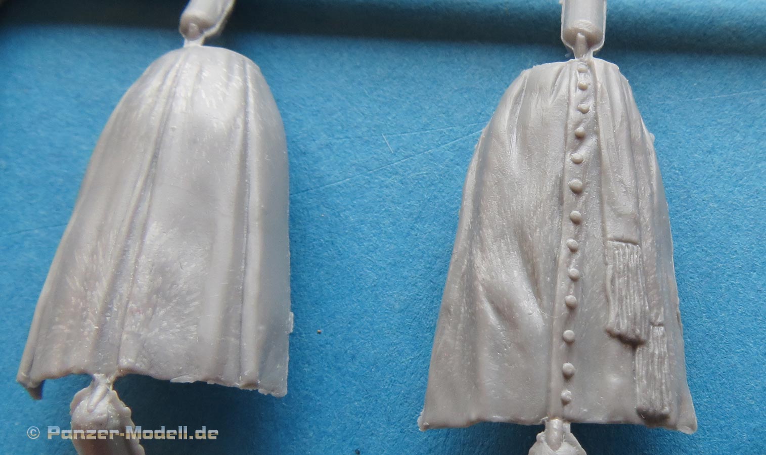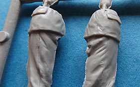 Alle Figuren können durchaus überzeugen. Gute, gelungene Gesichtszüge und ein überzeugender Faltenwurf der spezifischen Bekleidung. Dabei ist insbesondere die Darstellung der Mäntel und offenen Jacken sehr gelungen und gibt den Figuren eine gewisse Dynamik und etwas besonderes im Einheitslook sonstiger Figuren. Auch der Kollege, mit dem Brotkorb in den Armen sticht hier positiv hervor, zum einen durch die passende Pose aber auch, dass sich im Bausatz eben auch entsprechende Brote befinden, die man dann in den Korb legen kann.