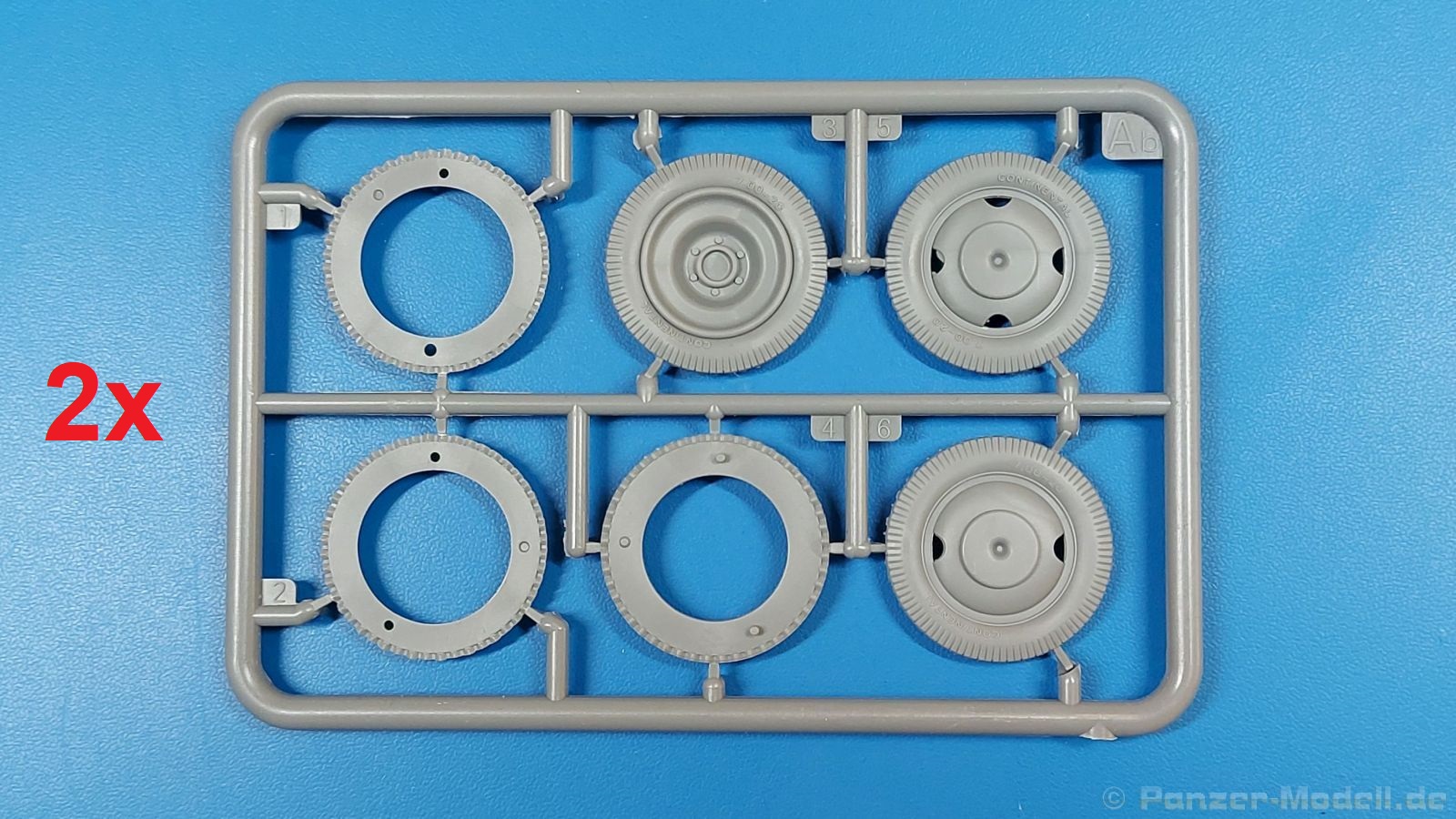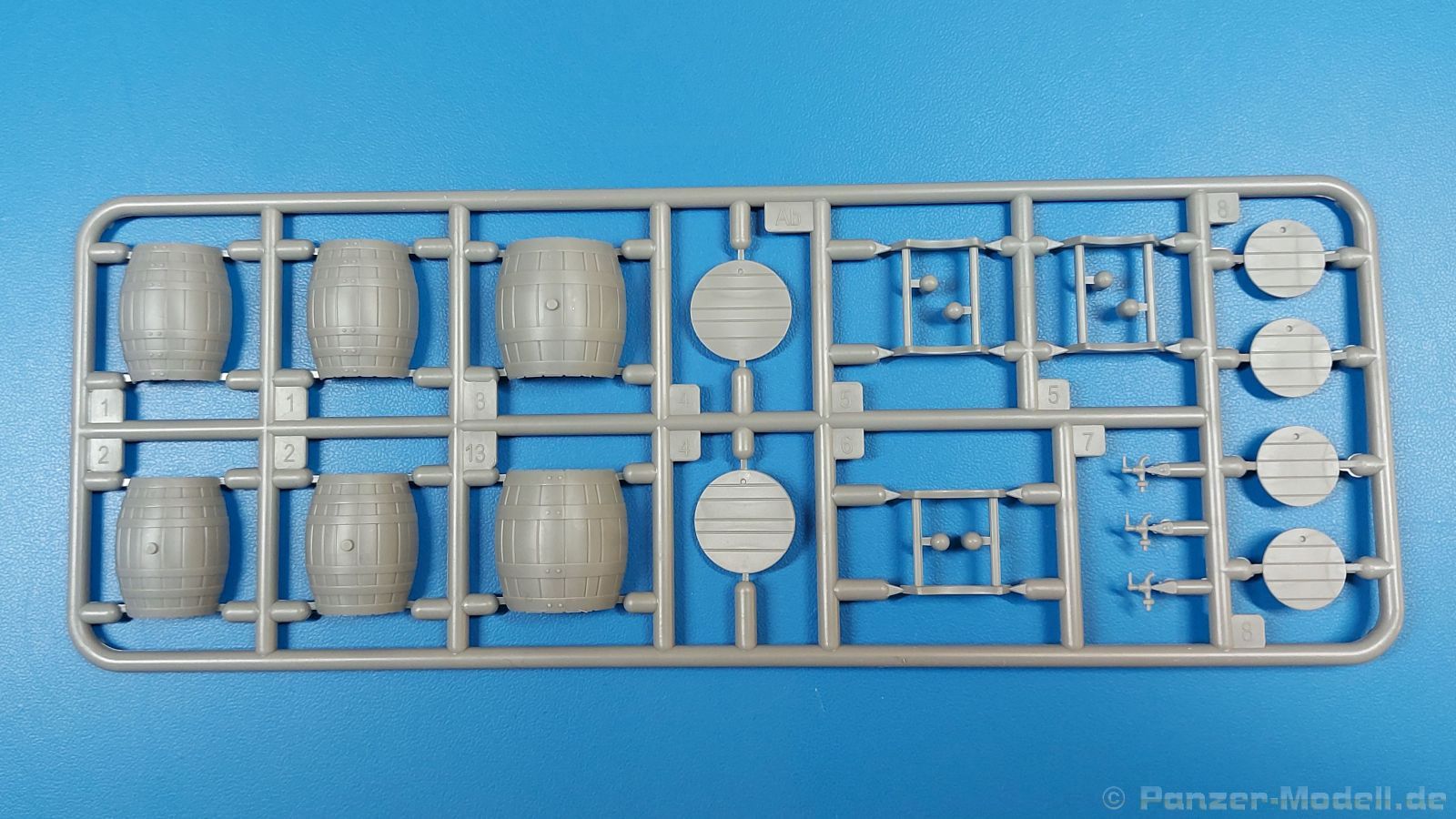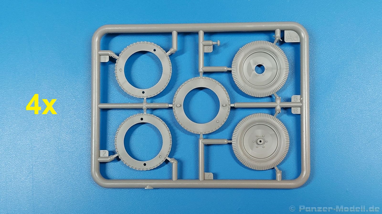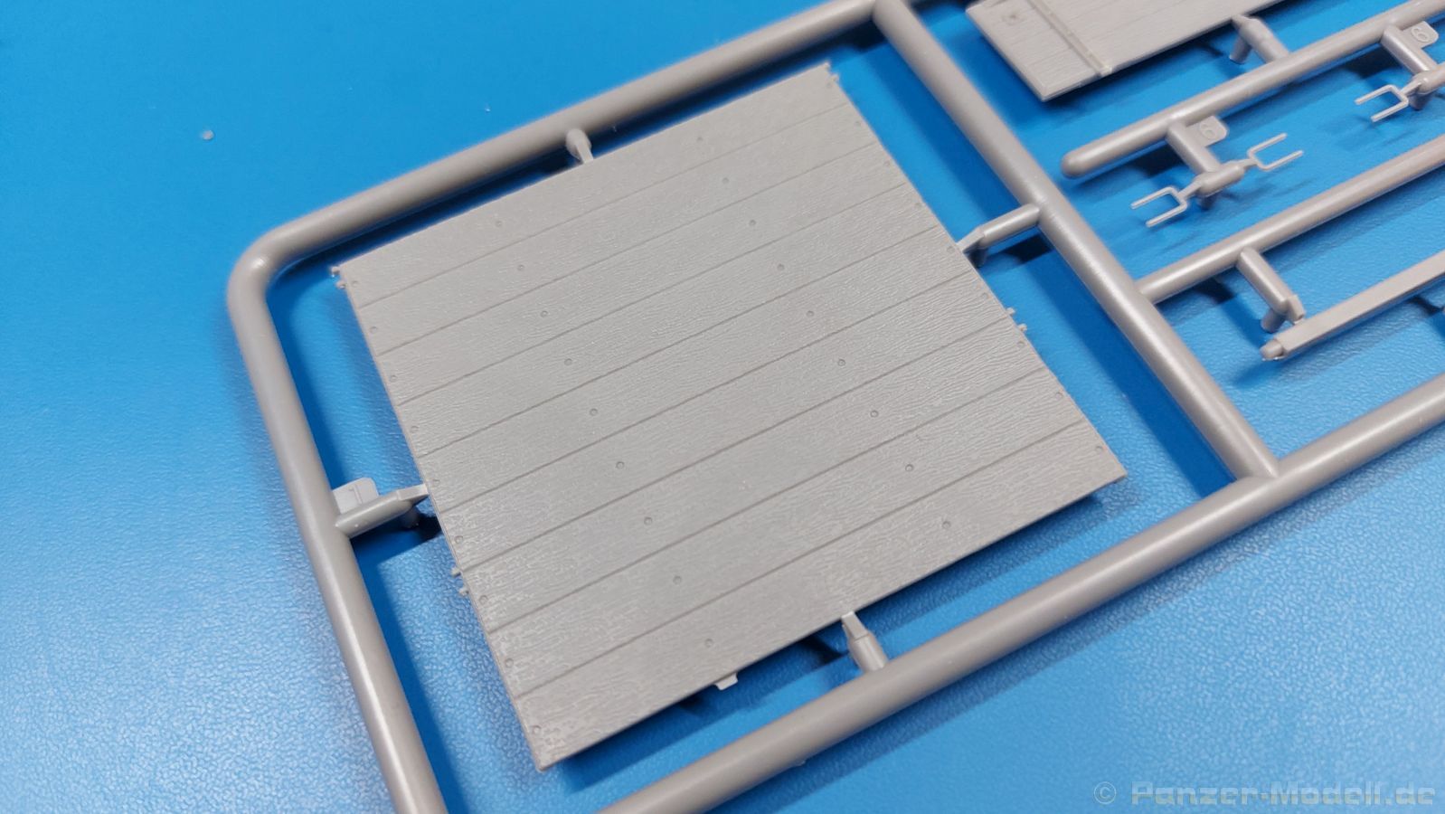 Das Original: Der Bulldog war eigentlich ein für den Einzylinder Glühkopfmotor, mit dem Säge-, Mühlen-, Steinbrecher- und Dreschmaschinen angetrieben wurden, bis man entdeckte, dass sich der Motor auch für Ackerschlepper eignet. Der Schlepper der Firma Lanz mit der Bezeichnung D8506, auch Ackerluft-Bulldog genannt, wurde zwischen 1934 und 1955 hergestellt und wog über 3 Tonnen. Sein 10 Liter Motor mit 30 bzw. 35 PS (22kW/25,6 kW) konnte ihn bis 17,7 km/h beschleunigen. Unter anderem kann er mit Gasöl, Schweröl, Diesel, Petroleum und Pflanzenöl betrieben werden (Vielstoffmotor). In der Landwirtschaft eingesetzt wurde er zum Ziehen von Lasten und bedienen landwirtschaftlicher Geräte eingesetzt, aber auch die Wehrmacht hat ihn genutzt. Der Bausatz: Von der ukrainischen Firma MiniArt gibt es inzwischen etliche Modelle des Lanz Bulldog in 1:35, teils solo, teils mit Anhänger, die sich z.B. in der Bereifung, der Auslegung der Luftansaugung oder der Auspuffanlage unterscheiden. Der 385 x 240 x 60 mm große Stülpdeckelkarton enthält in eine Klarsichttüte verpackt für… · den Traktor: 9 hellgraue, 1 Klarsichtspritzling, 2 Plastikreifen, 1 PE-Platine MiniArt bietet gute Qualität! Man erblickt sauber gespritzte und filigrane Teile. Verzug oder Versatz konnte ich nicht entdecken. Es gibt etwas feinen Grat, wie z.B. auf den Laufflächen der großen Traktorhinterreifen, aber der verschwindet, sobald er das Bastelmesser sieht. Die Auswerfer sind fast ausnahmslos auf die Spritzrahmen gesetzt, so dass die Teile so gut wie keine Spuren davon aufweisen, bzw. nur an Stellen, die nach dem Zusammenbau nicht mehr zu sehen sind. Da der Bulldog in rahmenloser Blockbauweise hergestellt wurde, gibt es große Teile für den Block, der Motor, Getriebe und Hinterachse aufnimmt. So einige Wartungsdeckel mit ihrer prominenten Verschraubung sind bereits angegossen. Es gibt auch einige Kleinteile, die aufgebohrt werden müssen, wenn man die außenliegenden (Kraftstoff? Öl?) Leitungen, die aus Draht selbst hergestellt werden müssten, anbringen möchte. Auffällig ist der Glühkopf, der mit PEs und einer Sechskantmutter weiter detailliert wird. Am Heck gibt es noch eine einfache Anhängekupplung. Der Einsteckbolzen, um den beiliegenden Anhänger anzuhängen, ist bereits mit eingegossen. Da muss man dann improvisieren. Außenliegende Gestänge und Federn liegen als separate Teile bei. Die Motorhaube besteht aus Front-, Rücken-, Seitenteilen und der oberen Abdeckung, die noch 3 Wartungsdeckel erhält. Die Seitenteile wiesen eine sehr schöne Gitterstruktur und Schraubenköpfe im Kühlerbereich auf beiden Seiten auf. Am Rückenteil ist diesmal der Rahmen für die Windschutzscheibe bereits angegossen. Er bekommt noch kleine Seitenflügel. Die Scheibe selbst ist aus kristallklarem Klarsichtmaterial. Einen Scheibenwischer aus PE gibt es auch noch. Natürlich bekommt die Front das Lanz Bulldog PE, das genügend Tiefe hat, dass man die Buchstaben und den Rand leicht anmalen kann. Der D 8506 hat den hochaufragenden Luftansaugstutzen an der linken Seite, der an Teil Eb12 anschließt. Da auch das Seitenteil für die Version ohne den Stutzen dabei ist, darauf achten, dass man nichts verwechselt! Interessant wird auch die Plattform für den Fahrer. Das Riffelblech ist sehr gut dargestellt, aber… es gibt nur ein Pedal, das Kupplungspedal! Keine Angst MiniArt ist da kein Fehler unterlaufen, denn gemäß meiner kurzen Recherche wird dieser Bulldog wohl mit dem Handbremshebel links vom Fahrersitz gebremst und auch festgestellt. Zum Beschleunigen gibt es einen Handgashebel, der an der rechten Seite der Plattform angebracht wird. Der Schalthebel mit Kugelknauf für 3 Vorwärts- und 1 Rückwärtsgang ist natürlich auch dabei. Der Fahrer hat einen schönen, gelochten Schalensitz mit einfacher Rückenlehne. Der Sitz ist mit einem Blechstreifen an der Plattform angebracht und sitzt auf einer Feder auf. Lenkstange und -rad sind zwar dabei, werden aber unter bestimmten Umständen weggelassen. Mehr dazu später. Unter der Plattform wird noch ein Staukasten angebracht, dessen Deckel einen schönen Flügelmutterverschluss zeigt. Die hinteren, sehr ausladenden Kotflügel bilden gleichzeitig hinten offene Seitenwände für den Fahrer. Auf die Kotflügel kommen Rücklichter mit klaren Gläsern und weiteres PE-Gestänge sichert die Kotflügel nach vorn. Innen werden zwei Stützstangen für das Dach angebracht. Das Dach ist auch innen struktiert. Am Gestänge der Kotflügel wird eine hinten querliegende, gelochte Traverse angebracht, die zur Aufnahme von landwirtschaftlichen Gerätschaften dient. Die Vorderachse besteht aus dem Querträger, den Gelenkköpfen, Lenkgestänge und Stabilisatoren. Gemäß dem Aufbau der Teile ist ein möglicher Lenkeinschlag nicht vorgesehen. Auch eine kleinere Anhängevorrichtung mit angegossenem Kupplungsbolzen gibt es. An der linken Seite wird der große Luftansaugstutzen mit Regenschutz und der noch größere Auspuff angebracht. Der Auspuff kommt diesmal ohne PE-Schelle aus. Das Endrohr ist einige Millimeter ausgehöhlt. Die Hinterräder haben beim D 8506 Gummireifen, die am Modell aus Felgeninnen- und Außenseiten mit angegossenen Reifenflanken, die wiederum einen Teil des Profils darstellen und separaten Laufflächen mit dem Rest des groben Profils. Die Vorderräder setzen sich aus je 5 Teilen zusammen, drei Scheiben, die durch ihre Form gut die Profiltiefe wiedergeben und wie bei den Hinterrädern Felgeninnen- und Außenseiten mit angegossenen Reifenflanken. Alle Reifenflanken tragen in erhabenen Buchstaben den Herstellernamen Continental und die Reifengrößen. Auch die Vorderräder bekommen viertelkreisförmige Kotflügel, die an zwei querliegenden Stangen angebracht werden. Auf die Kotflügel klebt man eine weitere Querstange, die die ausgehöhlten Scheinwerfer mit innenliegenden Leuchtkörpern beinhalten. Fein geriffelte Klarsichtscheiben schließen die Schweinwerfer. Links und rechts zwische