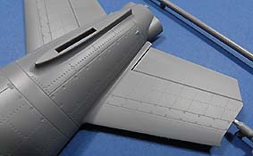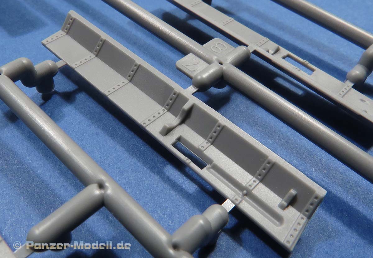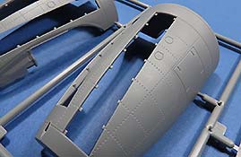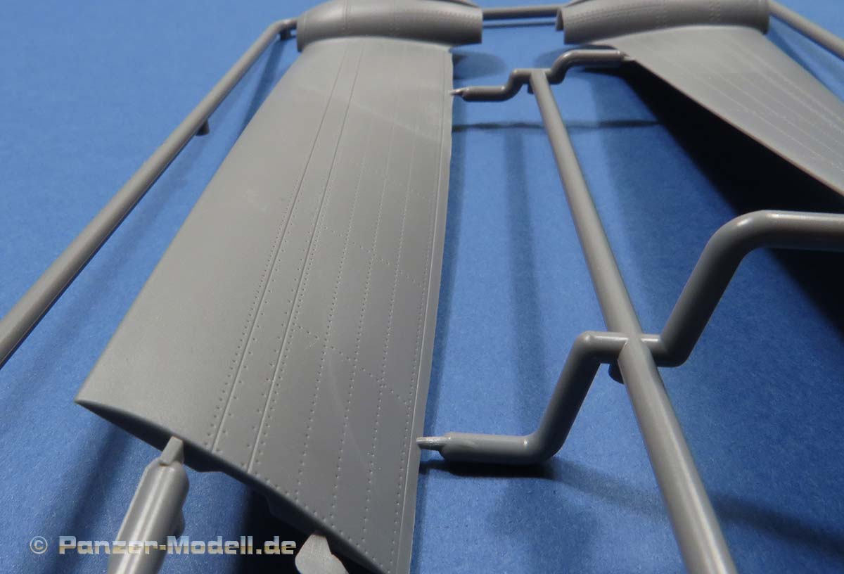 Der Rest der Oberflächenstrukturen ist phänomenal fein detailliert mit hunderten von Nieten, sauber und fein dargestellt. Die Rumpfteile seitzen sich aus jeweils zwei Halbschalen zusammen.