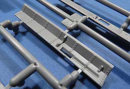 An den vier Flügelenden des Heckleitwerks lassen sich 4 Stützräder anbauen, entweder offen für den Bodendienst oder eingefahren und verschlossen während des Flugs - das kann der Modellbauer entsprechend wählen und anbauen.