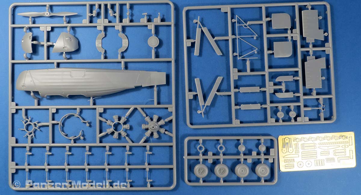 Dieser Tragschrauber von Focke Wulf stellt den Lizenzbau des Cierva C.30A dar, wobei die hier dargestellte frühe Version die beiden Eprobungsmuster darstellen, die das Deutsche Reich 1934 von Avro geliefert bekam und bei der E-Stelle Rechlin erprobt wurden. Im Bausatz finden wir 8 graue und einem klaren Spritzling. Die Qualität ist gut, saubere und feine Details, kein Vezug oder Spritzfehler und Auswerfermarken an später sichtbaren Stellen und Fischhaut sucht man hier vergebens. Es liegt eine Ätzteilplatine zur Verfeinerung bei, diese beinhaltet diverse Bauteile (Gurte, Hebel, Griffe etc.) Die Gravuren des Modells sind sehr schön ausgeführt und überzeugen auf ganzer Linie. Die Oberflächen sind hervorragend dargestellt, hier sind besonders die Rumpfseiten und die gewinkelten Höhenruder genannt bei denen die Struktur des Rahmens schön deutlich dargestellt ist. Der Rumpf selber setzt sich aus zwei Halbteilen zusammen, die horizontal getrennt sind. Das Modell enthält eine komplette Darstellung des Sternmotors, der sihr fein detailliert und sogar duch feien PE Teilchen weiter verfeinert , dargestellt ist. Die Bauanleitung führt in 26 Schritten zum fertigen Modell, diese zeigen sich im typischen sehr übersichtlichen Miniart 3D Stil. In der Bauanleitung finden sich die Bemalungs- und Markierungsanleitungen auf DIN A4 im Hochglanz Farbdruck für die beiden ausgelieferten Exemplare.