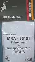 Wer den TPz Fuchs von Revell sein eigen nennt, der wird das Problem kennen - eine schöne große Frontscheibe, aber dahinter nur gähnende Leere. Abhilfe schafft hier der Zurüstsatz MRA-35101 von MR Modellbau - der Fahrerraum für den Fuchs.