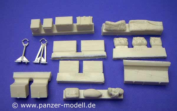 Als kleinen Bonus legt MR noch je eine frühe und späte Version der Rohrverzurrung als Zinnteile bei. Die übrigen Teile sind - wie heute bereits mehrfach erwähnt - sehr sauber aus beigem Resin gegossen bieten keinen Grund zur Klage.