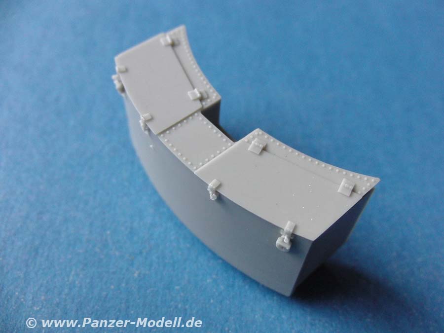 Die Staukiste ist ebenfalls sauber und detailliert gegossen und stellt die besondere Art der Kiste dar, die an den Tigern in den Kämpfen bei kursk angebracht war.