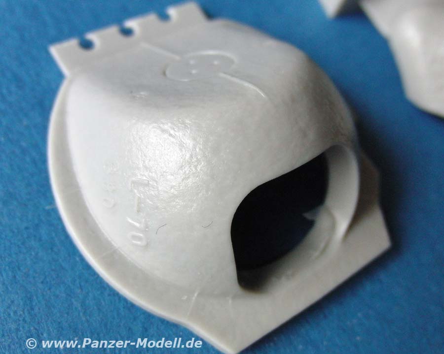 Im Set enthalten sind 2 Resinteile, die die Kanonenblende und Kanonenaufnahme der Jagdpanzer IV L/70 darstellen - wobei nicht vermerkt ist ob die (A) oder (V). Die Kanonenaufnahme sieht aber deutlich nach der der IV L/70 (V) aus.