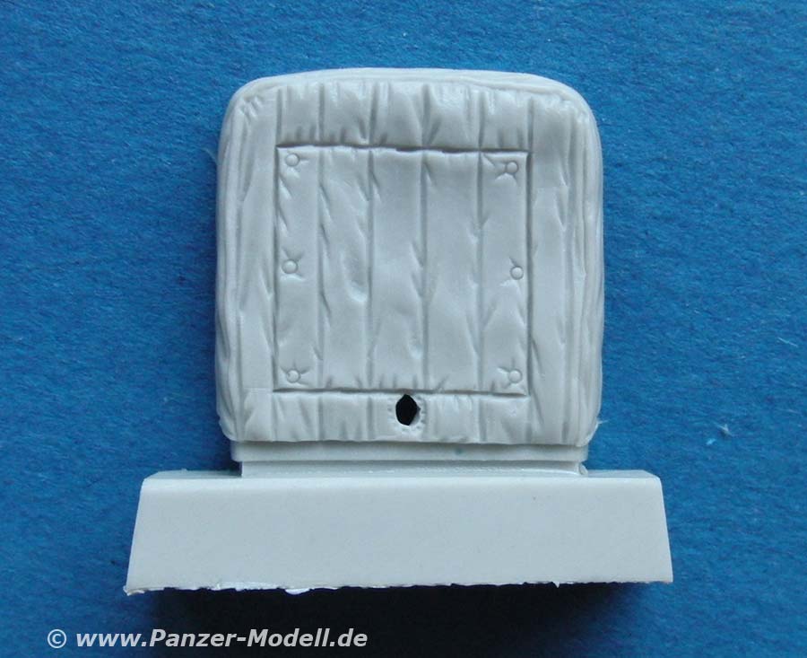 Der Guss ist wie gewohnt sehr gut und die Details sehr schön herausgearbeitet. Dabei gibt es Nahtrillen und kleinere Fältchen zu sehen, wie auch den sehr schön dargestellten eingeknöpften Einsatz, der Zugang zur Kühlermaske ermöglicht. Selbst die kleinen Knöpfe sind sehr gut und fein dargestellt.