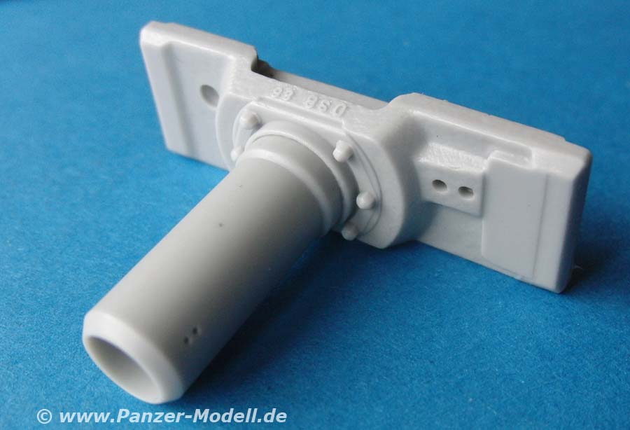 Dieses Resinteil kommt tatsächlich ohne Anguss aus und stellt die verstärkte Tiger I Kanonenblende in einem Stück dar.