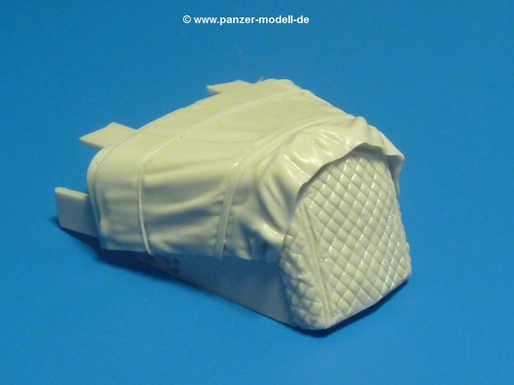 Von der Firma Panzer Art gibt es nun diese Abdeckung aus hellgrauem Resin. Das aus einem Stück gegossene Teil ist blasen- und fehlerfrei. Die Angüsse lassen sich leicht entfernen und sitzen zudem an Stellen, die nach Anbau nicht mehr sichtbar sind.