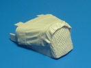 Die Kühlerabdeckung zeigt ein schönes Steppmuster, die Plane einen tollen Faltenwurf und Befestigungsgurt, bzw. -seil. Es gibt keine Montageanleitung, aber von der Ansicht her wird das Teil wohl die oberen Motorhaubenklappen, sowie den Kühlergrill am Originalbausatz ersetzen.