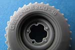 Im Set finden sich 5 Resinteile, das die vier Reifen und einen Ersatzreifen mit Geländeprofil für den Schwimmwagen enthalten.