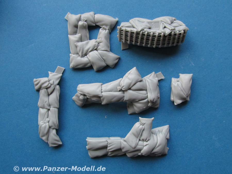 Dieses Set beinhaltet sechs Resinteile für die Sandsackabdeckungen für Panzer III im Afrika Einsatz.