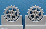 Im Blsiterpack finden wir 2 Resinteile der Treibradteile in einem halbkreisförmiten Anguss, der dann an die Zahnspitzen läuft - dies sollte recht einfach zu versäubern sein.