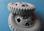 Der Guss ist fantastisch, ohne Luftbasen, Ausflüsse oder Formfehlern. Feine Fischhaut Reste finden sich in den Aussparungen der Felgen, sind mit einem Bastelmesser in Nullkommanix verschwunden. Die Reifen teilen sich in die beiden Frontreifen und dann vier Reifen für die Hinterachs-Doppelbereifung auf.