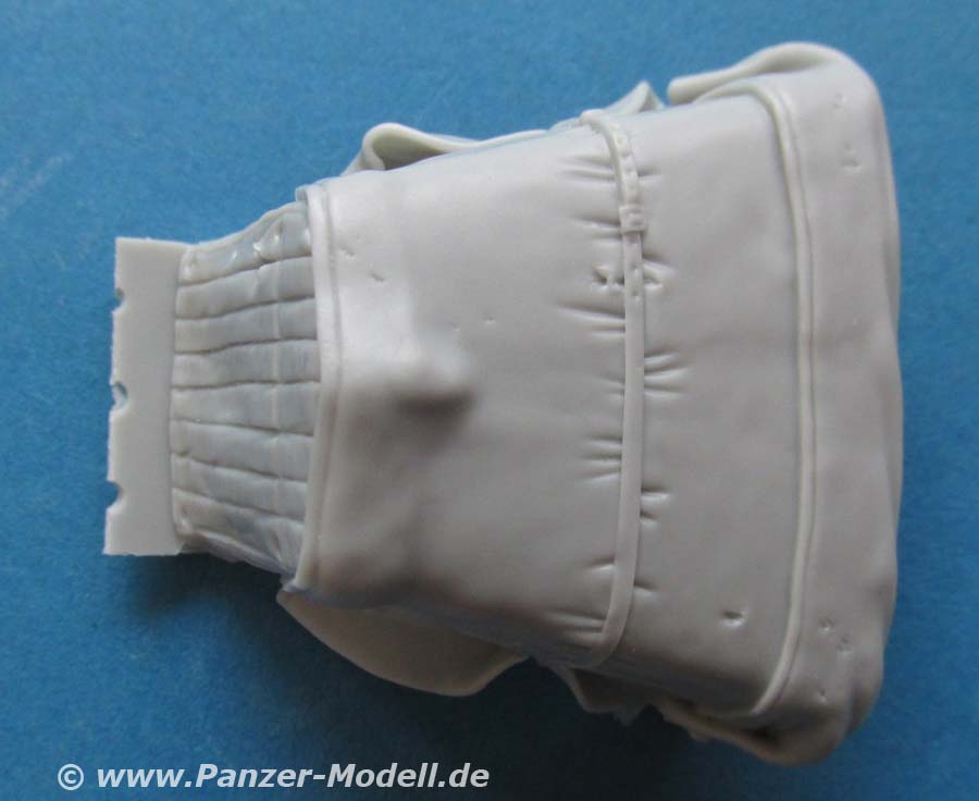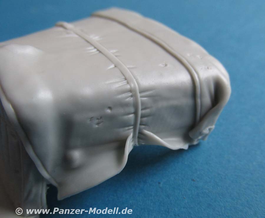 Der Guss des Bauteils ist phänomenal - wenn nicht gar genial! Wie gesagt in einem Stück gegossen, völlig luftblasen- und verzugsfrei. Ein Kleiner Anguss vorn an der Unterseite und die Darstellung der abdeckplane und des Kühlerschutzes sind einfach der Hammer. Geniale Details mit so vielen Feinheiten, Zurrgurt mit Schnalle, Kleine Knöpfe und ein realistischer Faltenwurf sowie eine Darstellung des Kühlerschutzes, dass man das weichematerial wirklich erahnt und nicht steif und unwirklich wie man es bei anderen Herstellern für solche Materialien kennt. Einfach grandios.