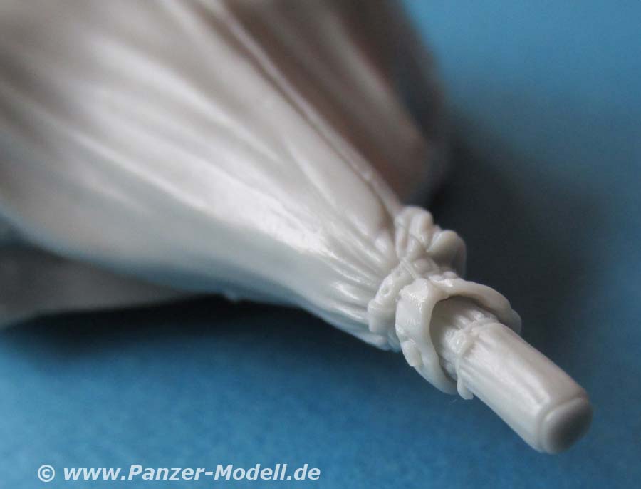 Im Bausatzkarton finden wir ein einzelnes Resinteil, das direkt den Bausatzturm ersetzt und dazu diesen abgedeckt mit Zeltplanen darstellt.