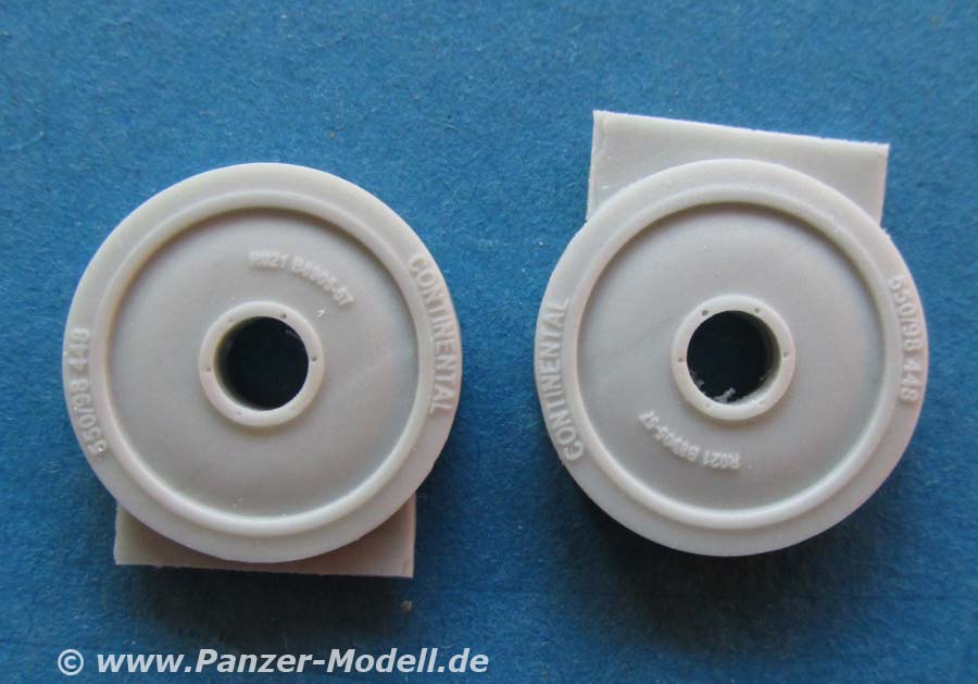 Der Guss det Bauteile ist sehr gut! In einem Stück gegossen, völlig luftblasenfrei und nur ein relativ kleiner Anguss auf der Rückseite, sodass die Versäuberung recht gut und einfach gehen sollte. Tolle Details mit Feinheiten der Gummierung mit sensationellen Herstelleraufdrucken.