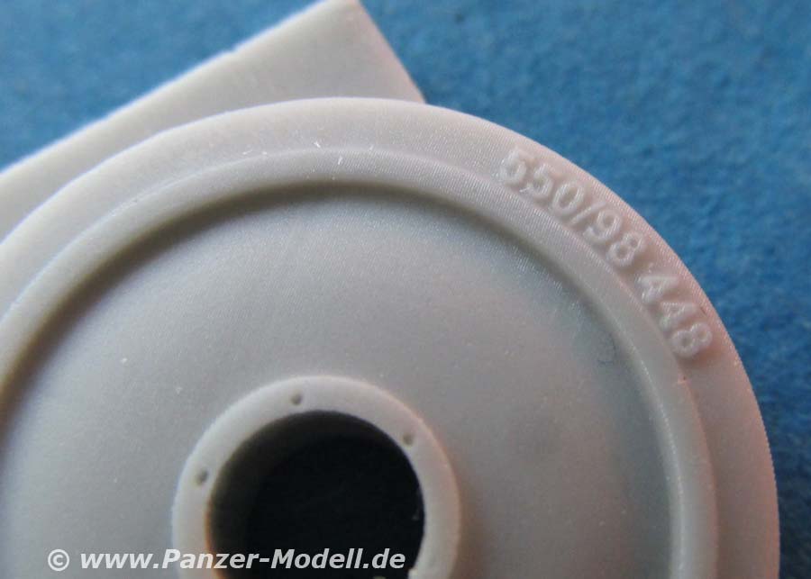 Die Felfen sind mit leerer Radaufnahme in der Felge dargestellt, wie es für Ersatzlaufrollen korrekt ist und auf einem Panzer einen schönen Hinkucker bietet.