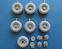 Im Karton finden wir 13 Resinteile für die Bereifung, Ersatzreifen und die Bremstrommeln.