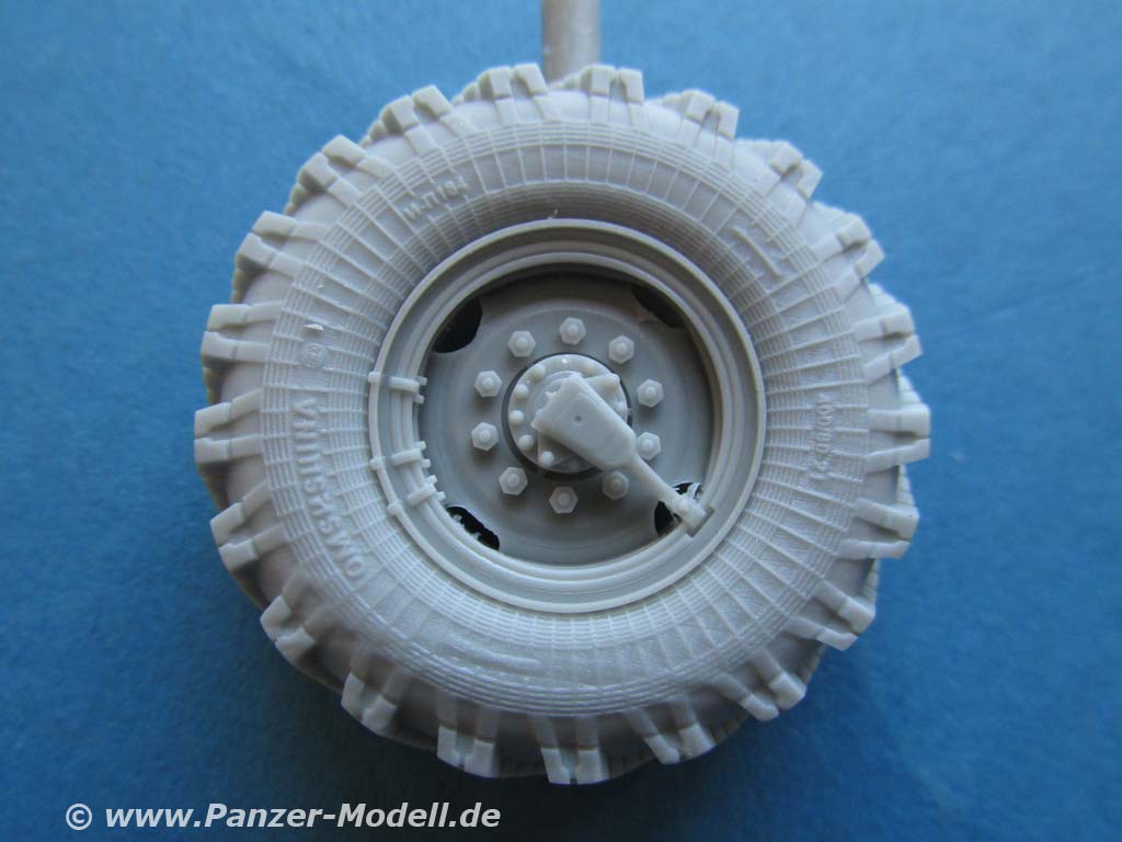 Der Guss ist ausgezeichnet mit feinen Details, insbesondere die guten Herstelleraufdrucke auf den Reifenflanken in kyrillischer Schrift und natürlich das sauber dargestellte, grobstollige Reifenprofil.