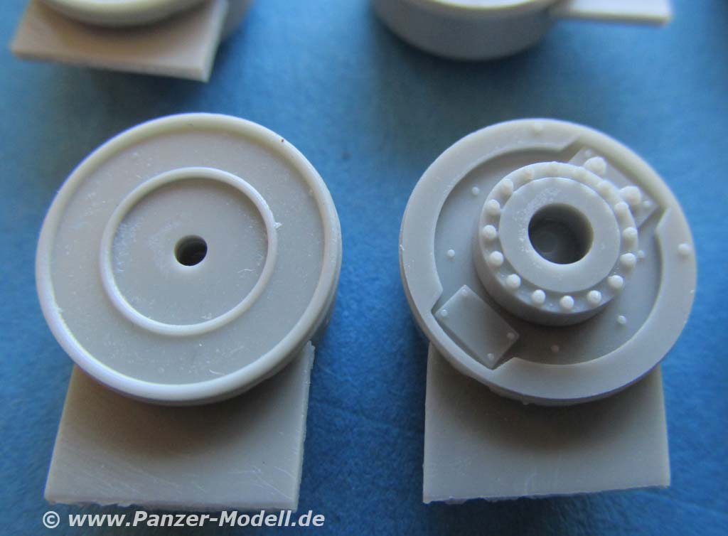 Die Angüsse sind recht human mit einem kleinen Anguss auf den Laufflächen, der schnell versäubert ist - die Bremstrommeln sitzen an einem etwas stärkeren Anguss.