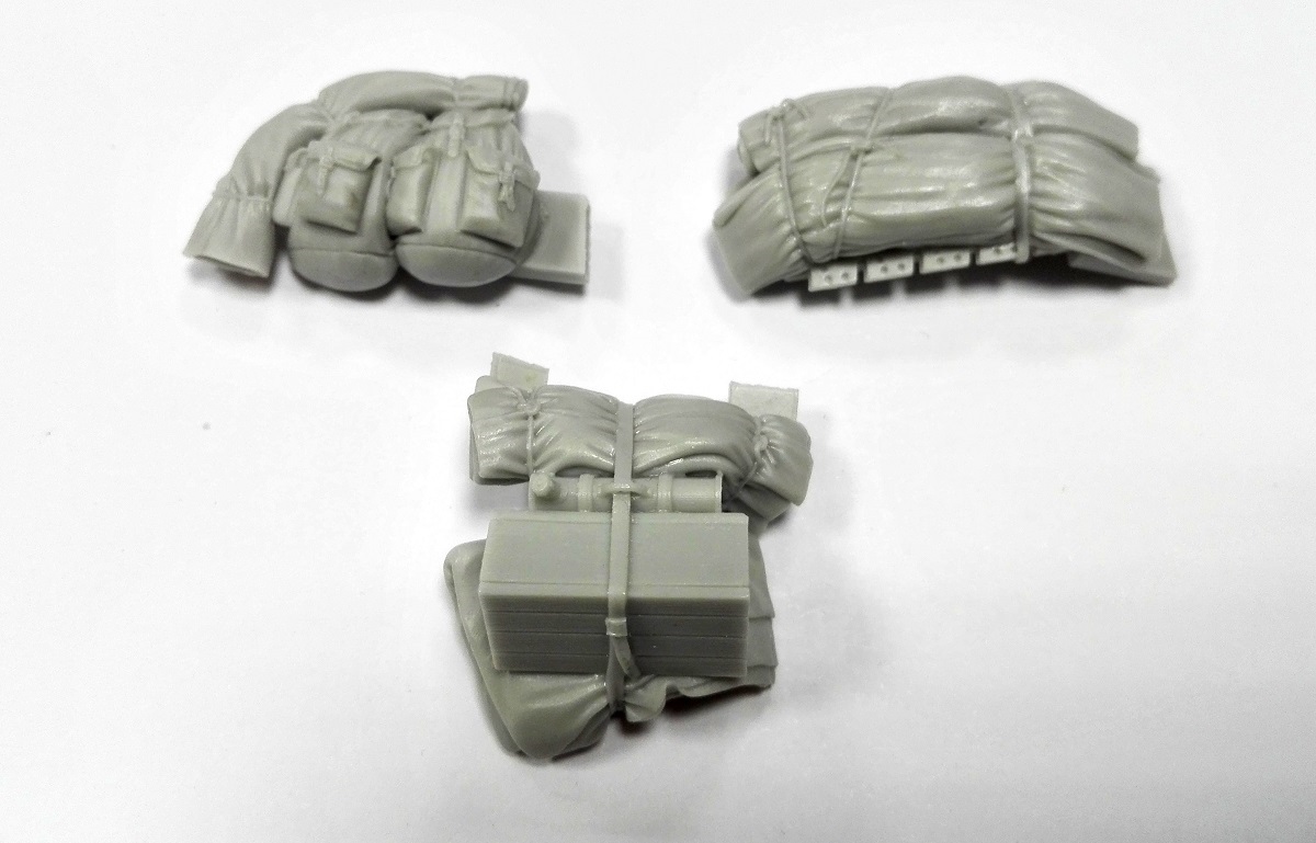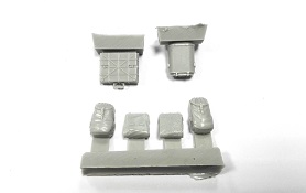 Als Anhalt für die Anbringung der Einzelteile am Fahrzeug dient leider nur das Deckelbild auf dem kleinen Karton, denn eine Bauanleitung fehlt. Als Alternative kann man aber auch die Internetseite des Herstellers aufsuchen, dort finden sich größere Fotos in verschiedenen Ansichten. Die Fertigungsqualität der Bauteile wirkt sehr gut. Saubere und scharfkantige Details, keine Lufteinschlüsse und relativ kleine Angüsse. Das wird heutzutage auch von den Modellbauern erwartet. Leider war bei meinem Musterbausatz einer der sehr filigranen Handgriffe für die Benzinkanister abgebrochen. Insgesamt gesehen ist das ein schönes Set um das Modell optisch aufzuwerten und ihm seine persönliche Note zu verleihen. Man muss auch nicht zwingend alle Bauteile für ein Fahrzeug verwenden, man könnte ja auch weitere Modelle damit ausstatten oder gar einen Teil der Gegenstände für andere Fahrzeuge nutzen.