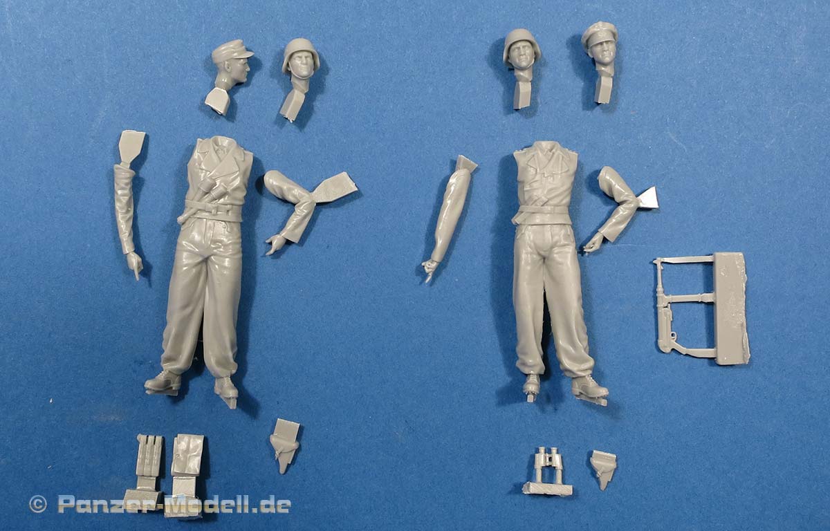 In der Kartonbox finden wir 16 Resinteile zum Bau von zwei Figuren. Diese stellen zwei Panzerbesatzungssoldaten dar.