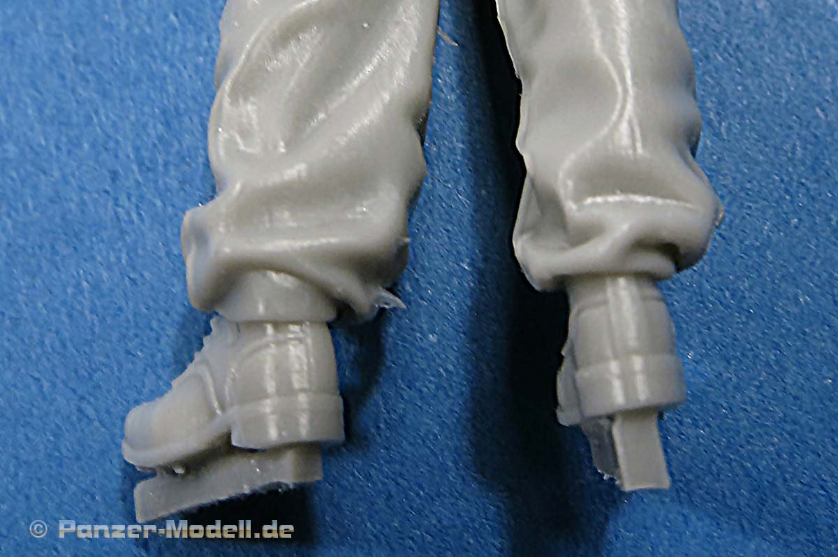 Wie schon gesagt sind die Uniformen der Panzertruppe mit Details und Faltenwurf recht realistisch. Die Details wie die Kragen, Knöpfe, Taschen, Gürtel, usw. sind sehr gut und scharf dargestellt und gegossen. Die eine Figur hat zudem eine Stielhandgranate vorn in den Gürtel eingesteckt - optisch sehr ansprechend und schon direkt mit angegossen.