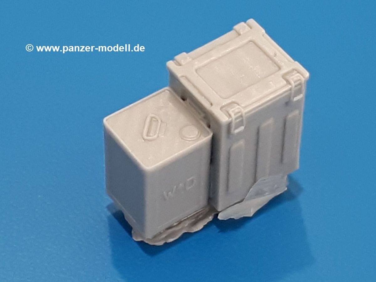 Letztes Jahr hat PanzerArt begonnen, auch Figuren und Figurensätze zu produzieren. Heute schauen wir uns mal den Satz von 2 britischen Offizieren der königlichen gepanzerten Verbände (Royal Armoured Corps) in Nordafrika an. Beide Figuren sind auch einzeln unter den Nummern FI35-024 und FI35-025 erhältlich. Im Karton finden wir 2 Figuren mit je 2 verschiedenen Köpfen und 2 Armen. Dazu kommen eine metallene Munitionskiste und ein Kanister, die beide zusammengegossen sind. Der Guss ist extrem fein. Angüsse sind minimal gehalten und befinden sich an taktisch geschickten Stellen wie den Schuhsohlen. Blasen konnte ich keine entdecken. An einem Kopf befindet sich etwas Gussgrat am Hals, der sich aber problemlos beseitigen lässt. Beide Soldaten tragen Sommeruniformen mit kurzen Hosen, einer mit hochgekrempelten Ärmeln, der andere trägt über dem Hemd einen Pullover mit langen Ärmeln. Die weiten Hosenbeine sind unten ausgehöhlt, was den Realitätsgrat sehr erhöht. Der Faltenwurf der Uniform ist sehr natürlich. Schnürschuhe, Gamaschen, Strümpfe und Koppel überzeugen mit schöner Struktur. Beide tragen eine Pistolentasche am Koppel. Die Finger der Hände sind echte Hingucker - Länge, Dicke, Feinheit - einfach toll! Bei jeder Figur hat man die Wahl zwischen 2 Köpfen, einen nur mit Barett, der andere mit Barett und auf die Stirn hochgeschobener Schutzbrille. Die Gesichter sind natürlich. Die Ohren wurden sehr schön herausgearbeitet. Die Unterschiede der Figuren offenbaren sich in der Haltung. Während der eine im Pullover aufrecht steht, mit der linken Hand ein großes Kartenbrett abstützt und mit der rechten Hand eine imaginäre Karte oder Dokumente auf dem Brett hält, hat der andere den linken Fuß auf dem Kanister abgestellt, die rechte Hand an der Pistolentasche hat und sich mit der linken Hand auf dem Knie abstützt. Selbst das Kartenbrett weist noch weitere Details auf wie eine Stoffleiste zum Einstecken von Stiften. Der Kanister ist mit erhabenen Buchstaben WD (War Department) mit einem nach oben zeigenden Pfeil zwischen den Buchstaben auf 2 Seiten gekennzeichnet, besitzt eine sehr feinen, abgeklappten Griff auf der Oberseite und einen etwas flachen Ausgussstutzen. An den Kanister angegossen ist eine etwas größere, metallene Munitionskiste mit Versteifungsrippen und extrem detaillierten Scharnieren und Verschlüssen. Eine sehr überzeugende Arbeit von PanzerArt. Das Set ist eine Bereicherung für jedes britische Afrika Diorama (Italien geht vielleicht auch noch). Wenn die Figuren auch einzeln erhältlich sind, so sind sie im Set etwas günstiger. Für ca. 22-25 EUR kann man das Set im deutschen Handel erhalten.