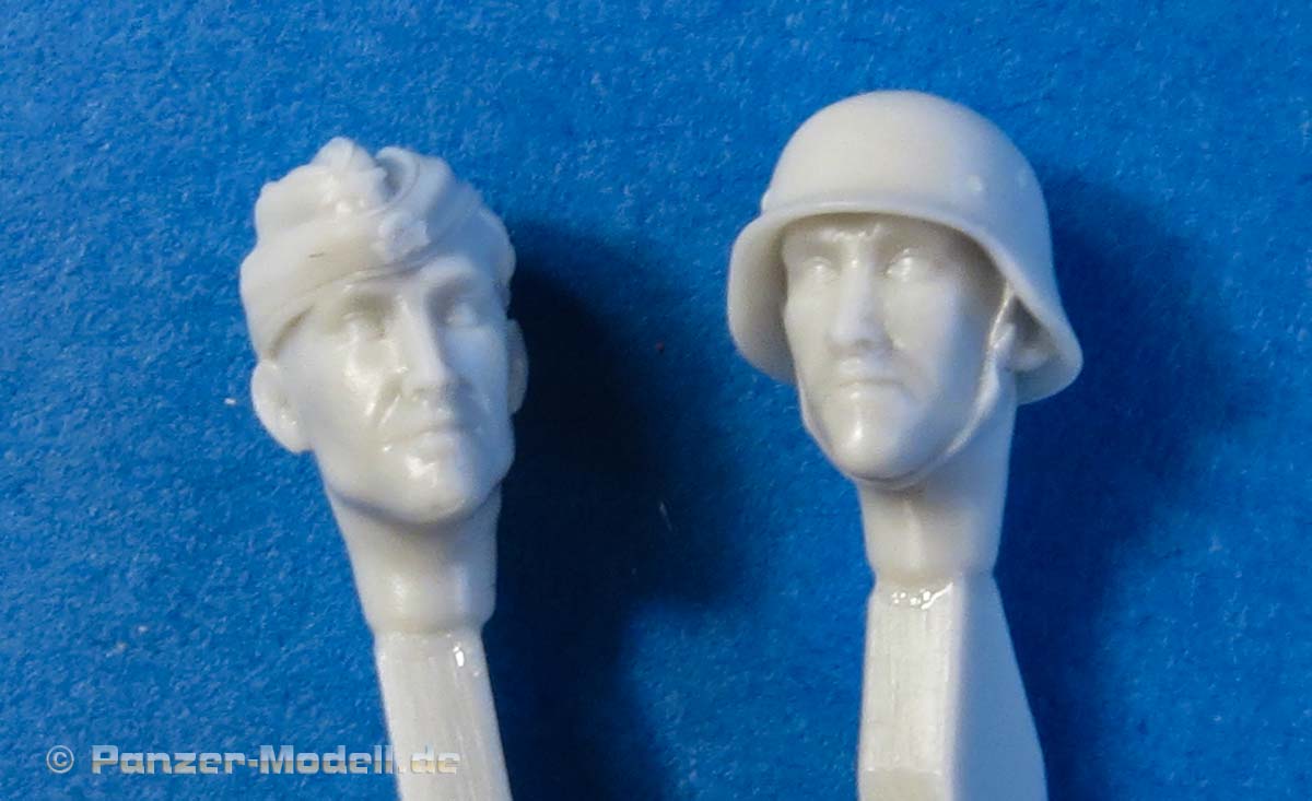 Die Köpfe sind sehr gut - schon die Auswahl aus zwei Köpfen und dann noch in dieser ausgezeichneten Qualität ist wirklich gelungen. Beide Köpfe sind jeweils einmal mit Stahlhelm und einmal mit Schiffchen gegossen. Und auch die Darstellung der Gesichter ist recht realistisch detailliert gelungen.