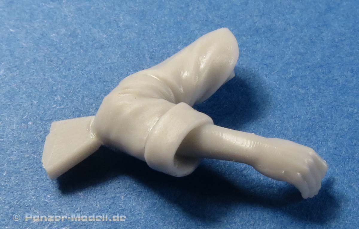 Sehr schön ist auch die Haltung der beiden Arme und Hände, gerade der lang hängende Arm an dem der beiliegende (und auch sehr fein gegossenene) 20l Kanister angebracht wird.