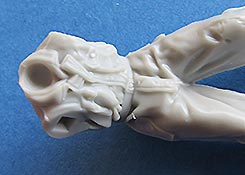 Die Körper sind im Groben in einem Teil gegossen - es müssen an den Figuren jeweils beide Arme und einer der beiden Köpfe angeklebt werden. Hier sei vielleicht mal erwähnt, dass Panzerart hier sehr gute und exakt passende, rechteckige Passstifte und entsprechende Aufnahmen in Arm und Körper hat wodurch der Arm exakt in der richtigen Position angebracht werden kann und auch sehr gut hält.