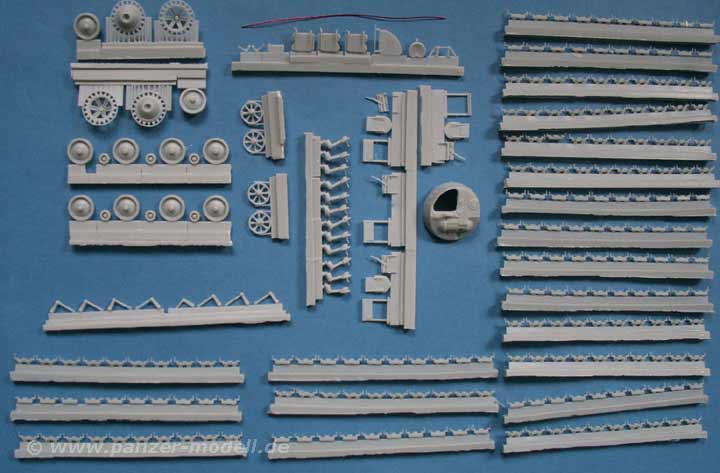 Der Bausatz umfasst etwa 300 Bauteile aus Resin von denen 200 auf die Einzelgliedkette entfallen.
