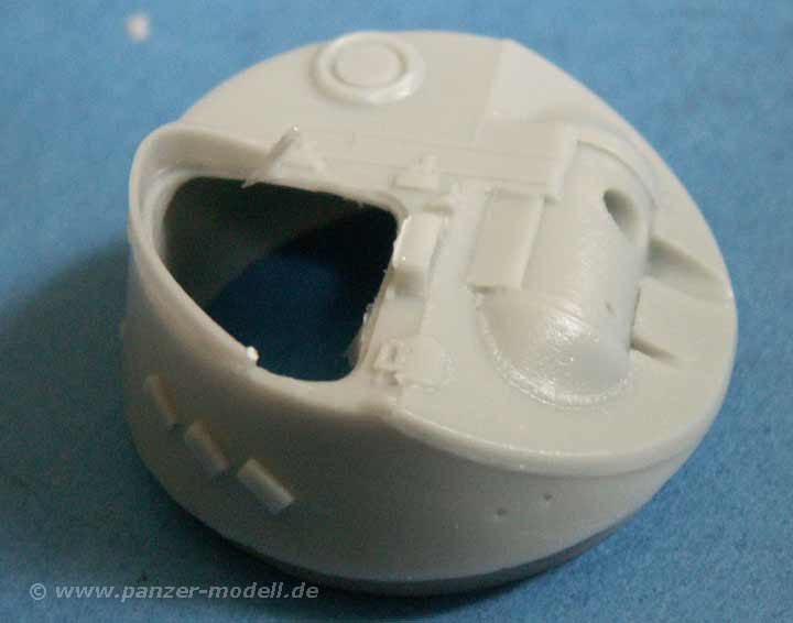 Die Bordkanone ist hier noch als Resinteil ausgeführt, wird aber ab sofort in allen Bausätzen als Metallrohr von Schatton ausgeliefert!!