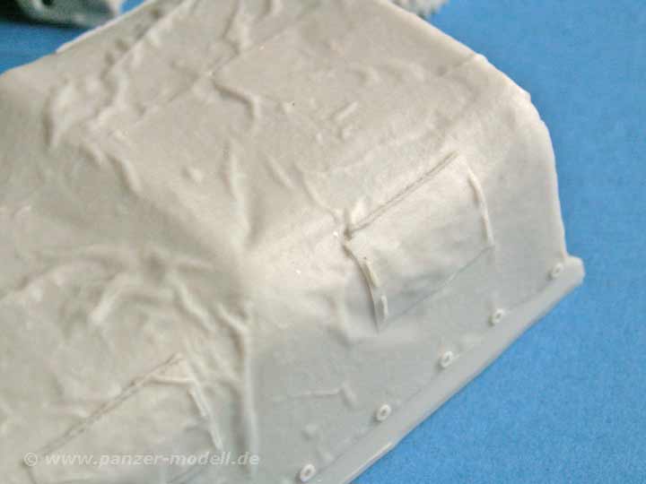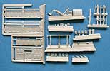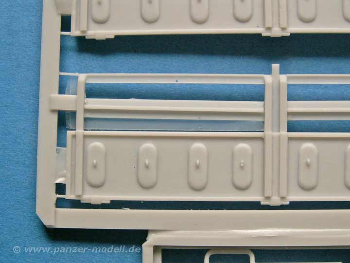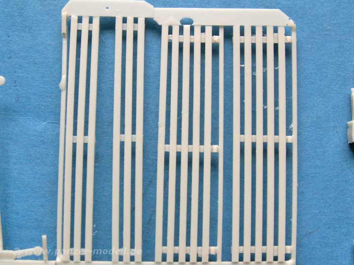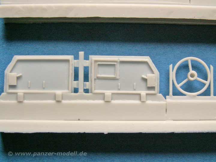 WIe bereits erwähnt ist die Gussqualität sehr gut udn auch die Detailierung der Teile - die Ladefläche ist mit schönem Holzmuster versehen, die Sitzbänke für die Ladefläche sind schön filigran gearbeitet, die Pritschenwände sind mit dem korrekten Walzblechprofil dargestellt, die Planen sind meines Erachtens sehr gut gemacht mit kleinen Falten und den verdeckten Planenfenstern. Der Rahmen ist im gut dargestellten U-Profil gestaltet, das Fahrerhaus ist mit schönen Sitzen, sowie den nötigen Hebeln und Armaturen ausgestattet. So könnte man die Liste endlos fortsetzen, denn die Teile wissen allesamt zu gefallen. Die Angüssen sind logisch angebracht und fast immer gut zu entfernen - wer eine Dremel mit Trennscheibe hat, ist hier klar im Vorteil.