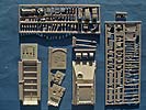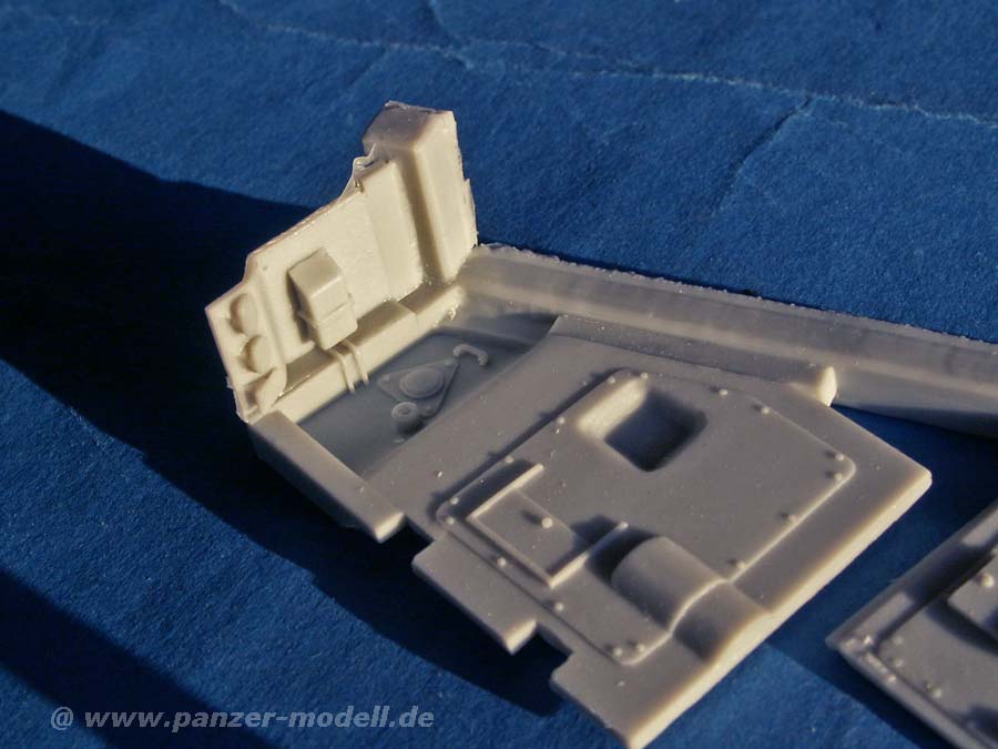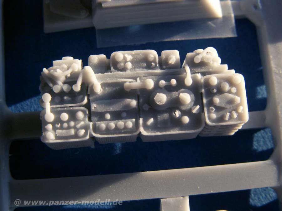 Die Resinteile sind von sehr guter Qualität und Detailierung. Die Angüsse sind gut gewählt und lassen sich oft leicht entfernen, bzw. sind an Großteilen bereits entfernt. Erfreulich ist auch hier wieder die komplette Inneneinrichtung in bestechend guter Qualität.