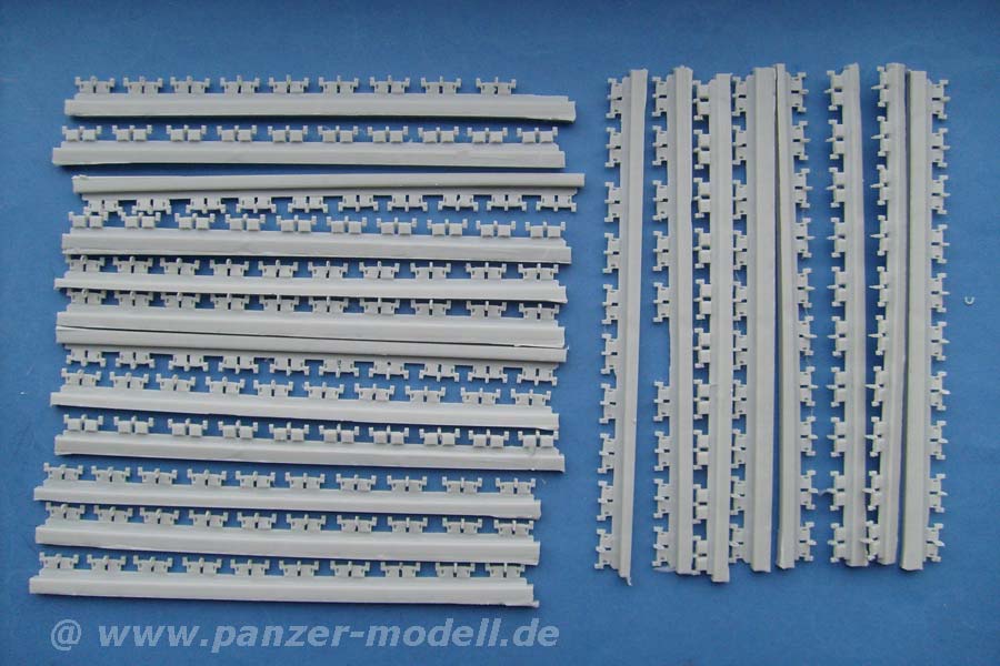 Immer 10 Kettenglieder sind an einem Angussast dran. Der Guss ist super und nur an wenigen Führungszähnen finden sich Fischhäute die zu versäubern wären.