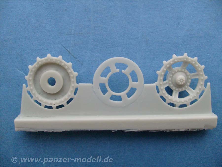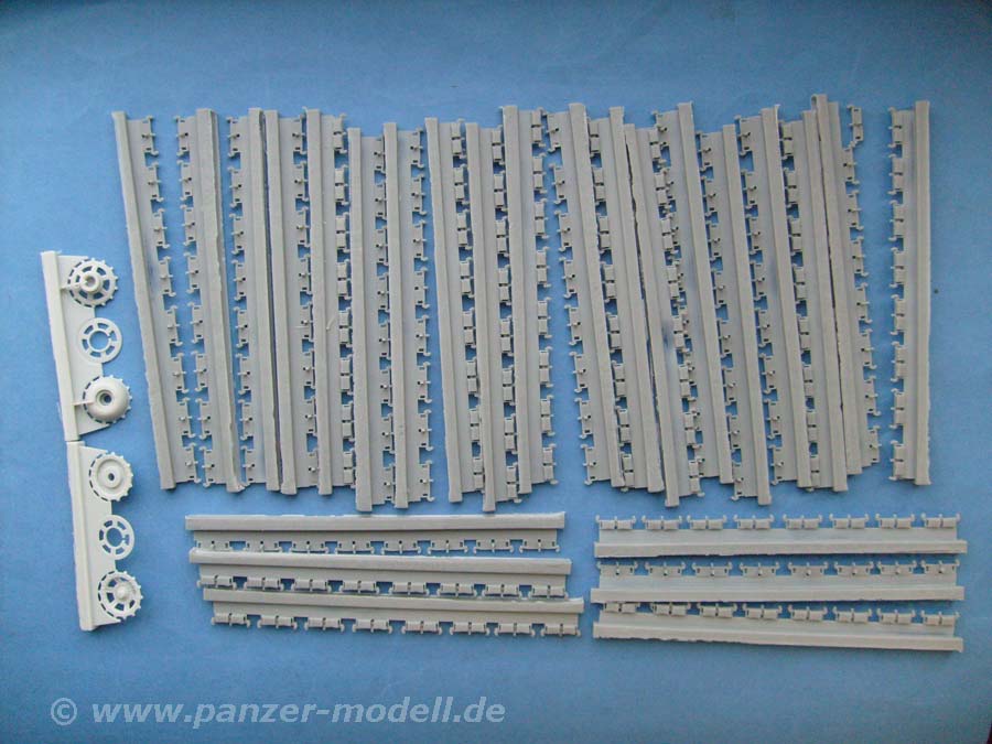 Der Guss der Teile ist sehr gut, wie man es nun mittlerweile von Perfect Scale gewohnt ist. Die Kettenglieder sind korrekt im Aussehen und haben jeweils ein Set End- und Mittelverbinder angegossen. Die Kettenglieder lassen sich einfach vom "Spritzling" abtrennen.