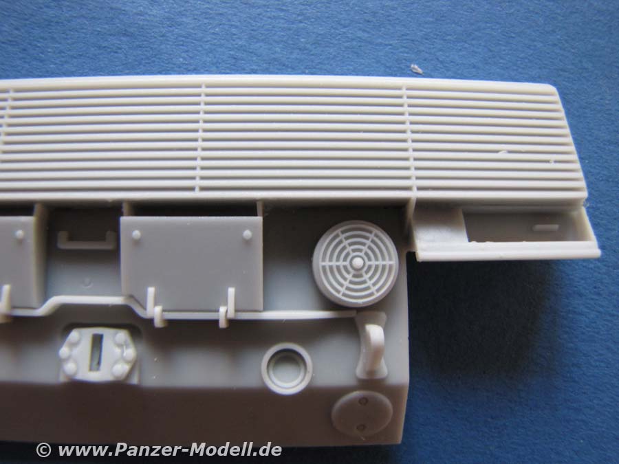Sehr auffällig und wichtig sind die komplett neuen Seitenschürzen aus Resin, die in Einzelsegmenten und separater Aufhängung fur die vorderen, schweren Schürzen geliefert werden. Ein wahrer Augenschmaus und die Möglcihkeit, diese einzeln, fehlend oder hochgeklappt darzustellen.